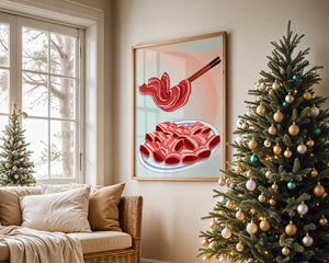 Künstlerische Darstellung von rohem Fleisch mit Stäbchen