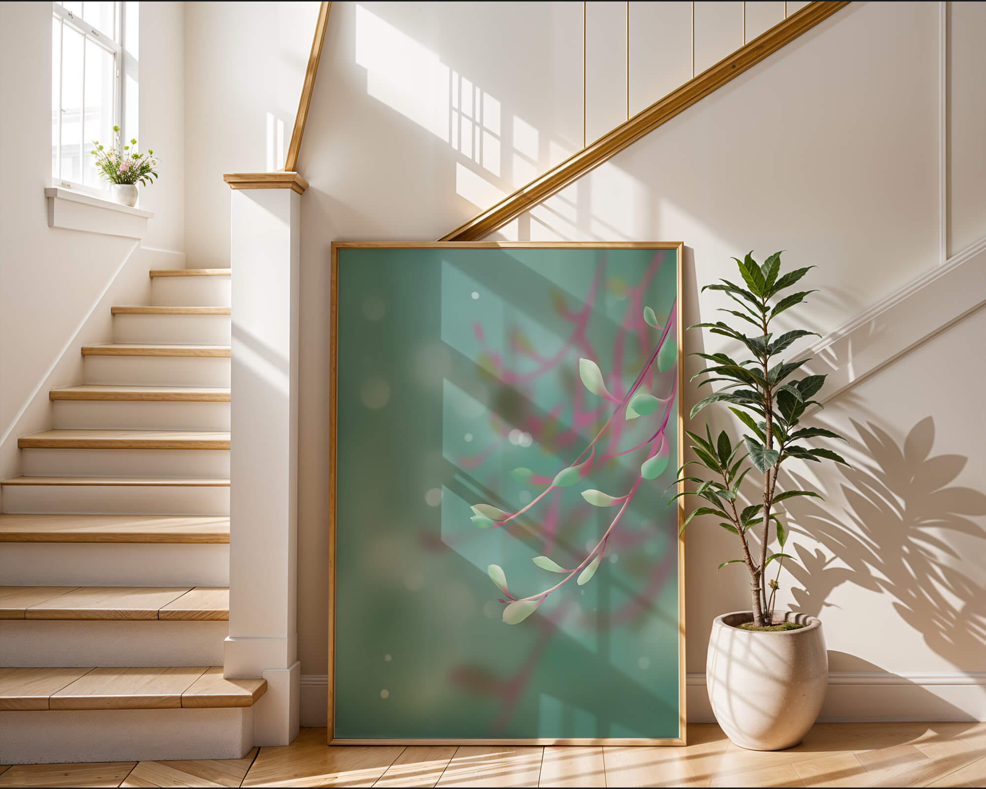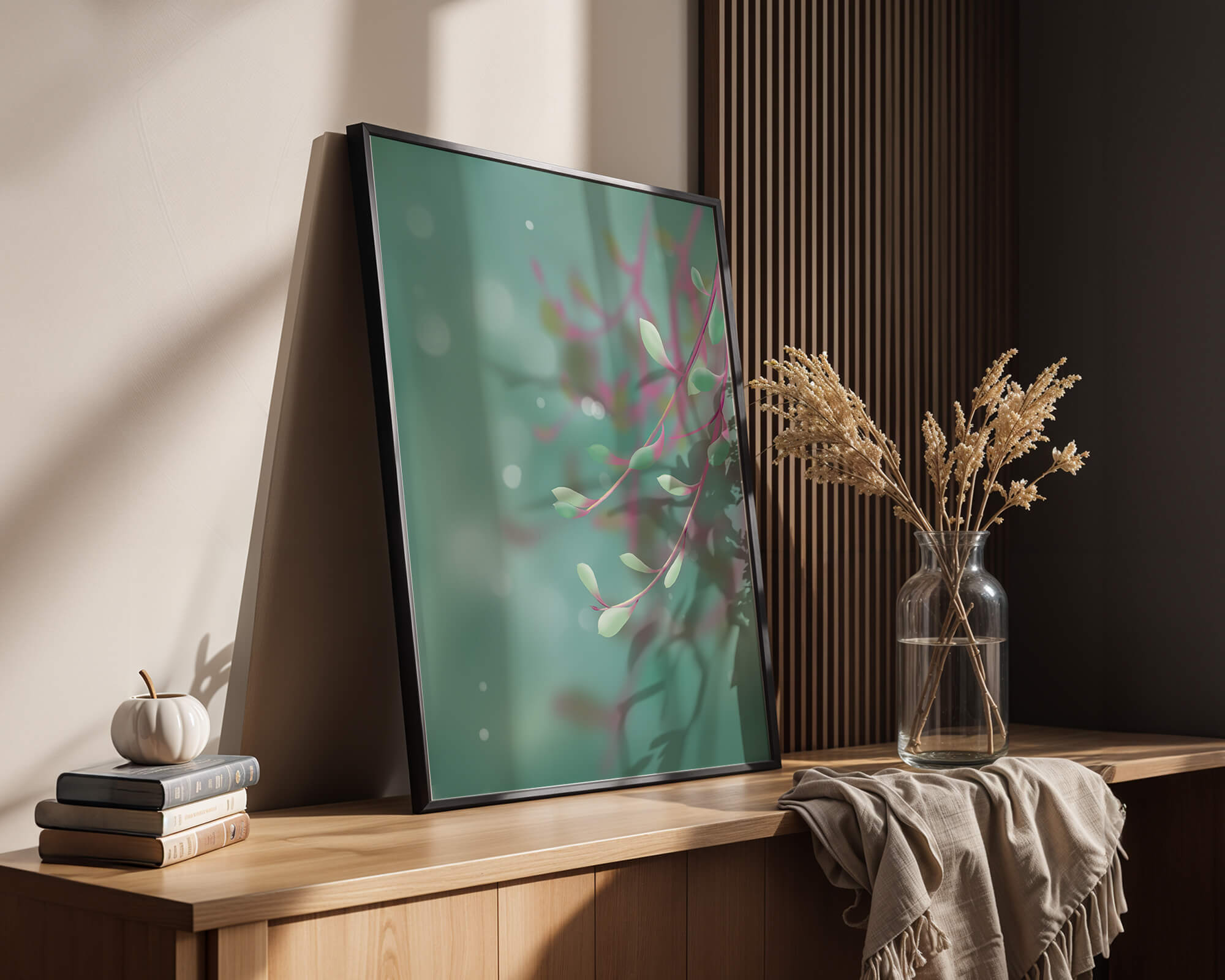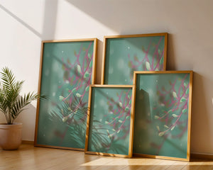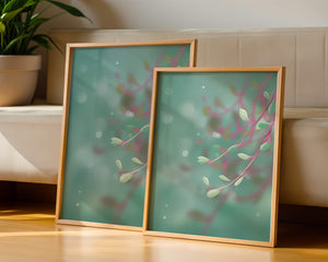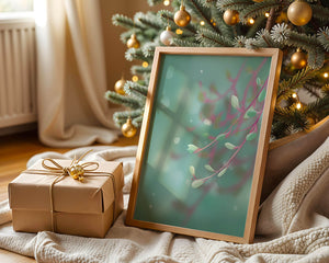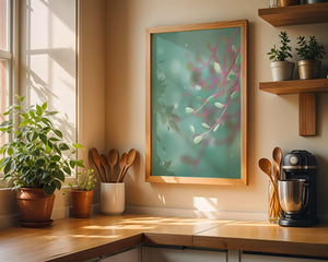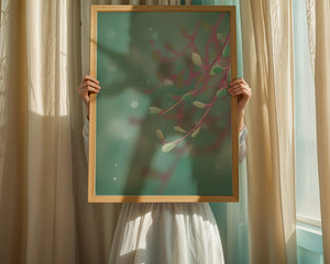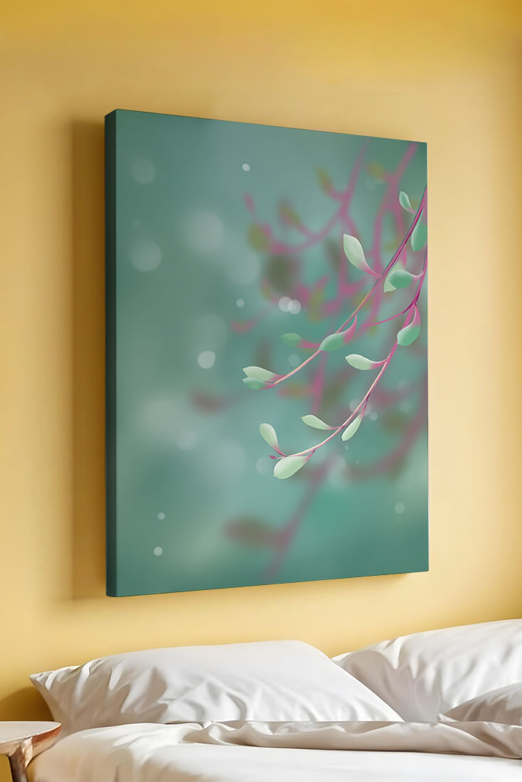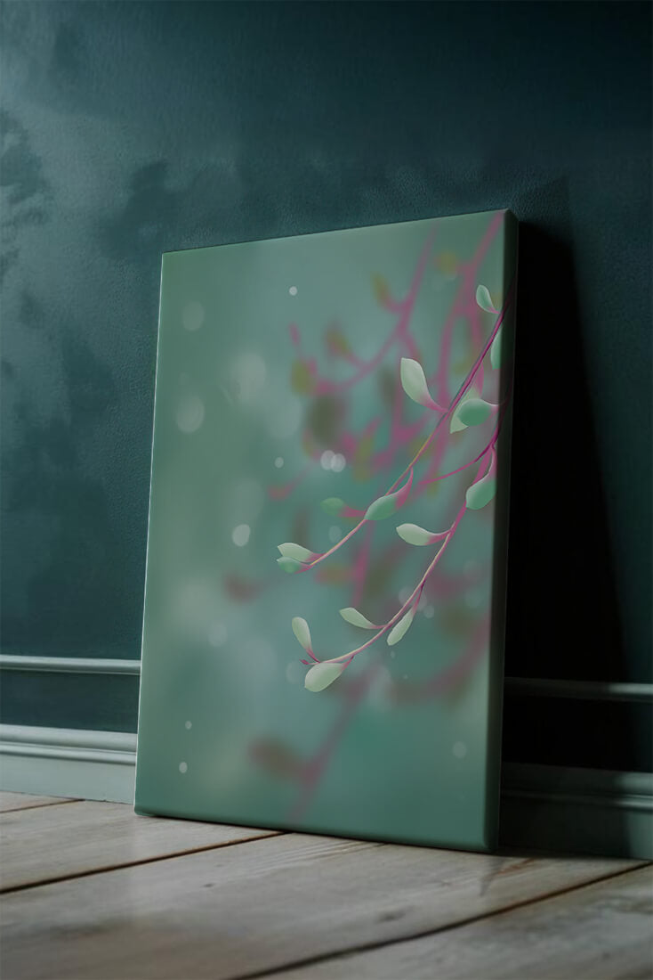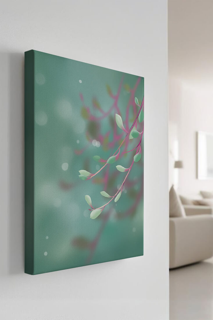 Dieses Kunstwerk fängt mit seinen sanften Pastelltönen und zarten Blattmustern die Essenz des Friedens ein. Der Hintergrund, ein sanft verschwimmender Farbverlauf, verstärkt den Fokus auf die minimalistischen und doch eleganten Zweige und entführt den Betrachter in eine Welt der Ruhe und Gelassenheit. Die Farbpalette aus sanften Grüntönen und einem Hauch von Rosa trägt zur entspannenden Atmosphäre bei und macht das Kunstwerk ideal für Räume, die zum Entspannen oder Kontemplieren gestaltet sind. Ob im Wohnzimmer, Schlafzimmer oder Büro – dieses Kunstwerk kann die Stimmung verändern und die Einrichtung aufwerten. Die nahtlose Integration natürlicher Elemente in eine abstrakte Form macht es vielseitig und zeitlos, passt gut zu modernen Einrichtungsstilen und bietet einen Hauch natürlicher Ruhe in einem künstlerischen Rahmen.| Typ |