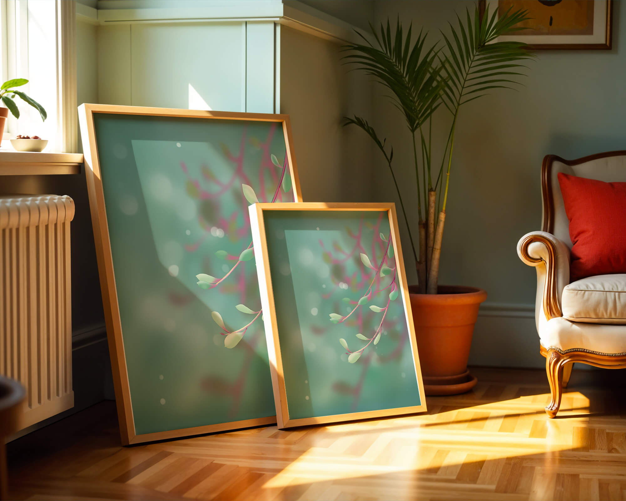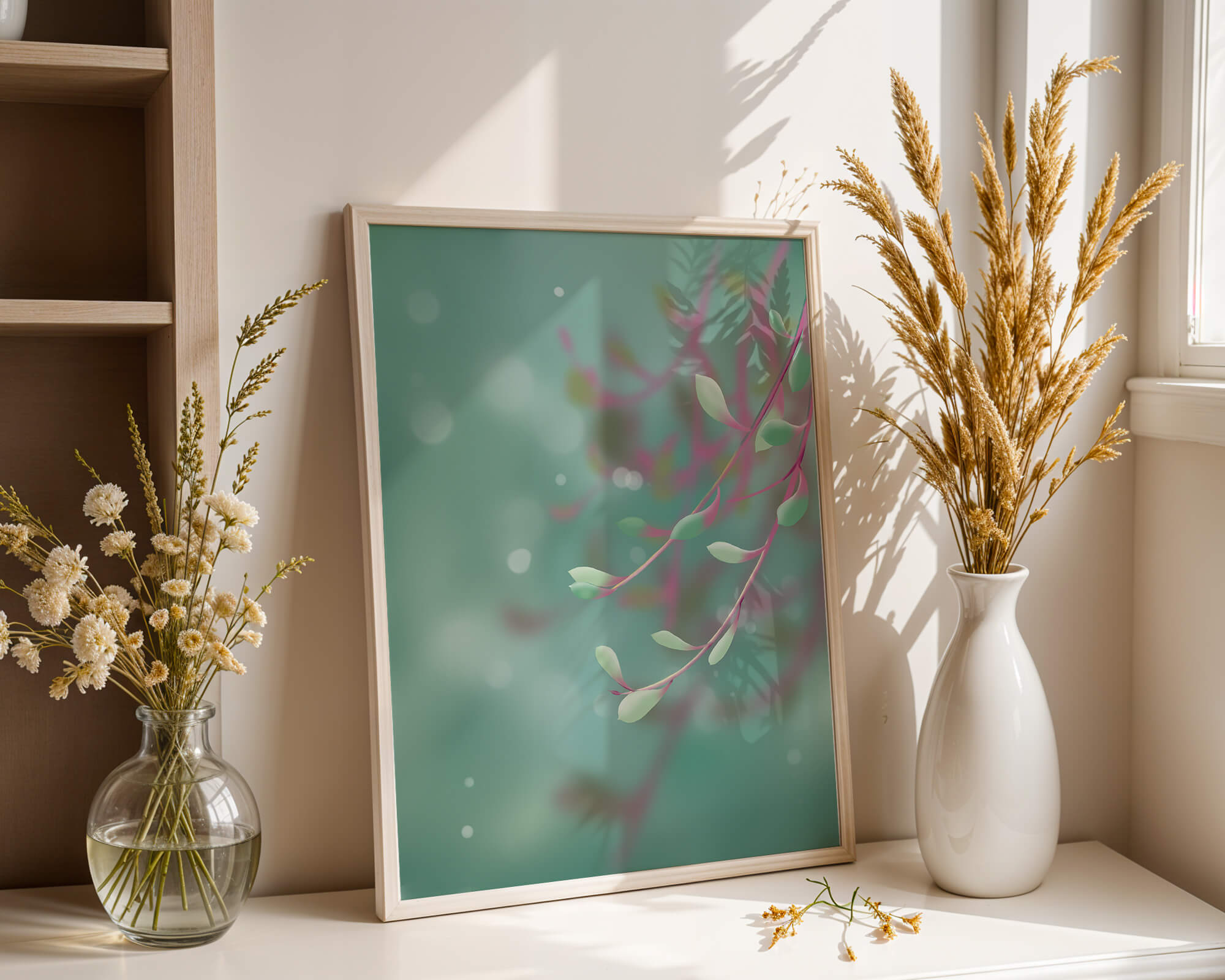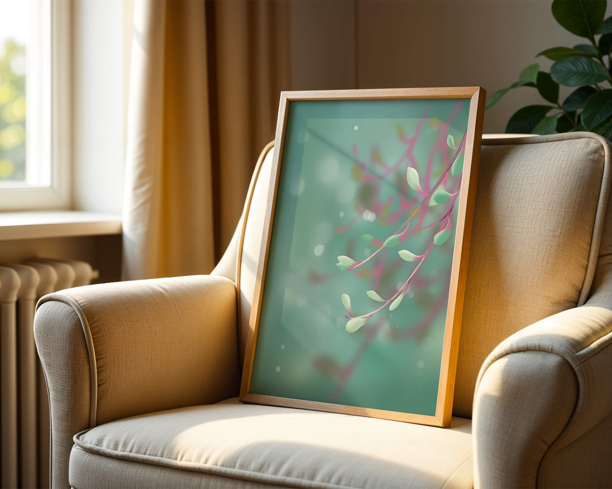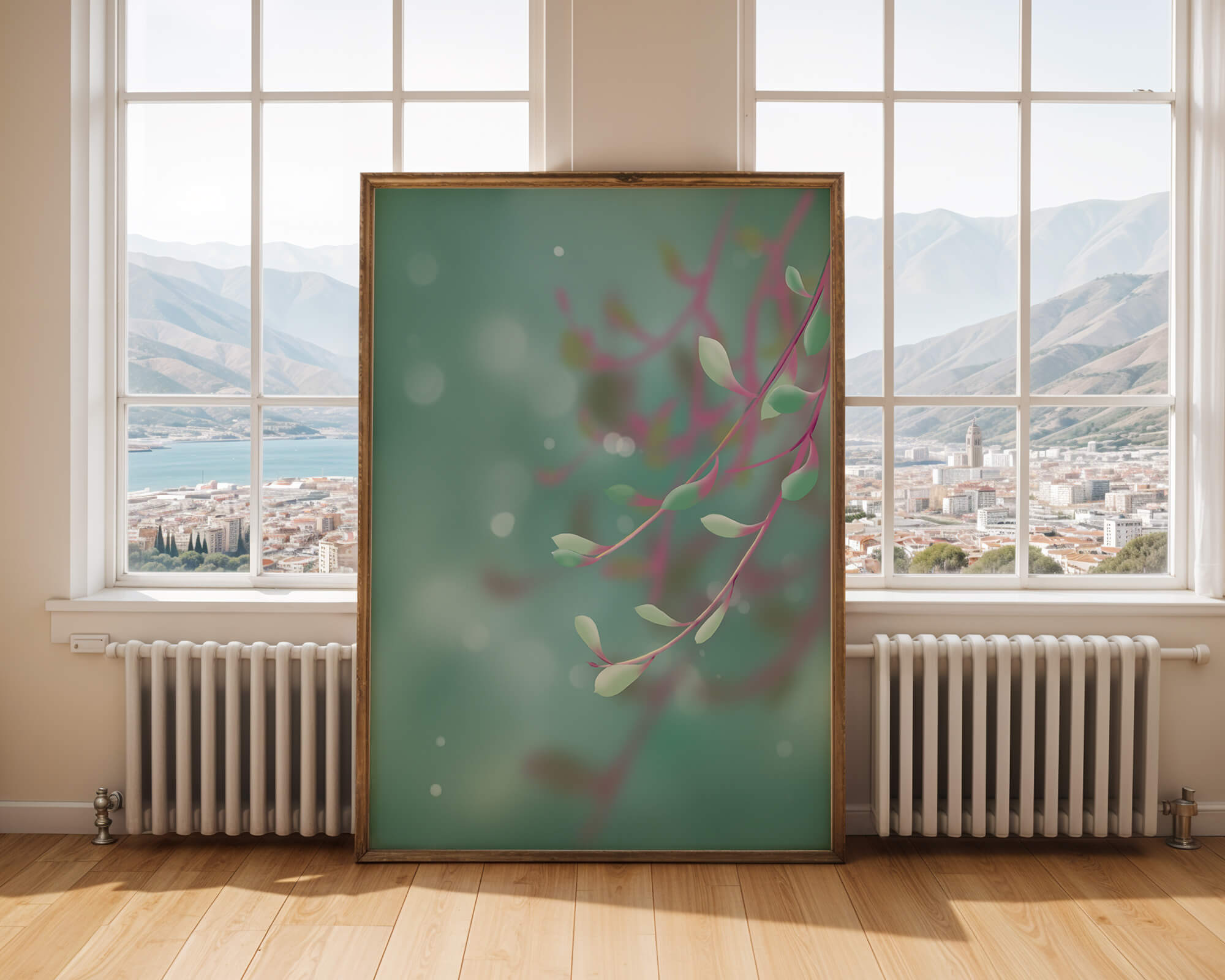 Dieses Kunstwerk fängt mit seinen sanften Pastelltönen und zarten Blattmustern die Essenz des Friedens ein. Der Hintergrund, ein sanft verschwimmender Farbverlauf, verstärkt den Fokus auf die minimalistischen und doch eleganten Zweige und entführt den Betrachter in eine Welt der Ruhe und Gelassenheit. Die Farbpalette aus sanften Grüntönen und einem Hauch von Rosa trägt zur entspannenden Atmosphäre bei und macht das Kunstwerk ideal für Räume, die zum Entspannen oder Kontemplieren gestaltet sind. Ob im Wohnzimmer, Schlafzimmer oder Büro – dieses Kunstwerk kann die Stimmung verändern und die Einrichtung aufwerten. Die nahtlose Integration natürlicher Elemente in eine abstrakte Form macht es vielseitig und zeitlos, passt gut zu modernen Einrichtungsstilen und bietet einen Hauch natürlicher Ruhe in einem künstlerischen Rahmen.| Typ |