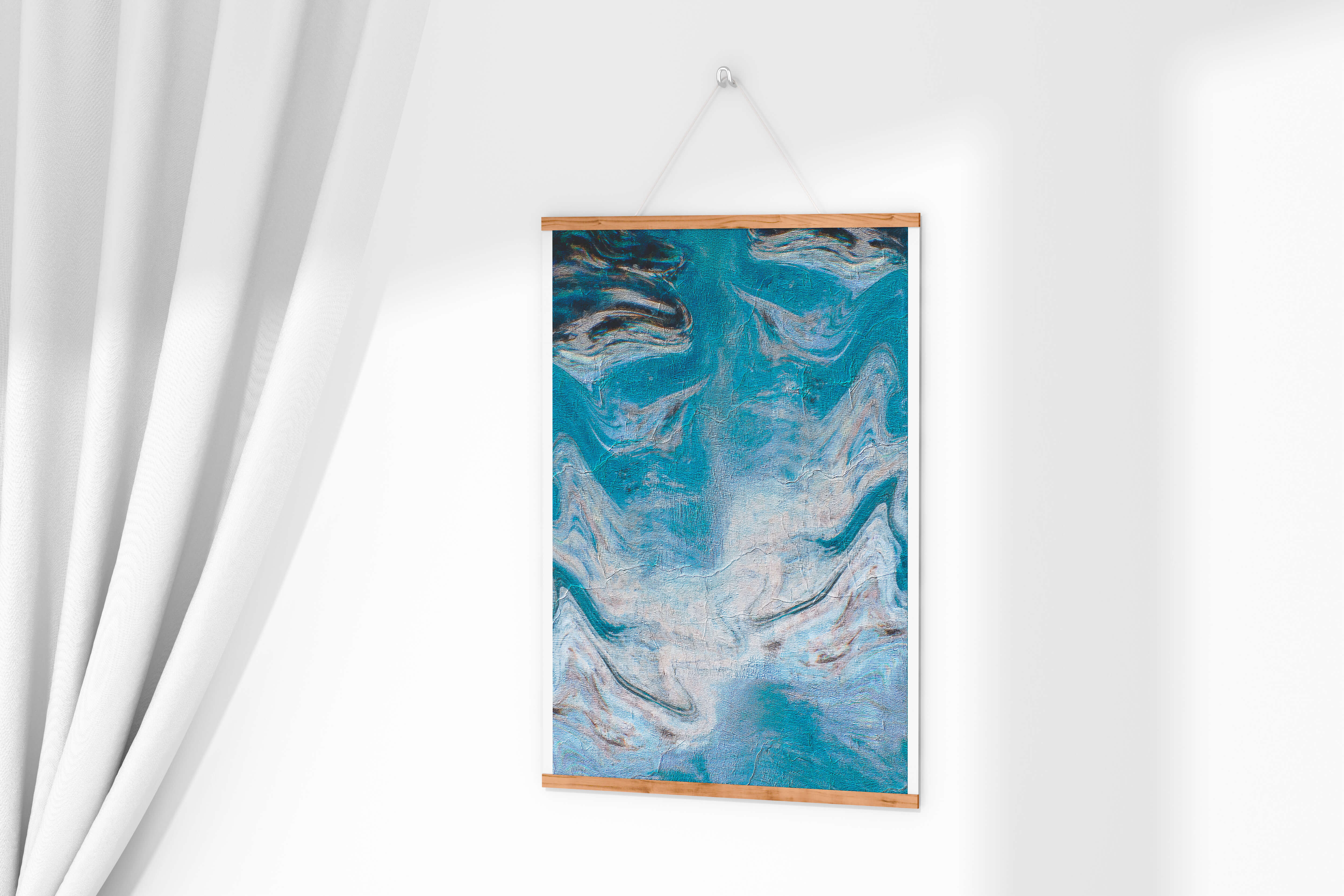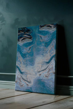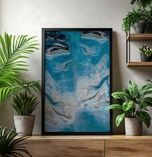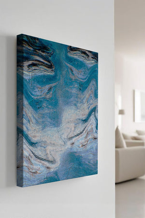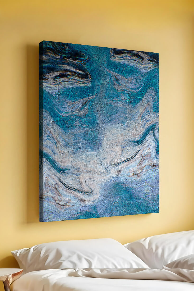 Esta fascinante obra de arte abstracto presenta una paleta de colores dominada por el azul con acentos en crema. Los patrones ondulados evocan una sensación de fluidez y movimiento, recordando las olas del océano o el agua fluyendo. Las texturas intrincadas y las pinceladas añaden profundidad y dimensión, invitando al espectador a explorar los detalles dentro de la obra. La combinación de azul y crema crea un efecto calmante y armonioso, lo que hace que esta pieza sea ideal para espacios modernos y contemporáneos. Su diseño artístico y atractivo visual único ofrecen versatilidad, encajando perfectamente en diversas configuraciones de habitaciones como salas de estar, dormitorios, o cualquier área que necesite un toque creativo.| Tipo |