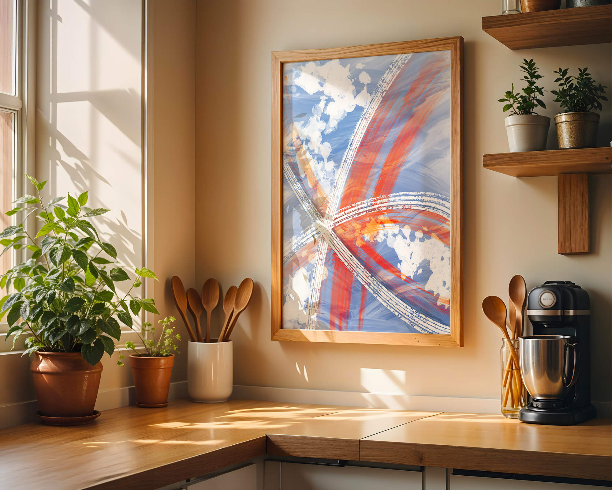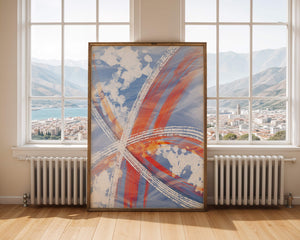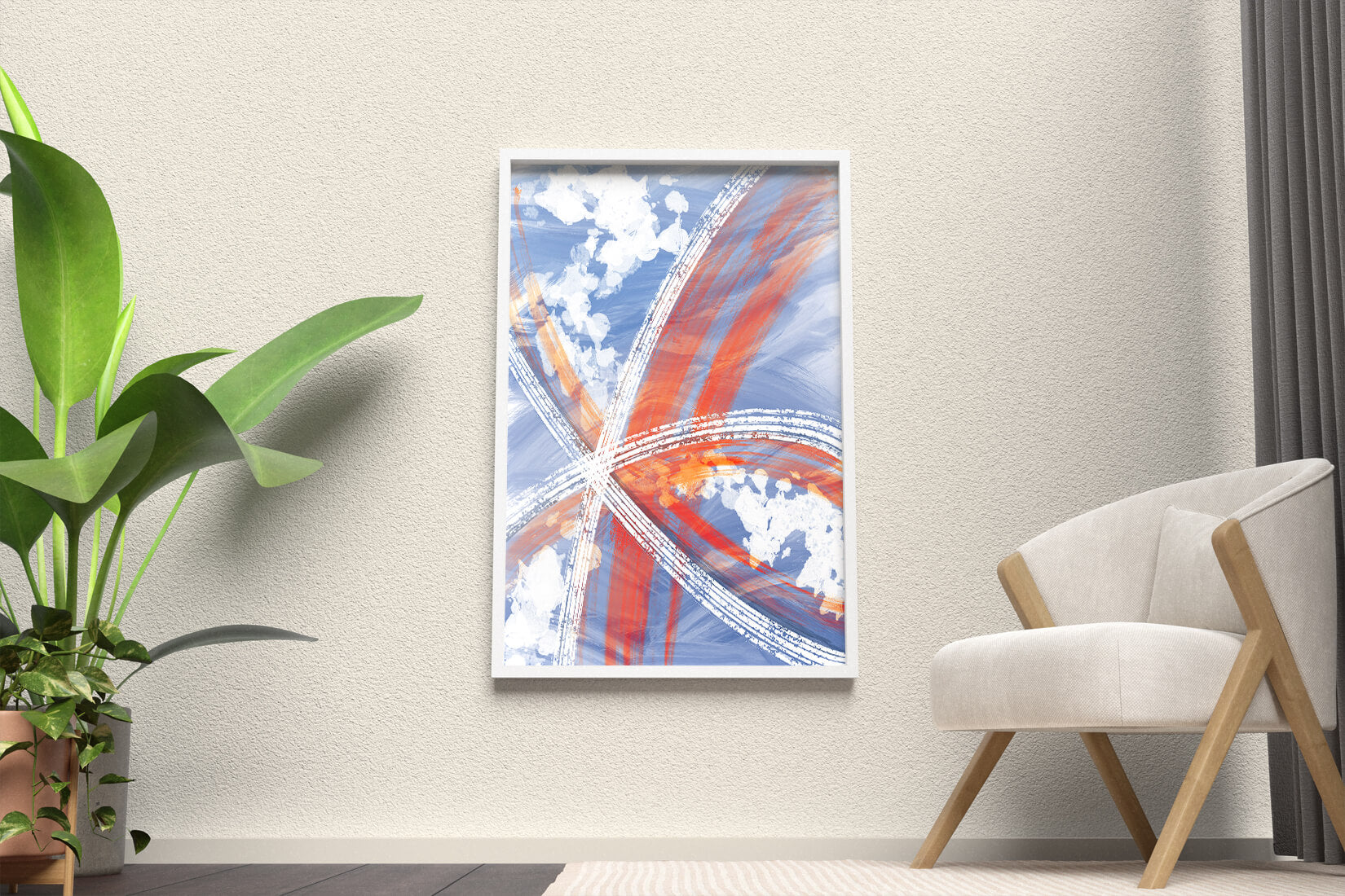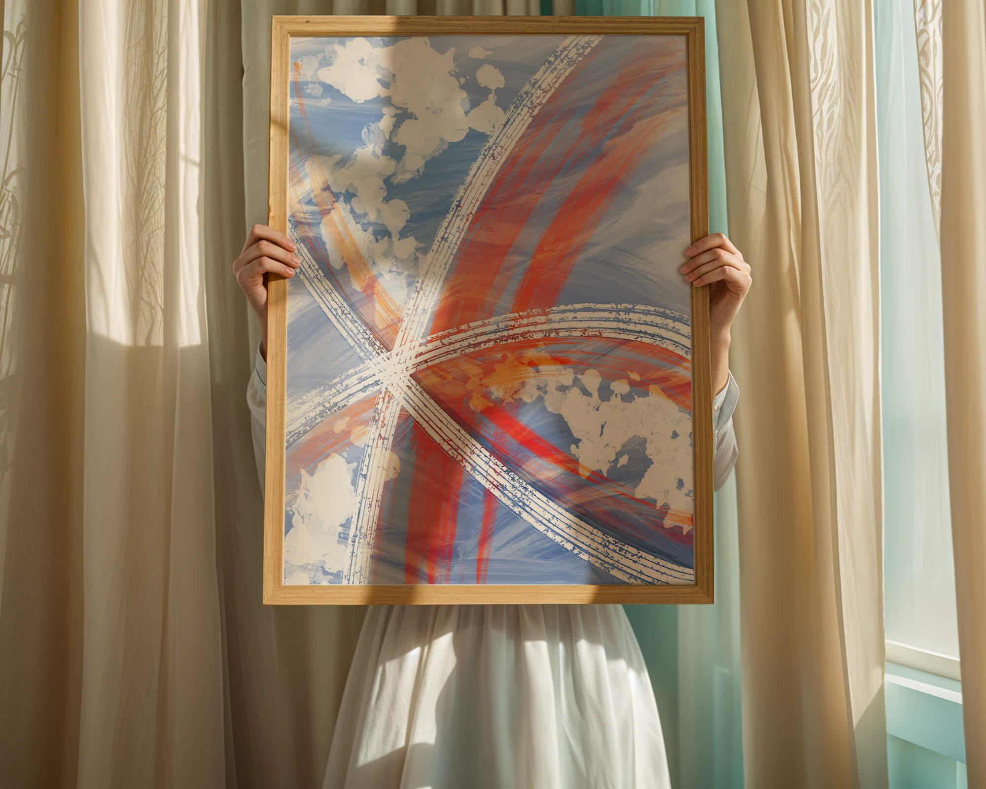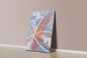 En esta obra, pinceladas amplias y dinámicas se entrecruzan, creando una sensación vivaz y energética. El uso de los colores azul y naranja no solo proporciona contraste, sino que también evoca una sensación de profundidad y movimiento. La naturaleza abstracta de la pieza invita a los espectadores a interpretar las imágenes a su manera, lo que la convierte en una experiencia verdaderamente personal. La textura de la pintura añade calidad expresiva, con cada trazo llevando una sensación de espontaneidad y libertad. Esta obra sirve como un ejemplo perfecto de cómo el color y la forma pueden transmitir emociones complejas sin necesidad de elementos representativos.| Tipo |