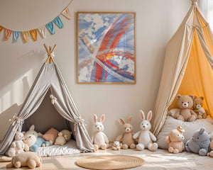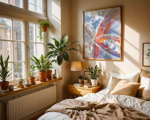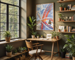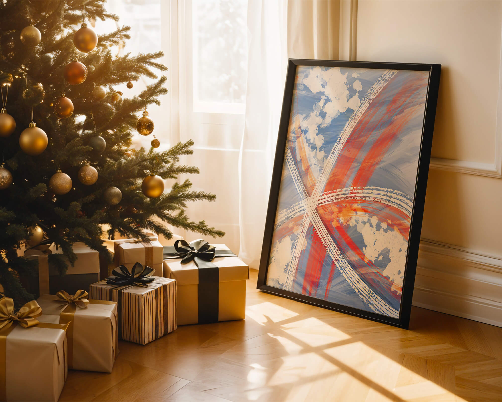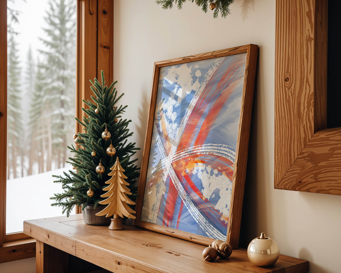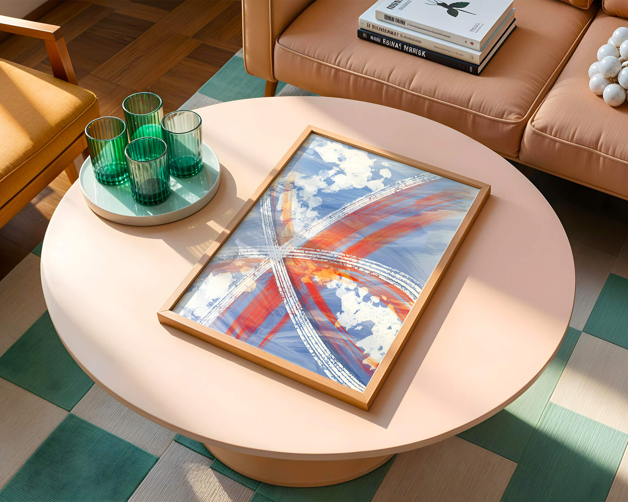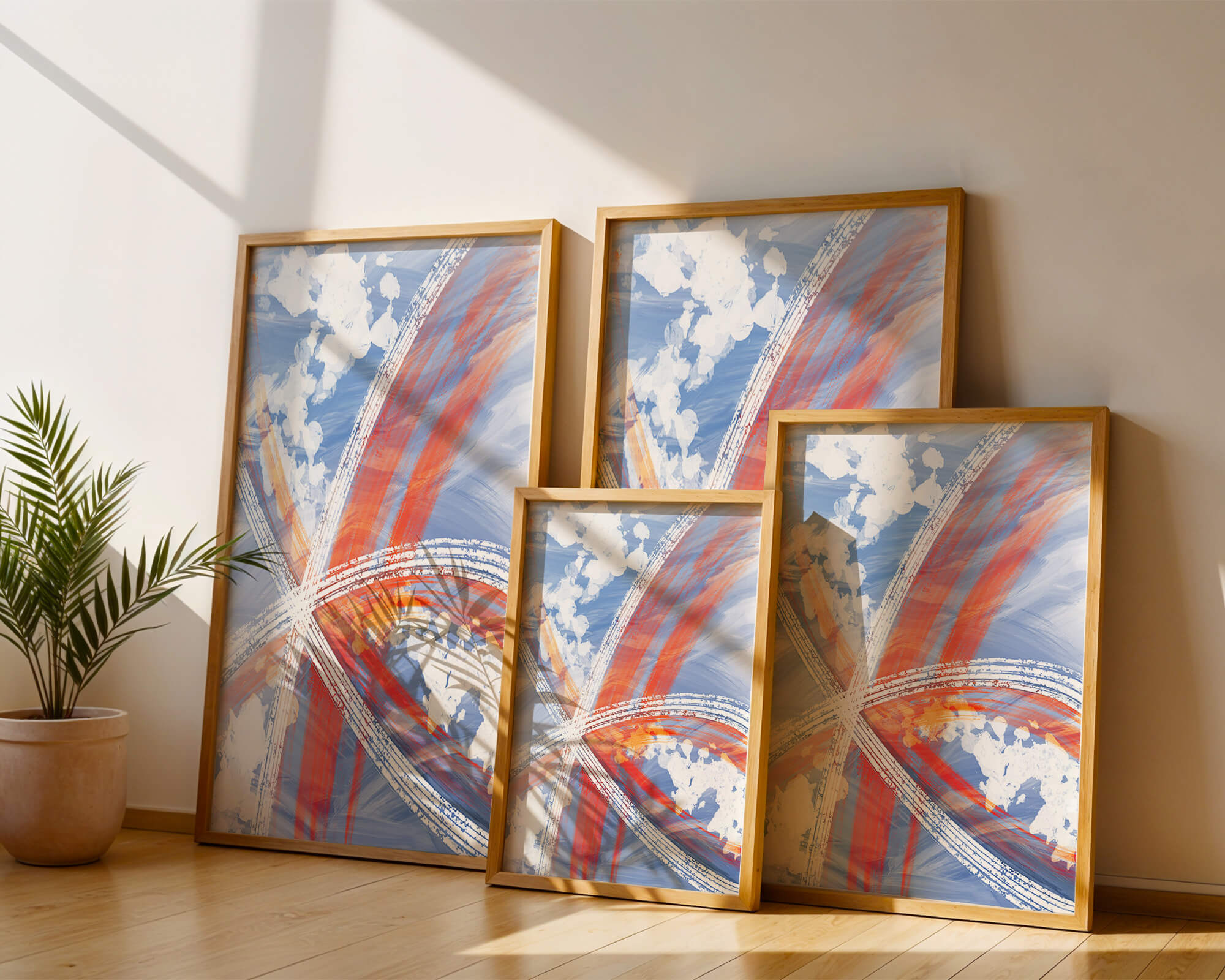 En esta obra, pinceladas amplias y dinámicas se entrecruzan, creando una sensación vivaz y energética. El uso de los colores azul y naranja no solo proporciona contraste, sino que también evoca una sensación de profundidad y movimiento. La naturaleza abstracta de la pieza invita a los espectadores a interpretar las imágenes a su manera, lo que la convierte en una experiencia verdaderamente personal. La textura de la pintura añade calidad expresiva, con cada trazo llevando una sensación de espontaneidad y libertad. Esta obra sirve como un ejemplo perfecto de cómo el color y la forma pueden transmitir emociones complejas sin necesidad de elementos representativos.| Tipo |