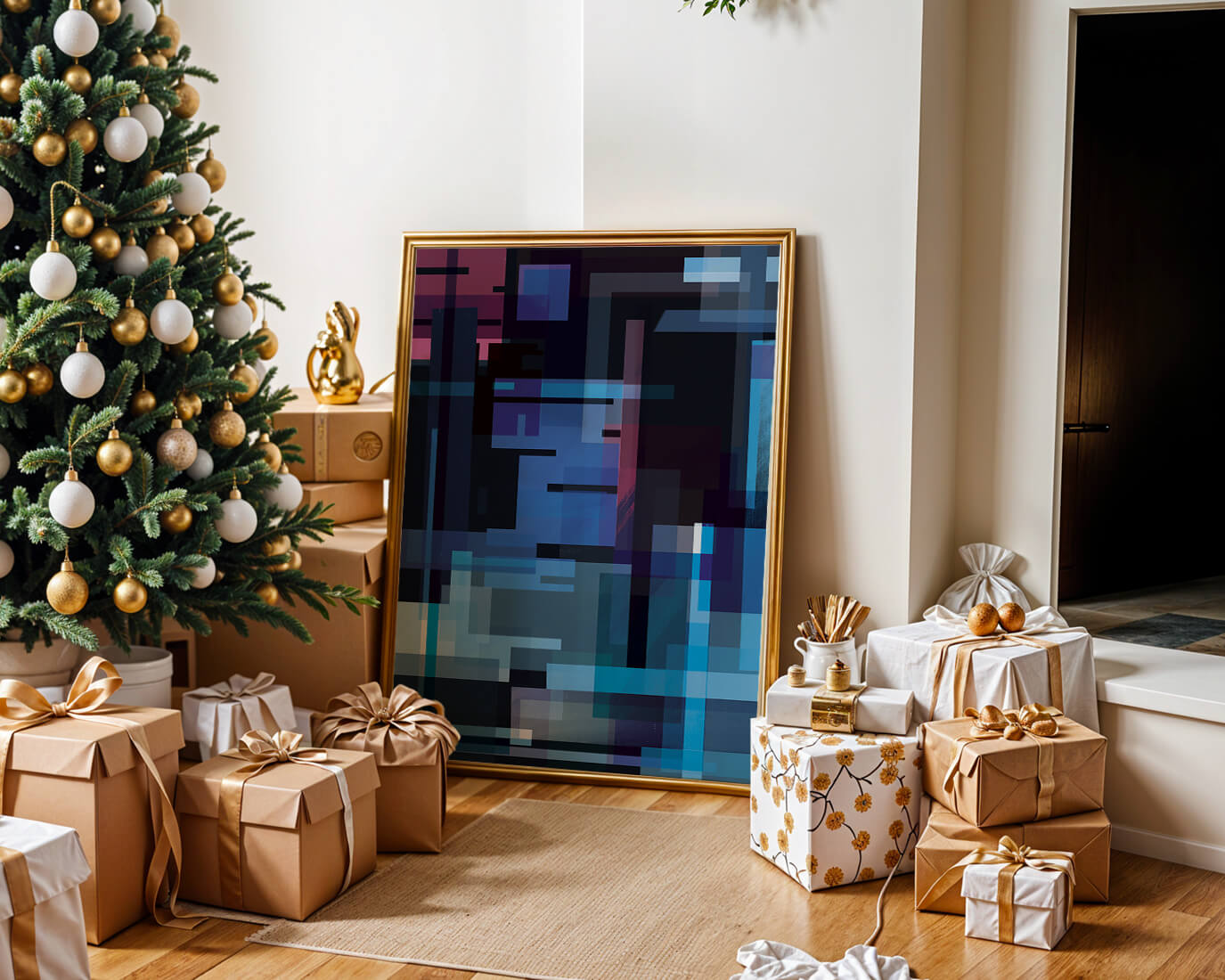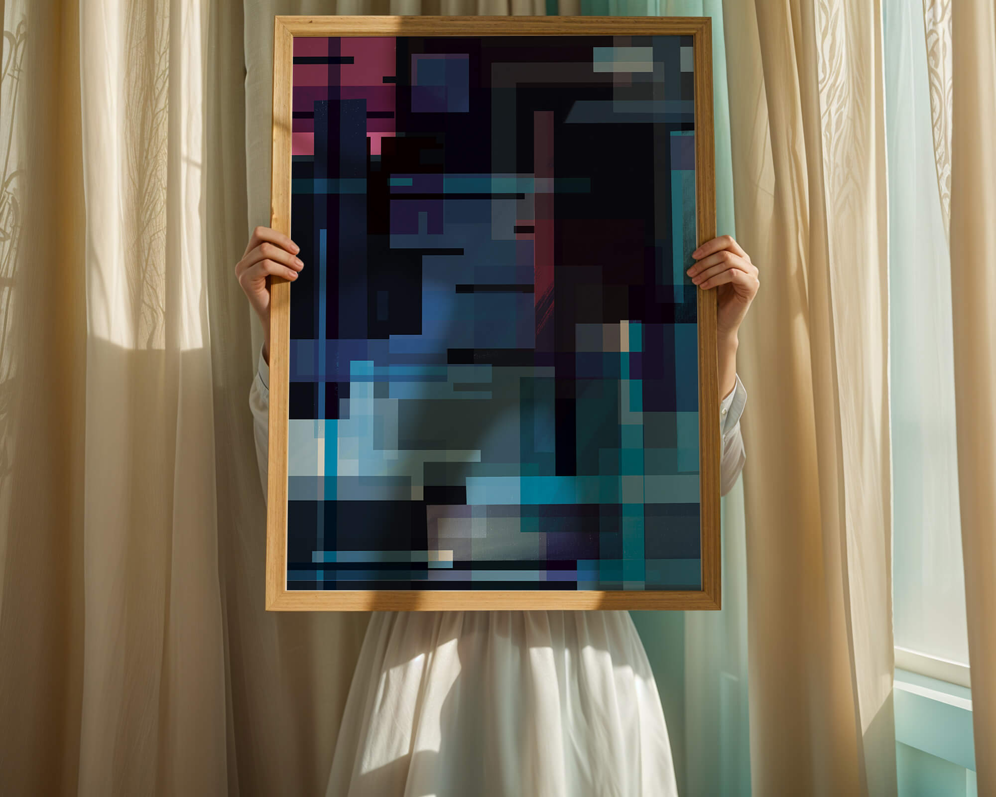 The art piece captures the essence of modern abstract design. By utilizing a blend of vibrant colors and geometric forms, the artwork challenges the viewer to see the digital world in a new light. This style is reminiscent of contemporary urban art, bringing a touch of modern sophistication to any space. Perfect for those who appreciate the intersection of art and technology, the artwork serves as an excellent addition to a modern home or office. Its minimalist yet complex structure plays with perception, inviting onlookers to pause and contemplate the beauty of digital interpretation.| Tipo |