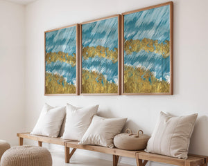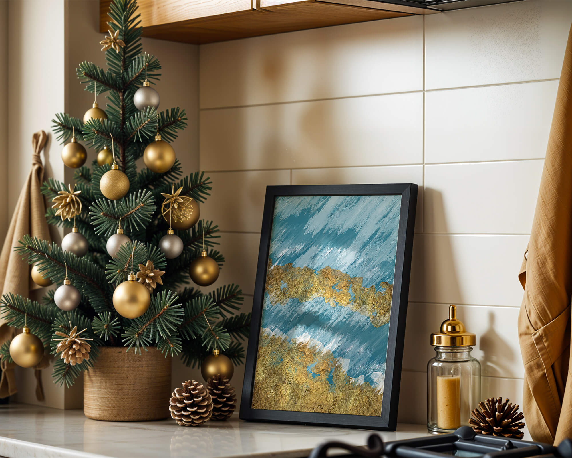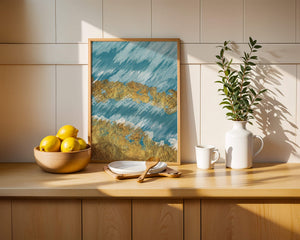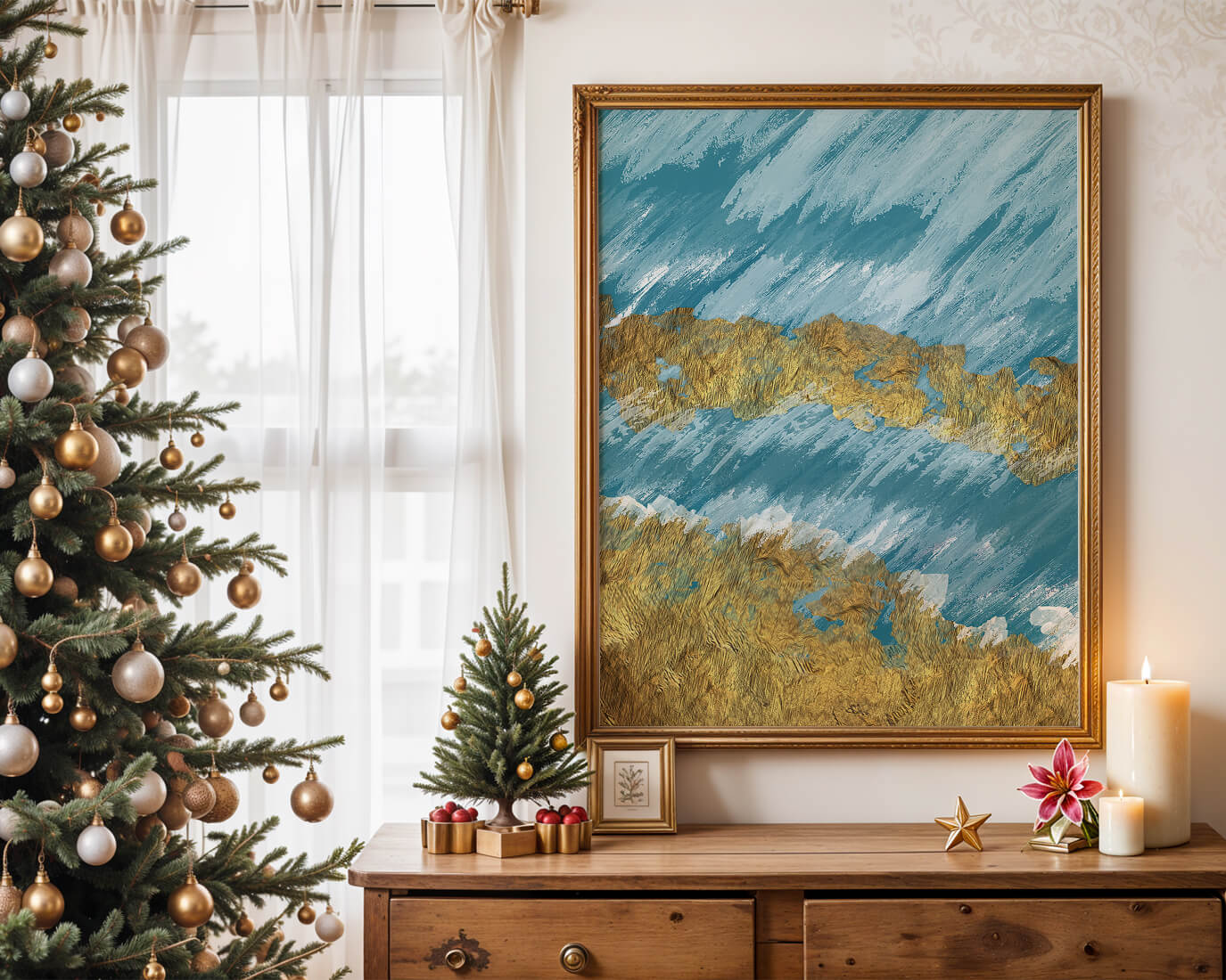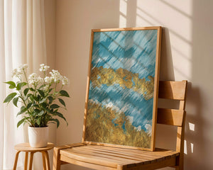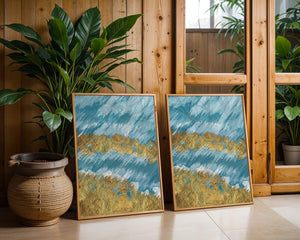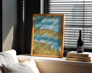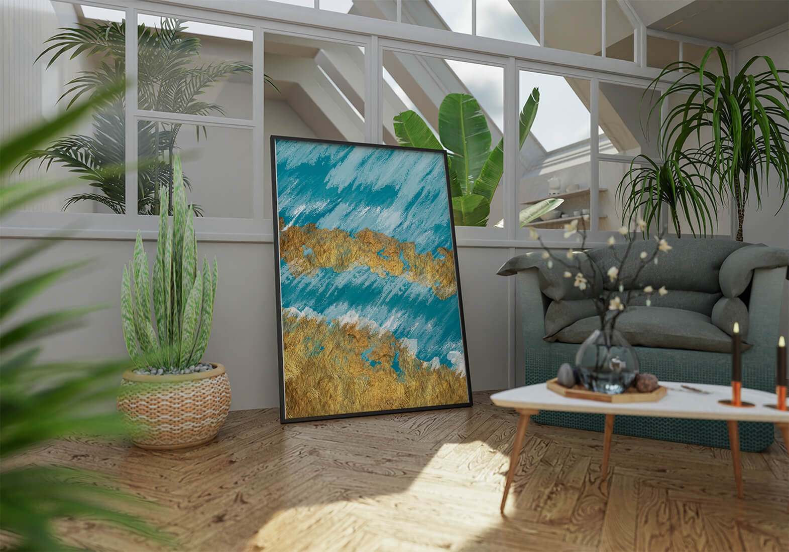 En esta obra, el artista ha utilizado magistralmente texturas y colores contrastantes para simular el movimiento de las olas del océano. El vibrante azul sirve como telón de fondo sereno, mientras que el dorado añade un toque de lujo que capta la mirada. Las pinceladas crean una sensación de profundidad y movimiento, atrayendo al espectador hacia un hipnótico baile de colores. Esta pieza puede transformar cualquier espacio interior, añadiendo un toque de sofisticación y estilo. Ya sea colocada en una sala de estar, dormitorio u oficina, sirve como una decoración versátil que irradia elegancia moderna. La fusión de temas naturales con un toque contemporáneo hace que esta obra sea una elección ideal para aquellos que buscan realzar su hogar con una pieza impactante.| Tipo |