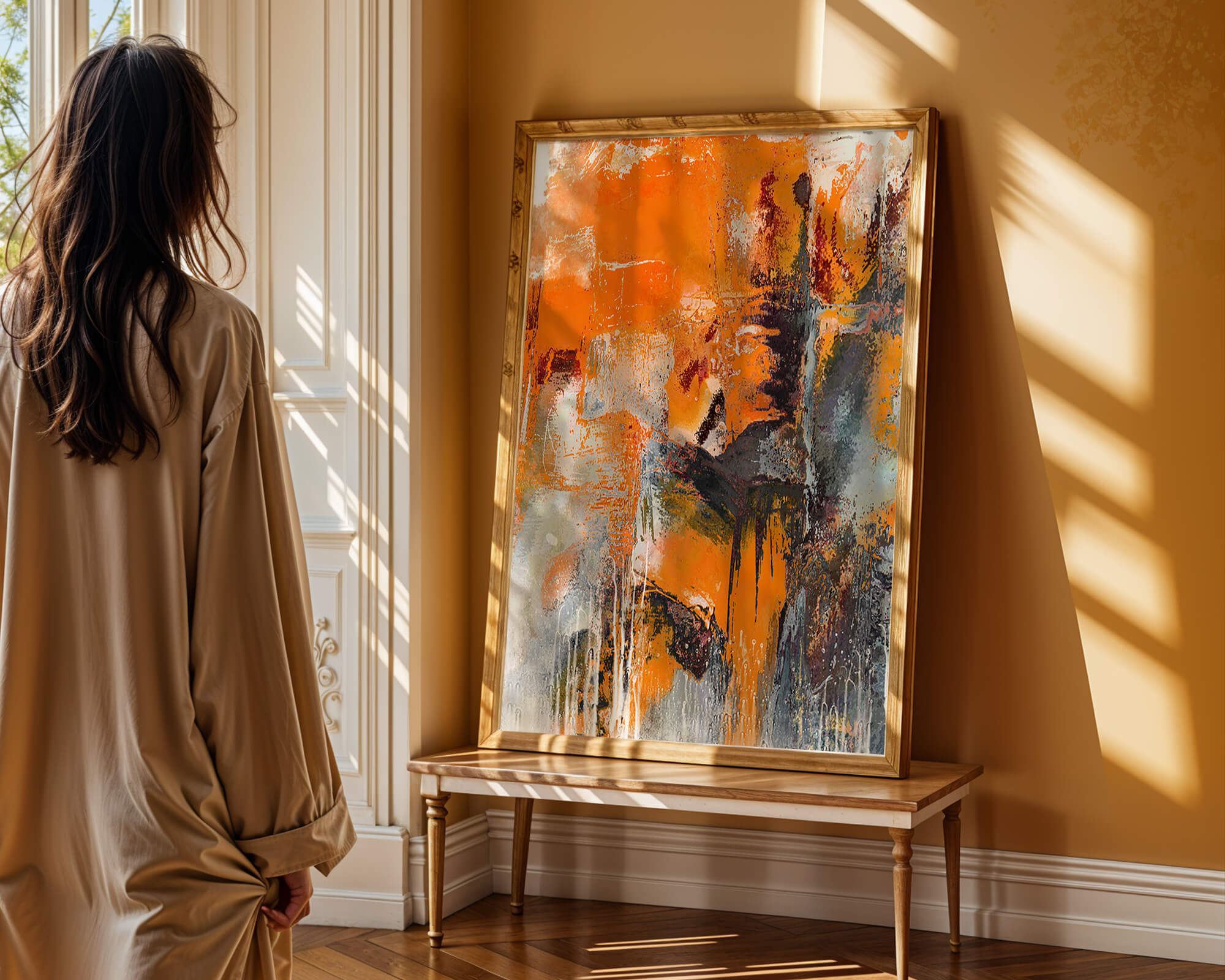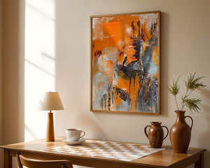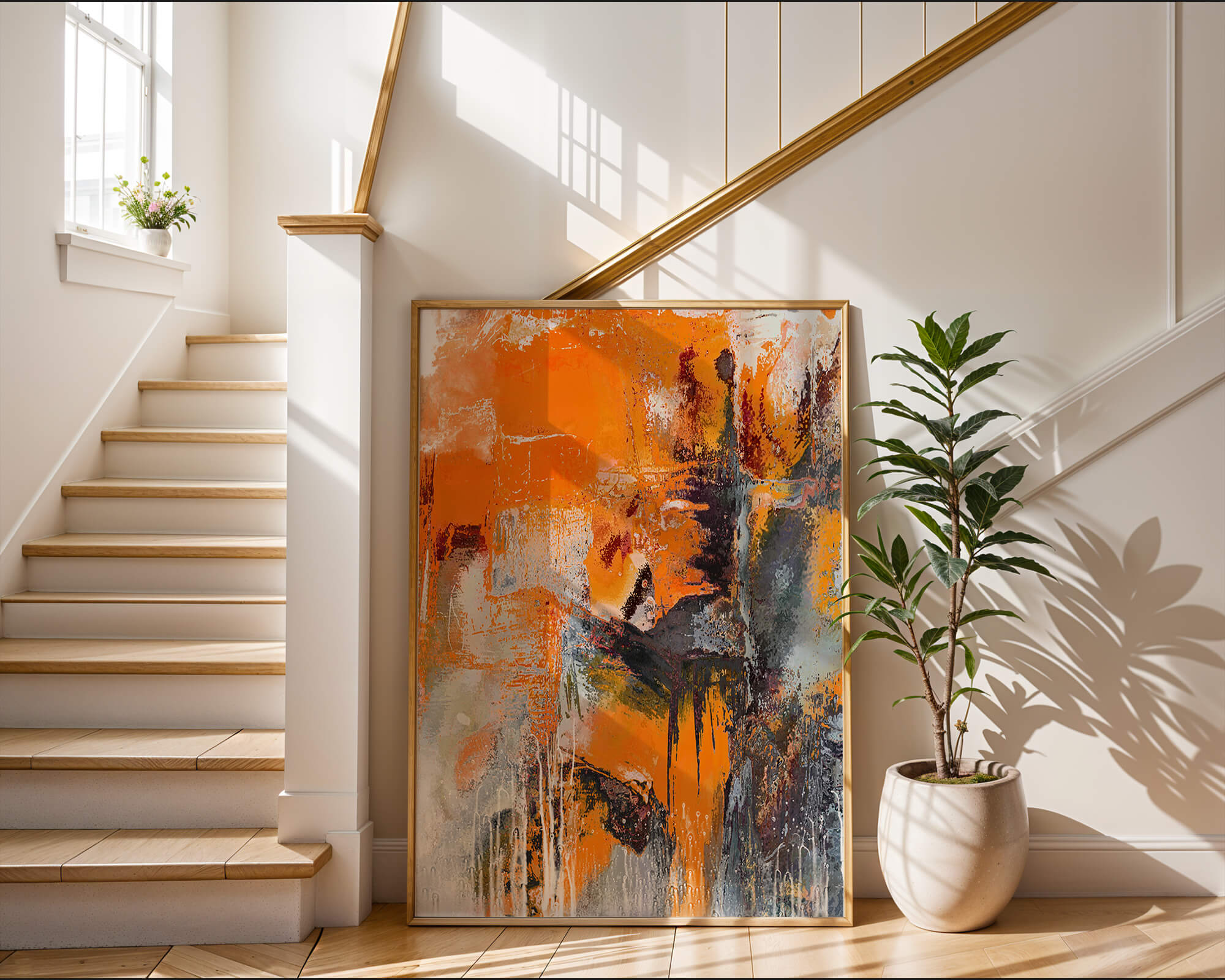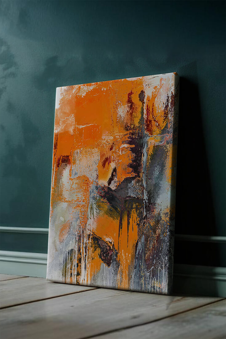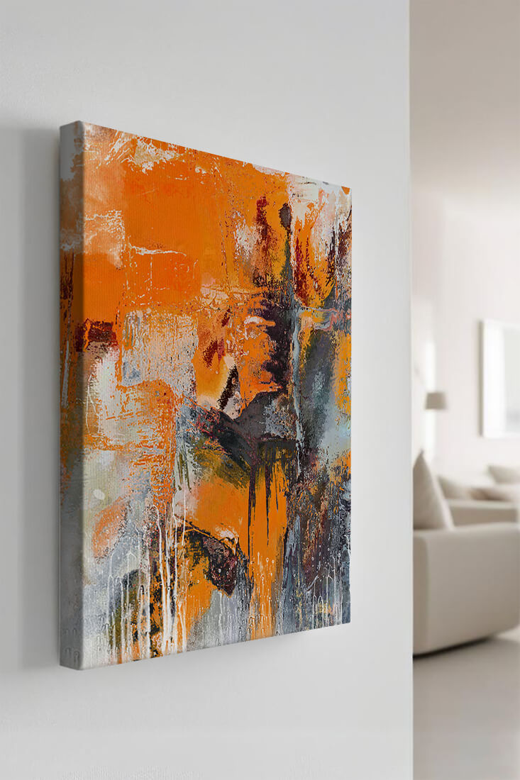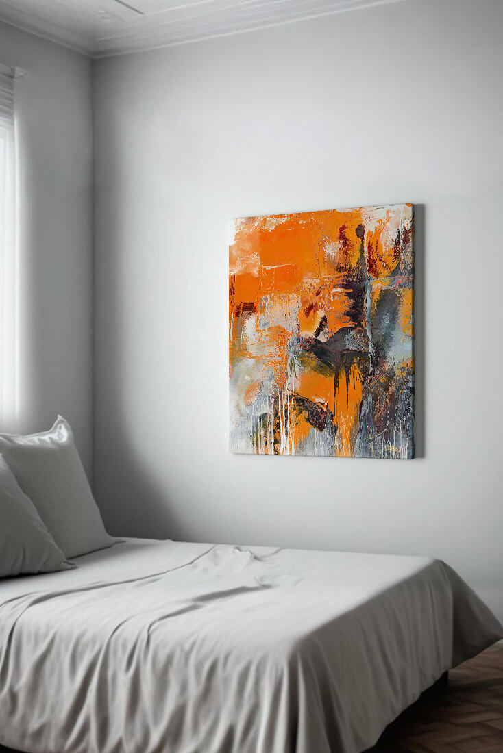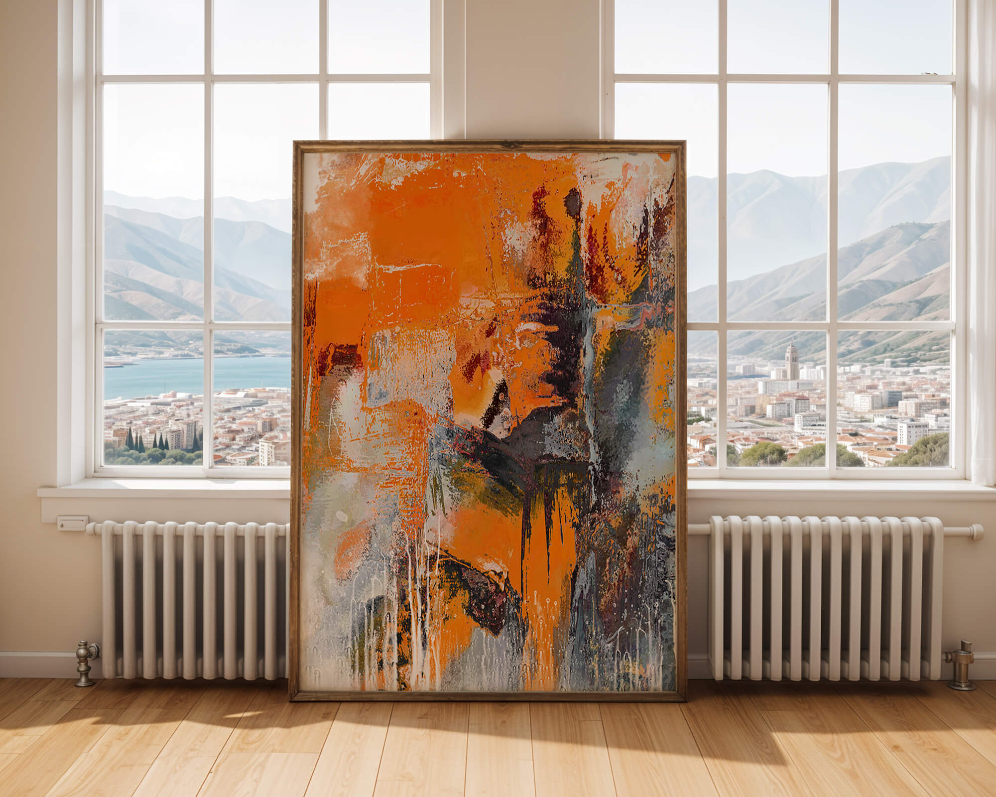 La pintura es una pieza cautivadora de arte moderno, combinando tonos intensos con una variedad de texturas. El uso destacado del naranja se equilibra con tonos grises y terrosos, convirtiéndola en un punto focal fascinante para cualquier habitación. Rica en expresión, esta obra de arte encarna la energía y el movimiento que caracterizan al arte abstracto contemporáneo. Su naturaleza dinámica invita a los espectadores a conectarse con la emoción y creatividad capturadas en la pieza, haciéndola una adición perfecta para espacios modernos que buscan vitalidad y profundidad.| Tipo |