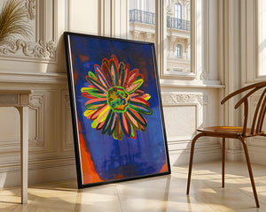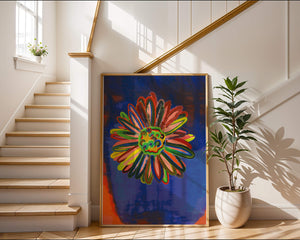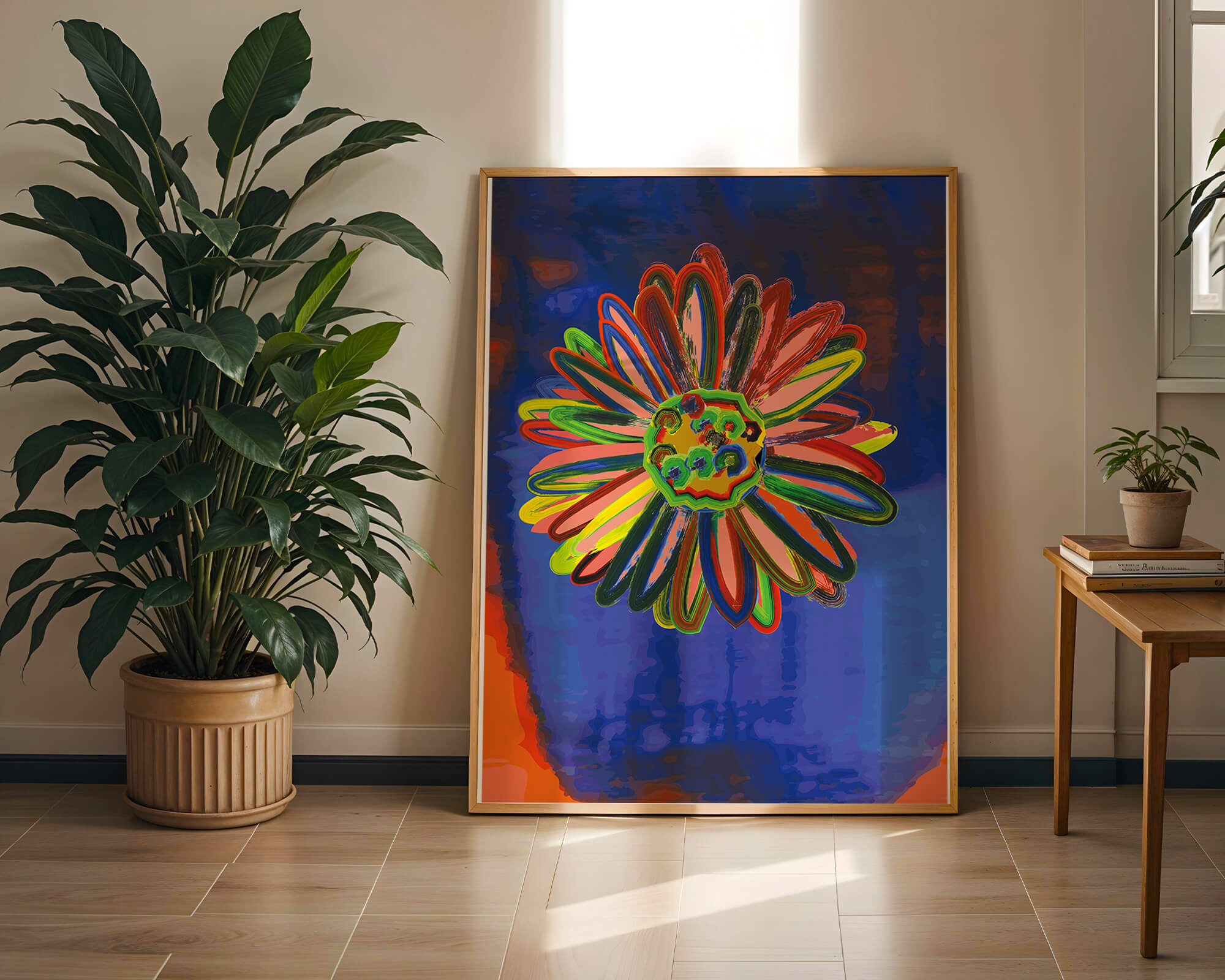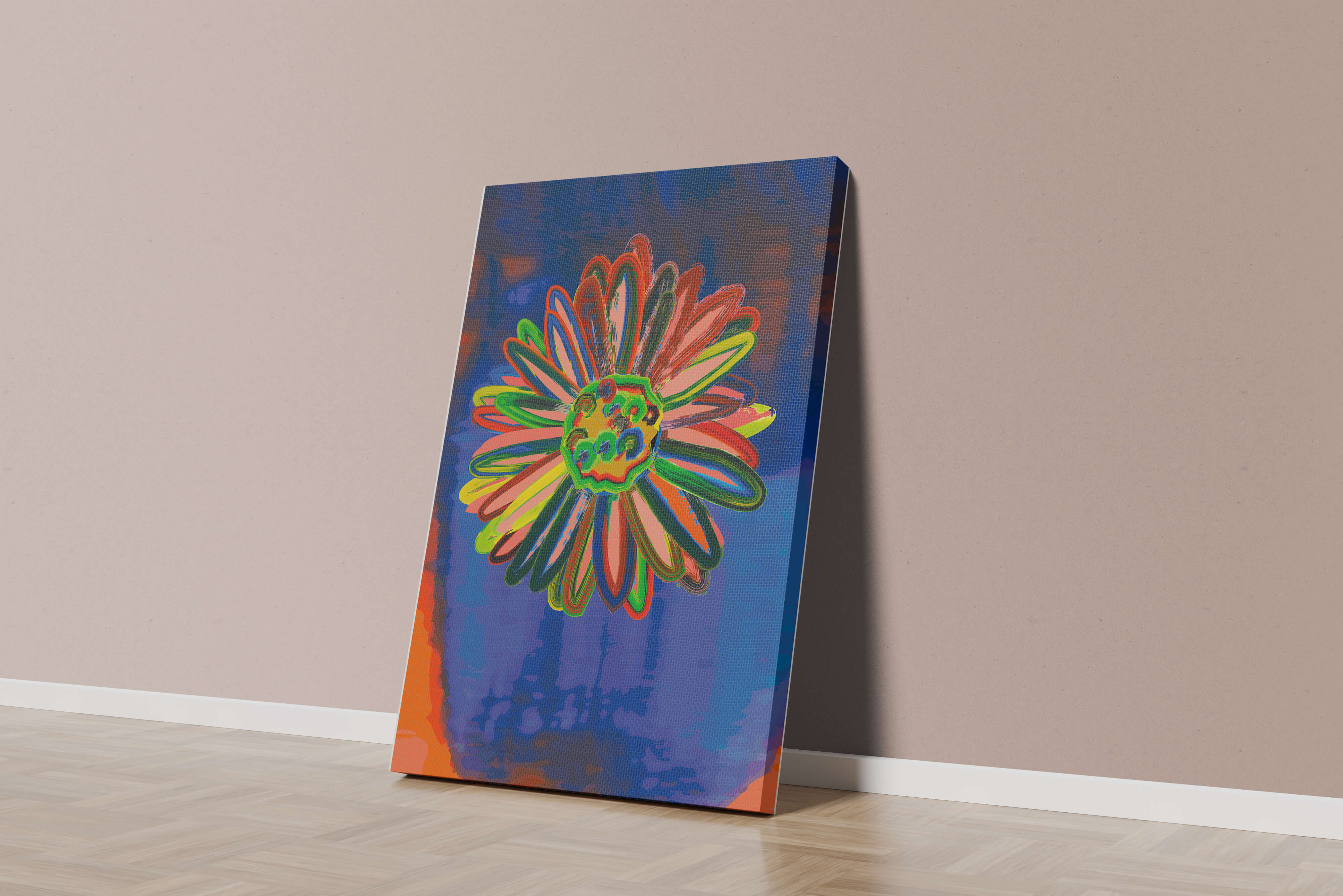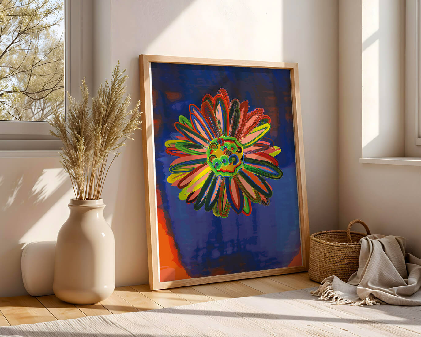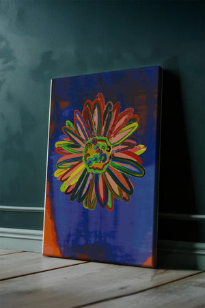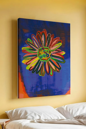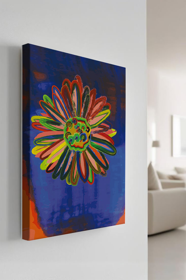 La flor abstracta representada en esta obra irradia energía, con sus pétalos pintados en una rica variedad de tonos cálidos y fríos. La combinación de rojos, azules, verdes y amarillos crea una cautivadora danza visual que atrae la atención del espectador. Sobre un fondo azul profundo, los coloridos pétalos de la flor irradian hacia afuera, evocando un sentido de movimiento y vida. Esta pieza es perfecta para aquellos que buscan añadir un toque de creatividad y vitalidad a su sala de estar u otra área que necesite un punto focal. Su estética moderna se alinea bien con diseños de interiores contemporáneos, convirtiéndola no solo en una obra de arte, sino en una declaración.| Tipo |