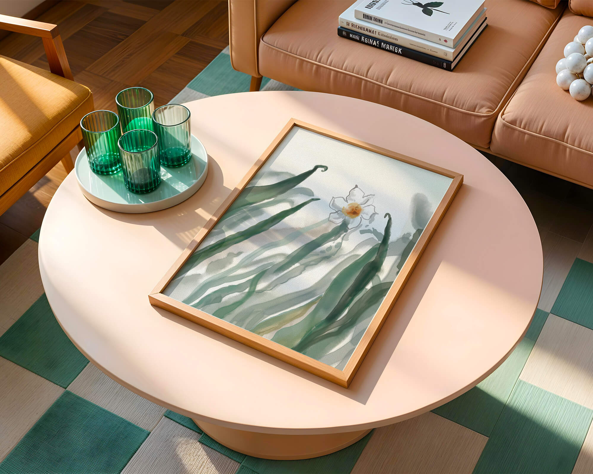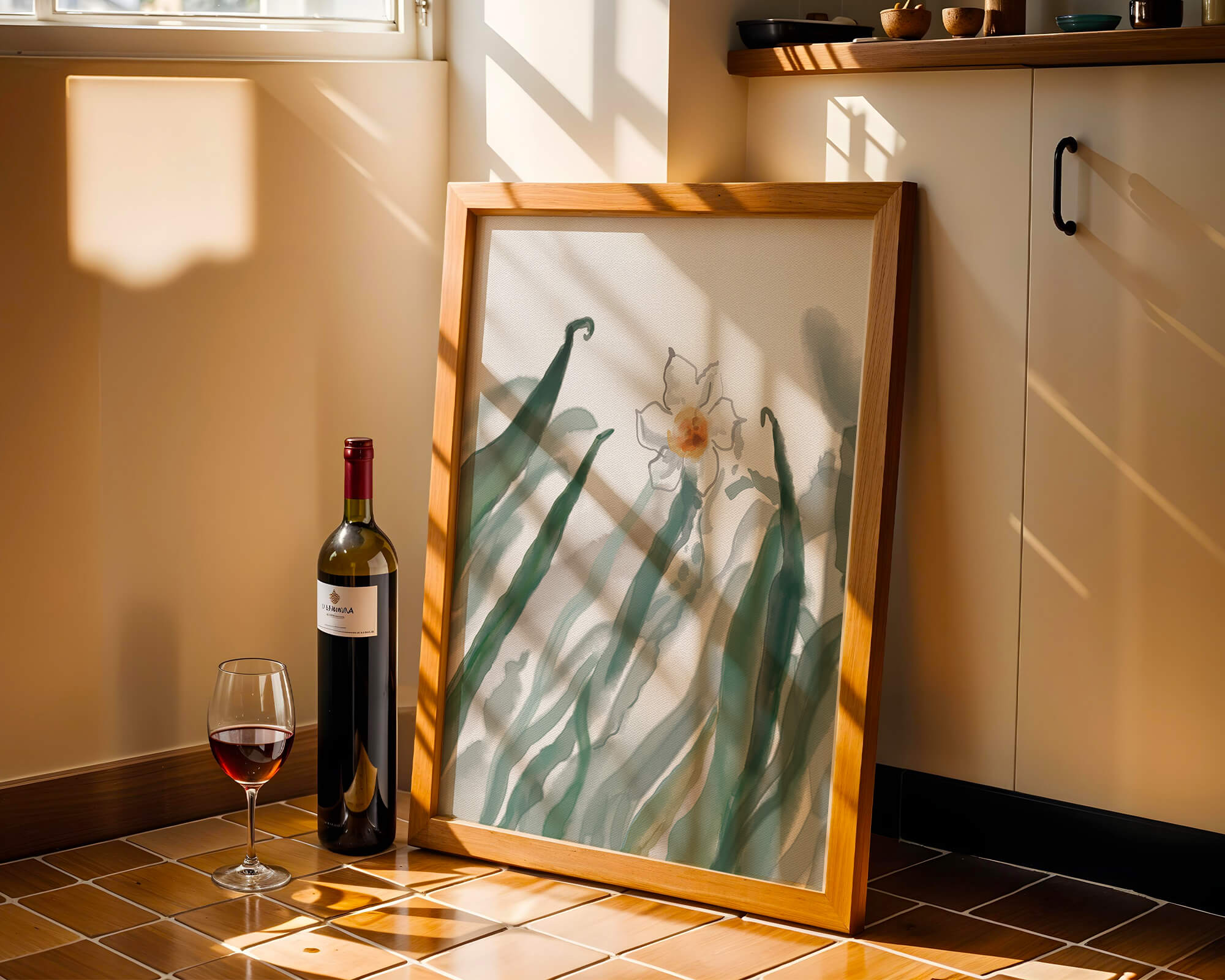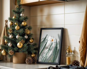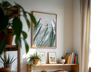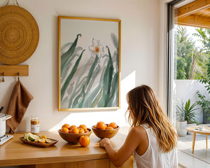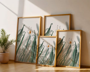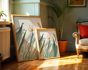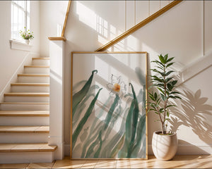 La pintura ofrece una sensación de tranquilidad y frescura, lo que la convierte en una adición perfecta para cualquiera que desee llevar la calma de la naturaleza a su espacio vital. Su diseño minimalista permite al espectador centrarse en los intrincados detalles de la flor y las hojas, reflejando la esencia de la estética botánica.