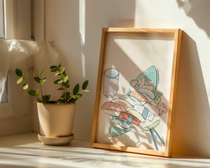 Presentado en un elegante plato azul, el surtido de sushi incluye una variedad de nigiri, sashimi y rollos. Cada pieza muestra delicados patrones y texturas, capturando la esencia de la cocina japonesa tradicional. El sushi está dispuesto en una disposición visualmente atractiva, invitando a los espectadores a apreciar tanto su sabor como su presentación artística. Acompañando al sushi hay un vaso de bebida con un patrón único, añadiendo un toque adicional de estilo artístico. La composición general es suave y relajante, lo que la hace perfecta para espacios que celebran el arte culinario y la estética de la alta cocina.| Tipo |