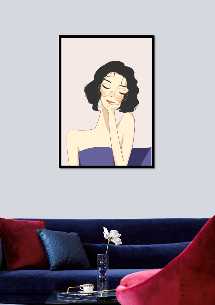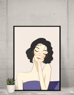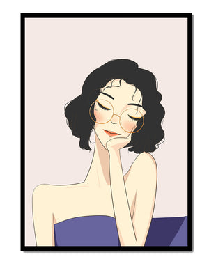 Póster de arte de pared minimalista moderno de una mujer elegante con gafas | Ilustración de moda elegante para decoración del hogar