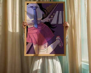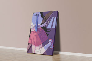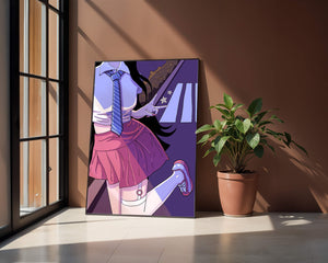 Dans cette illustration dynamique et colorée, une écolière est représentée dans un style anime, débordant d'énergie et de jeunesse, avec des teintes vibrantes qui dominent la scène.