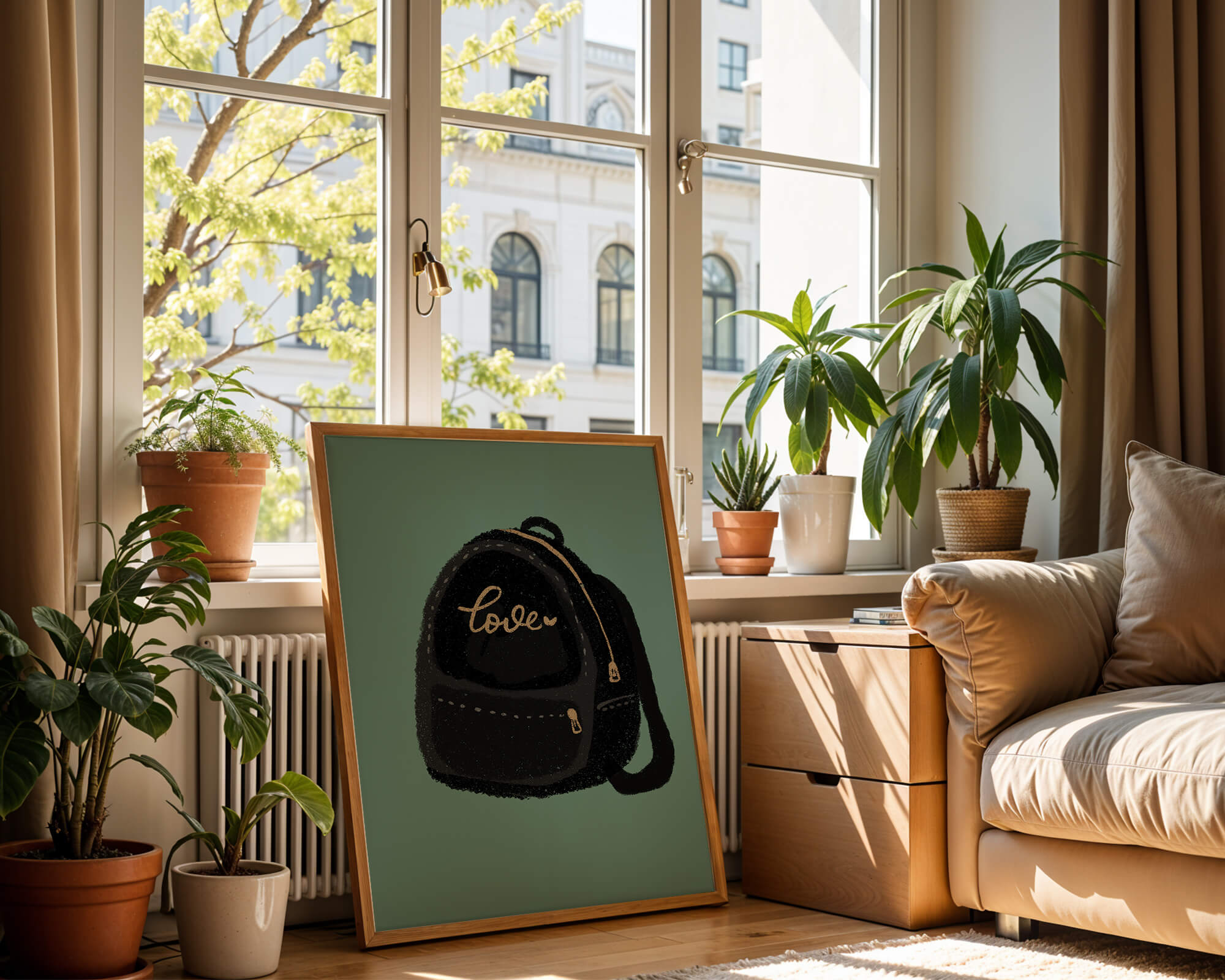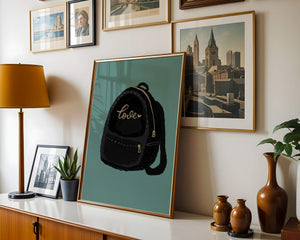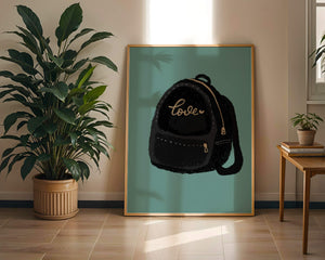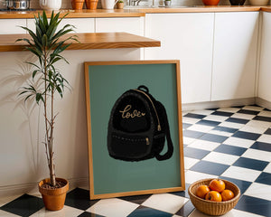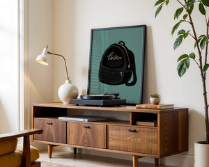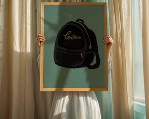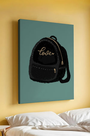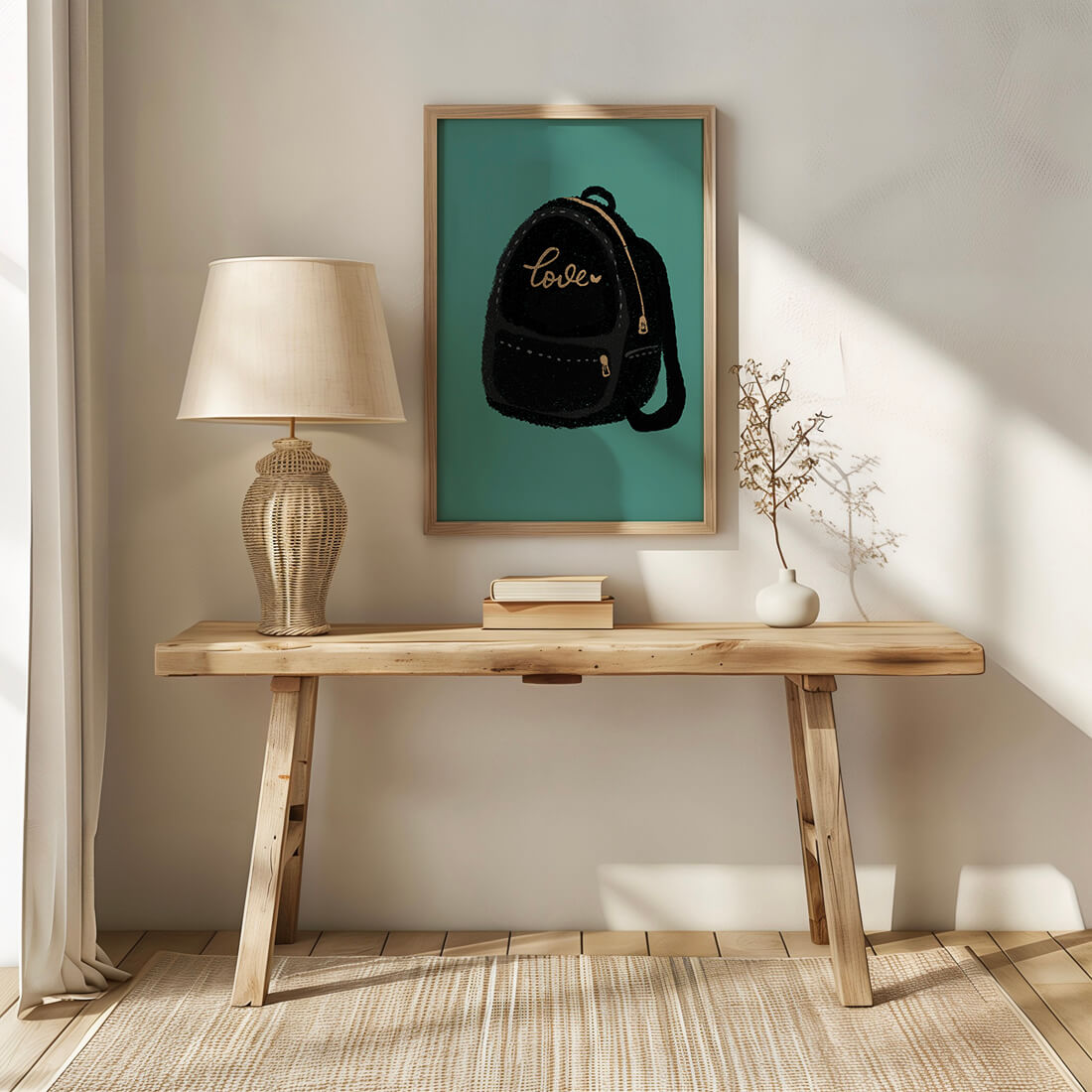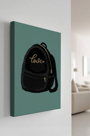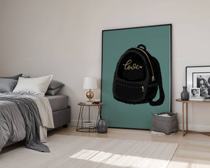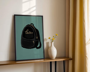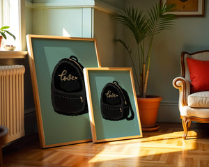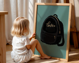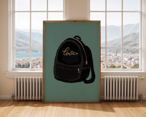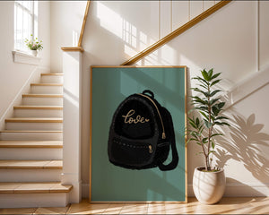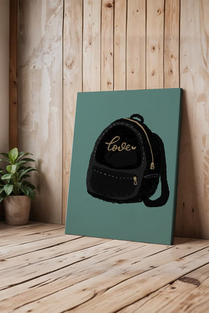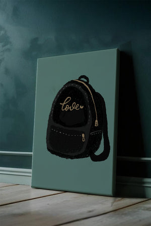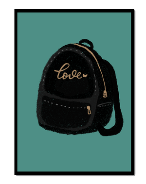 Sac à dos noir élégant avec des accents dorés et l'inscription "love"