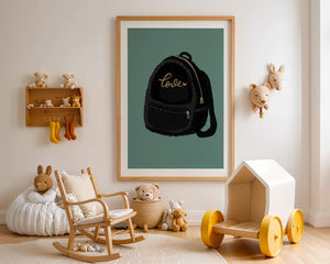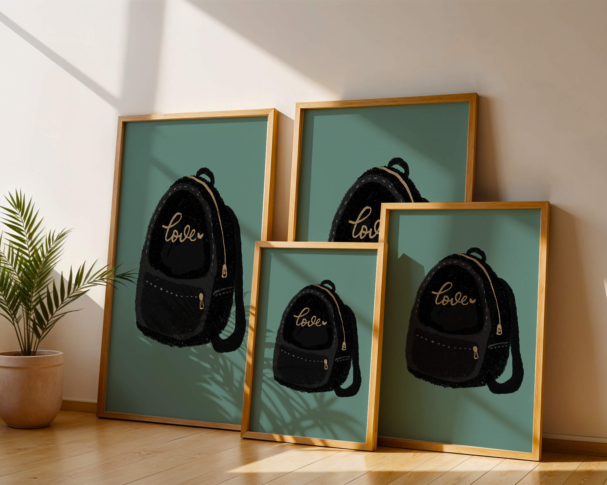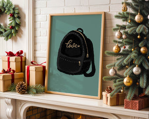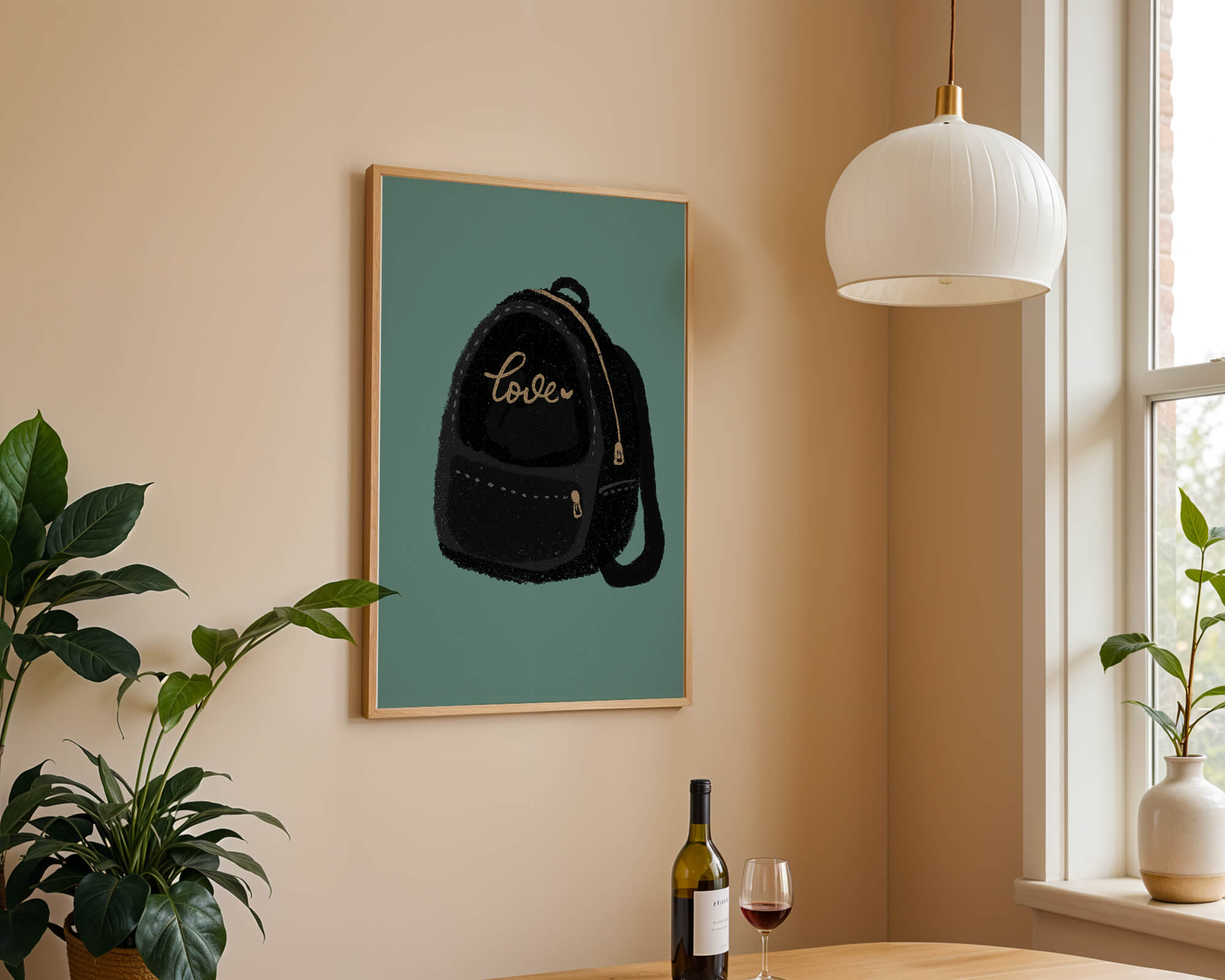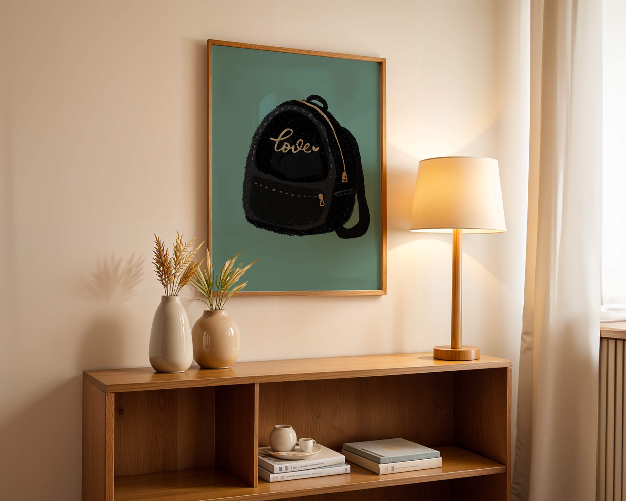 Sac à dos noir élégant avec des accents dorés et l'inscription "love"