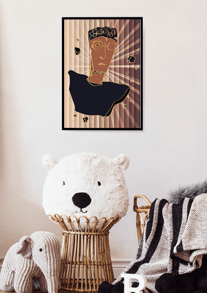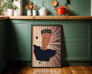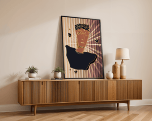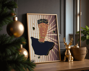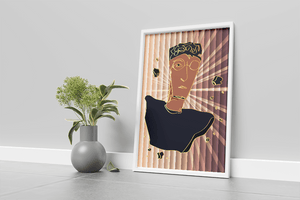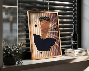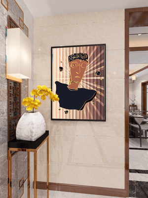 This artwork embodies a contemporary approach to portraiture, blending expressive digital strokes with metallic elements. The bold contrast and deconstructed form evoke a futuristic aesthetic that captivates the viewer.