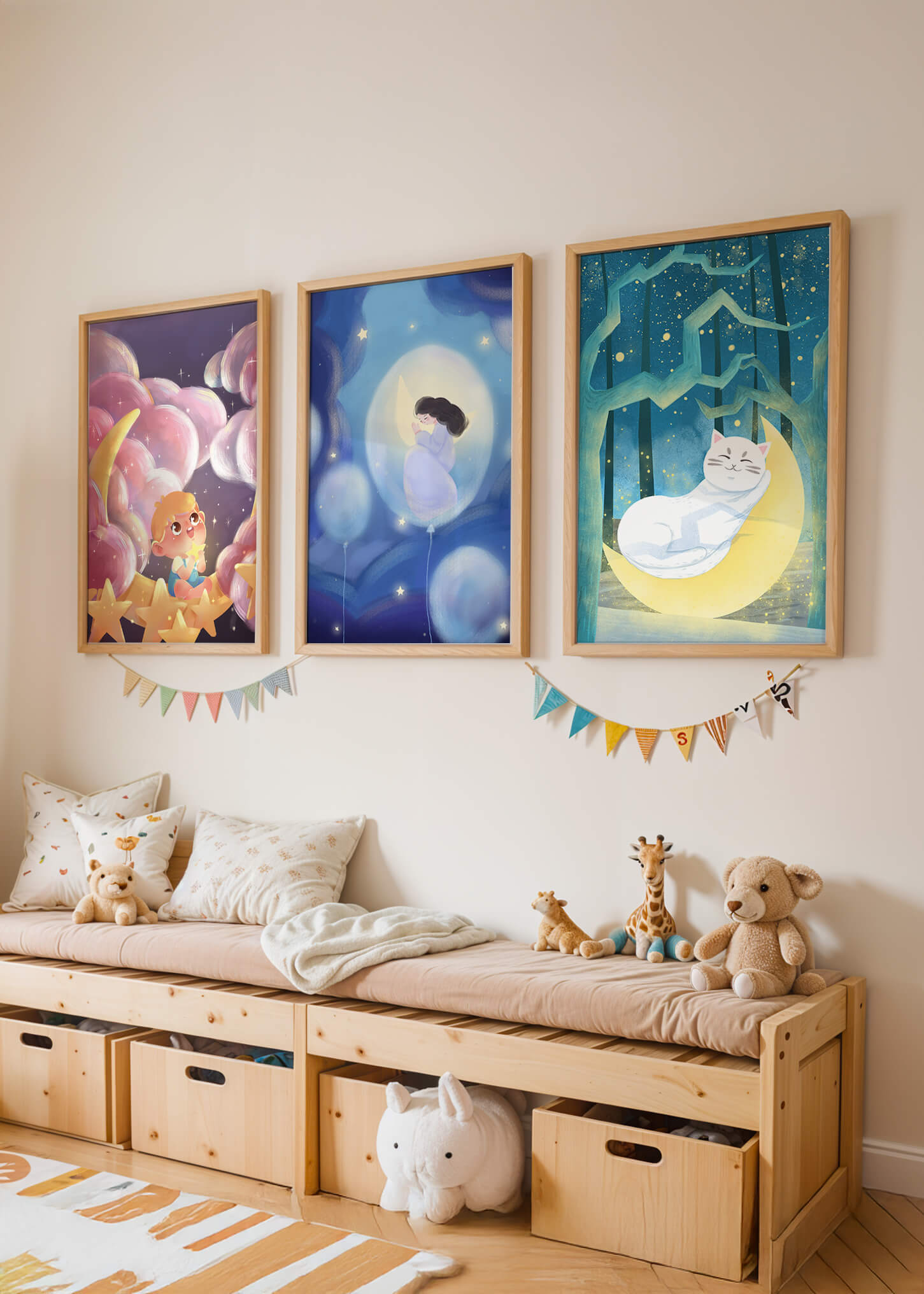 Cuadros de ensueño con motivos infantiles y lunares
