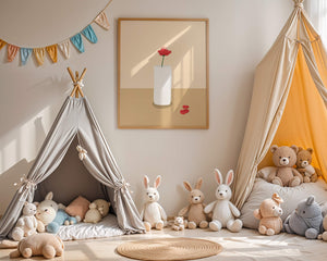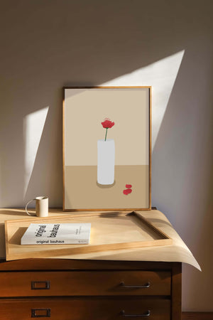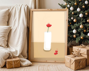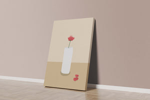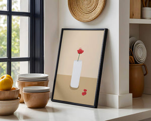 This artwork captures the essence of minimalist design through its simple yet striking composition. The red flower stands out vividly against the beige background, emphasizing its natural beauty and elegance. The soft colors create a sense of calm and serenity, making it a perfect addition to modern or minimalist interiors.