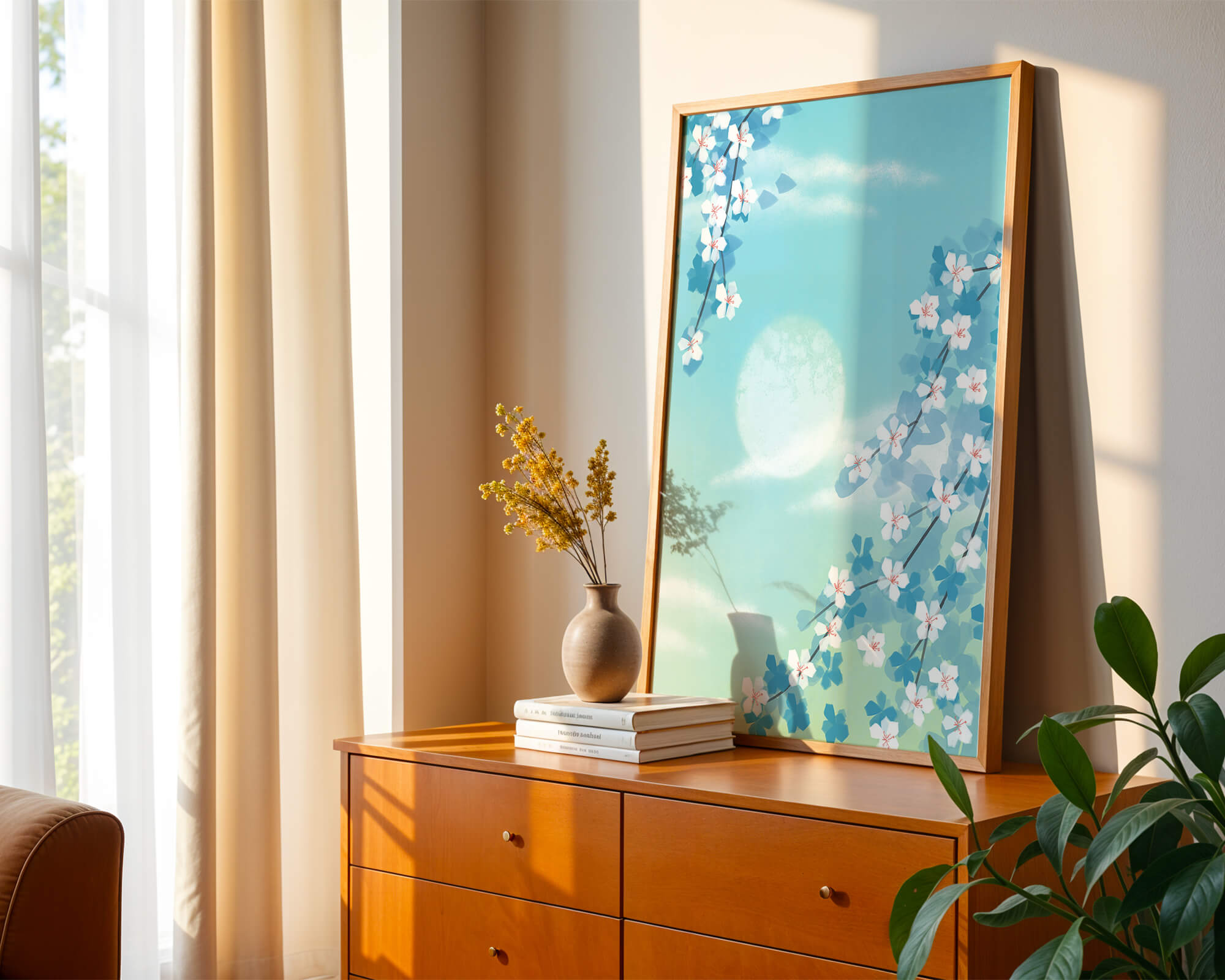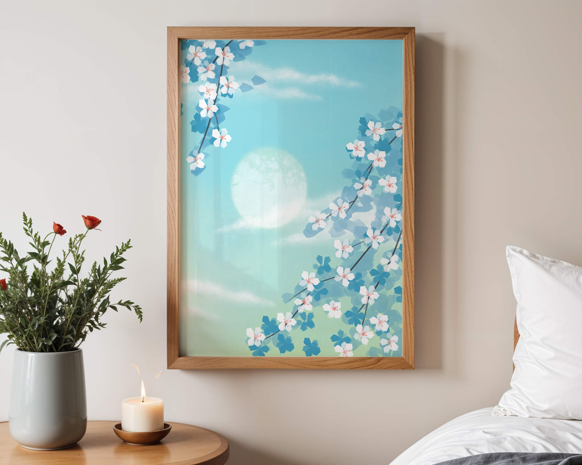 In this captivating image, the natural beauty of spring is depicted through the flourishing blossoms. The soft colors and gentle light create a peaceful ambience, offering a sense of calm and tranquility. The delicate branches reach gracefully across the scene, bringing a touch of elegance and serenity to any space.The composition is both tranquil and inspiring, making it a perfect addition to any decor. Whether placed in a living room, bedroom, or hallway, this artwork enhances its surroundings, evoking feelings of peace and nature. The abstract nature of the background adds a contemporary twist, making it suitable for a variety of interior styles.| Type |