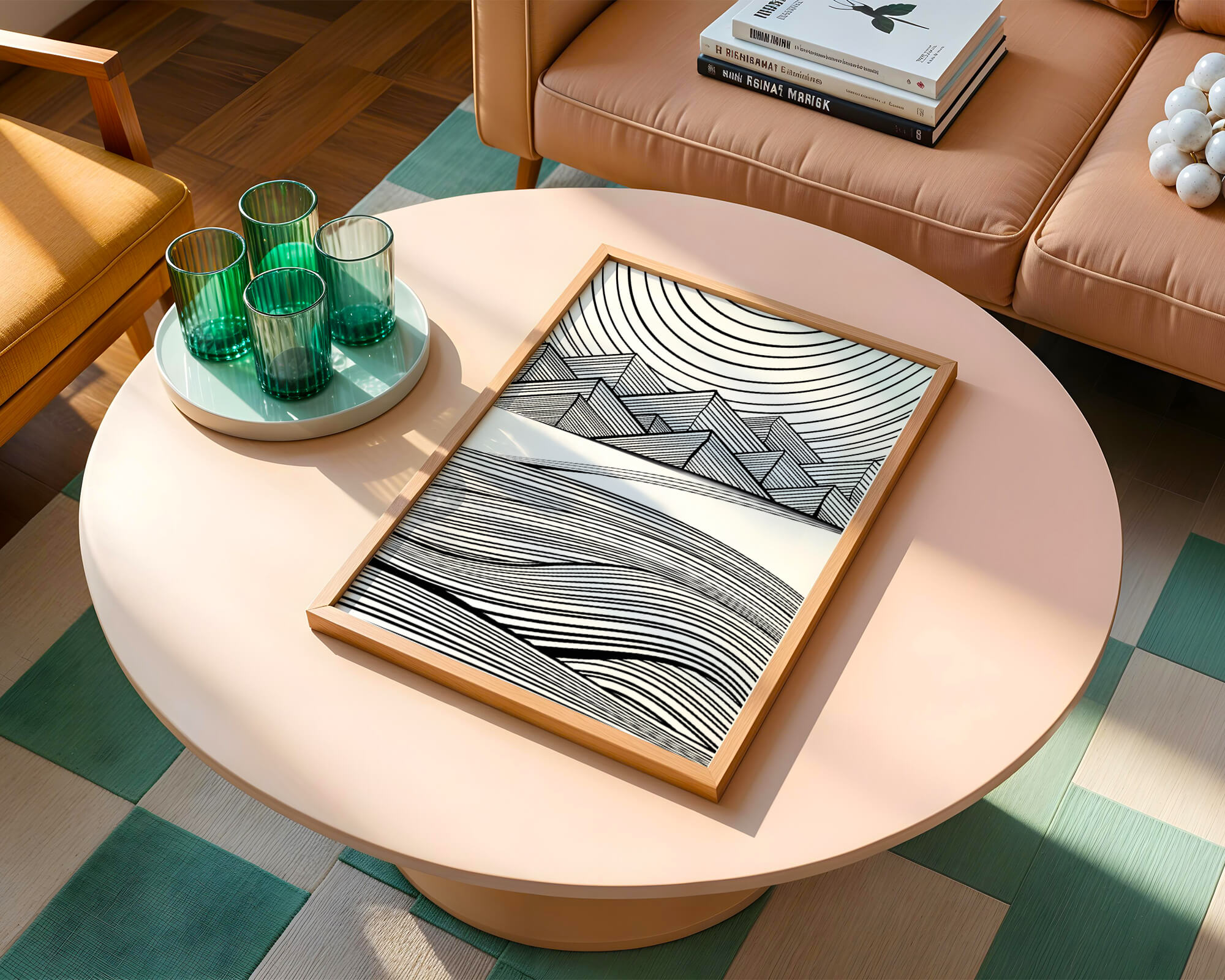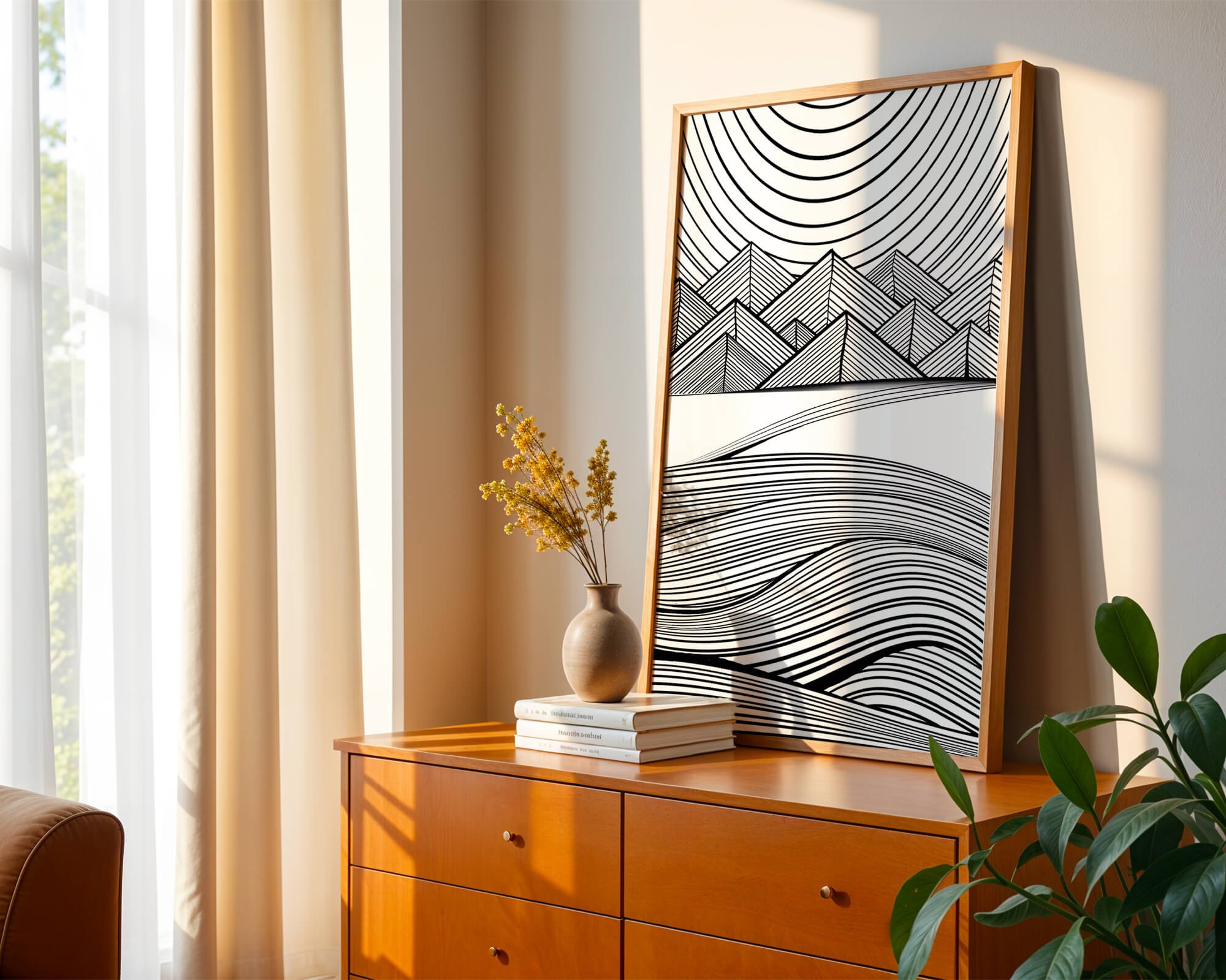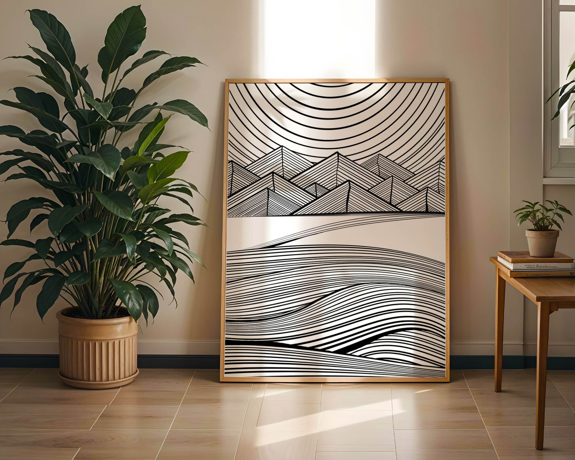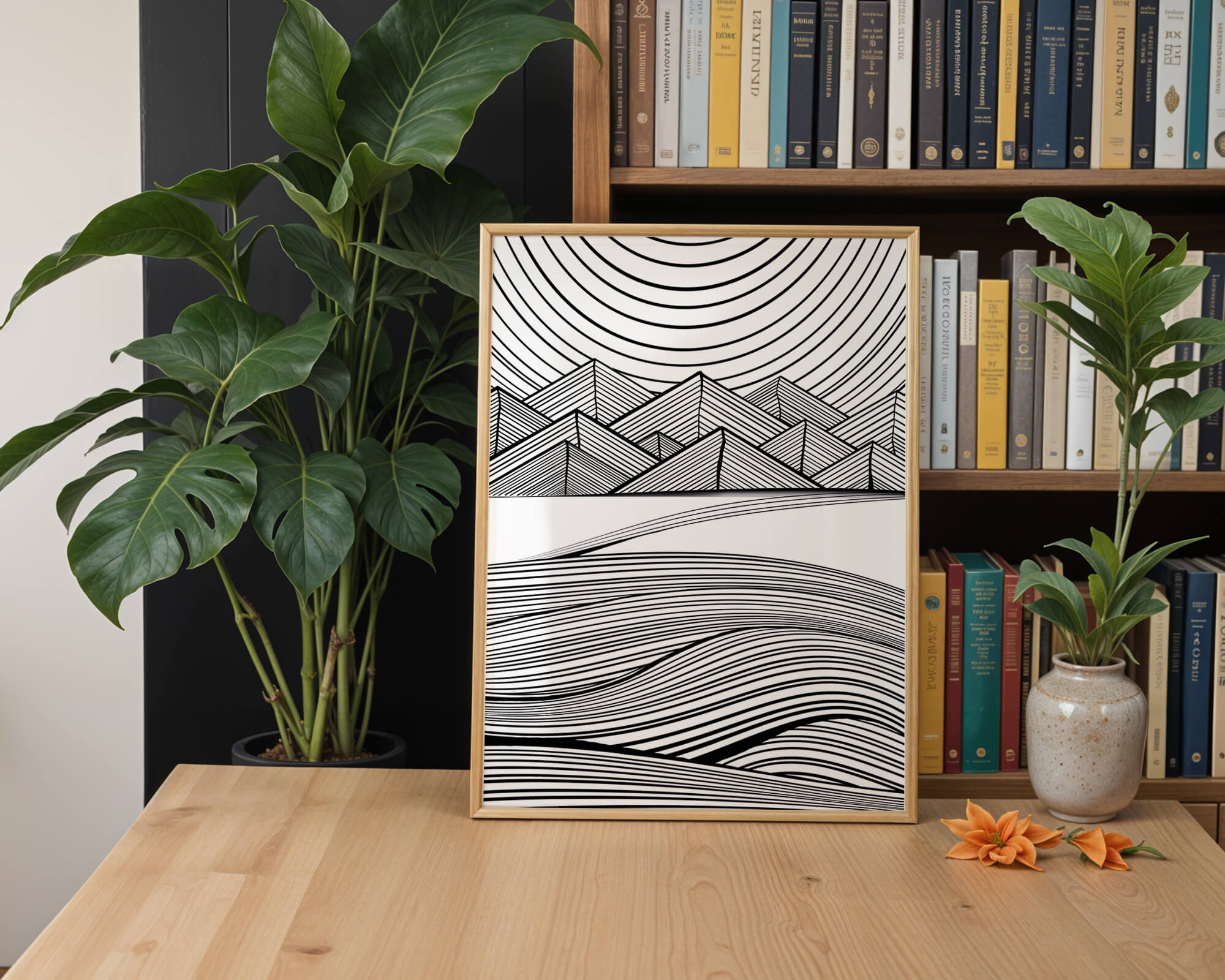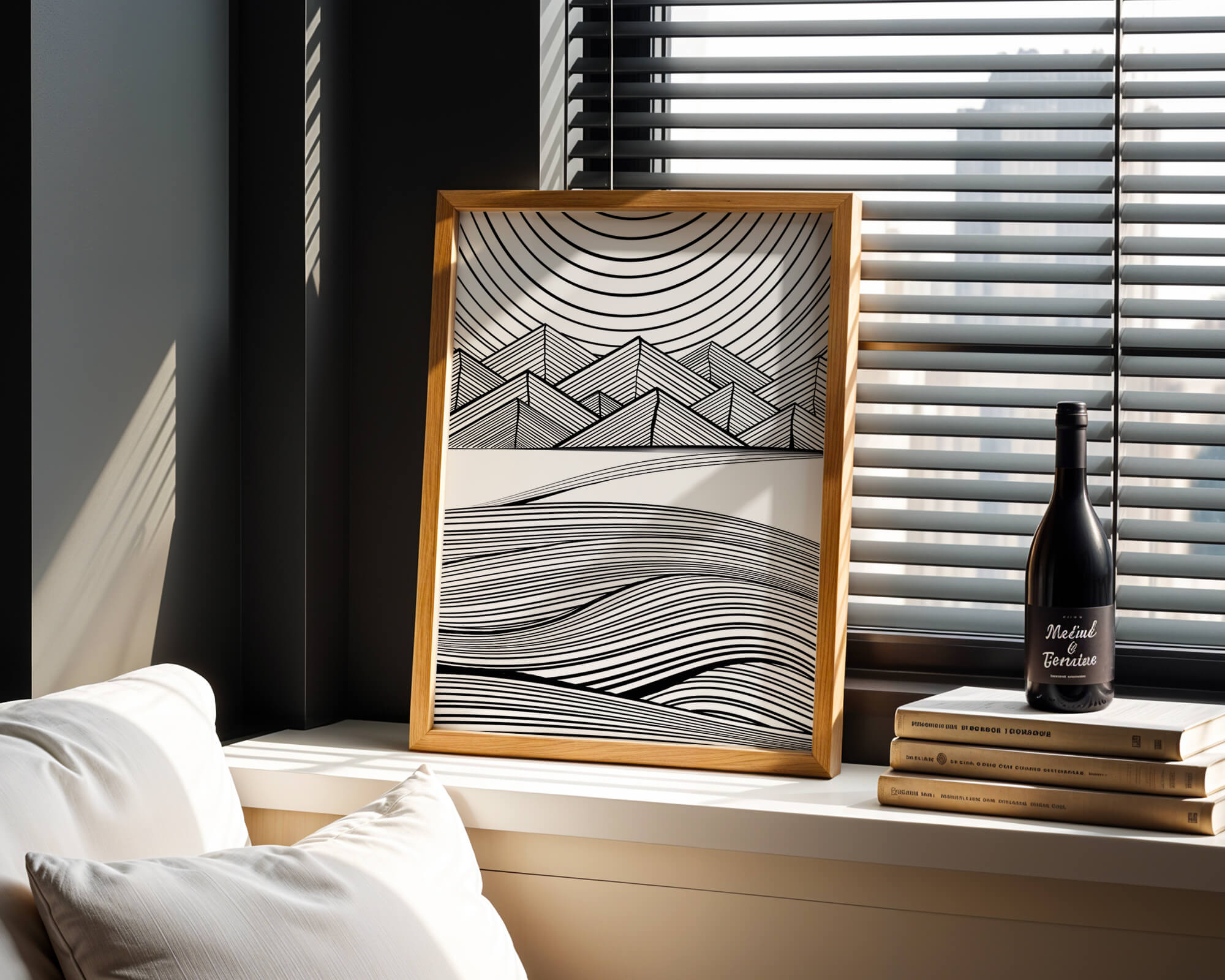 Home Abstract Black and White Geometric Landscape with Line Art