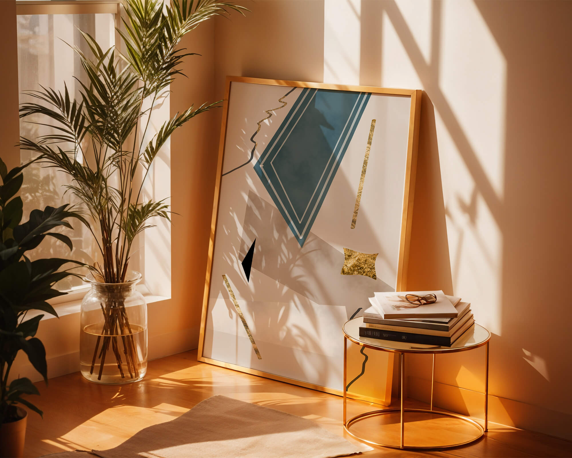 Home Abstract geometric artwork with gold accents and dynamic shapes