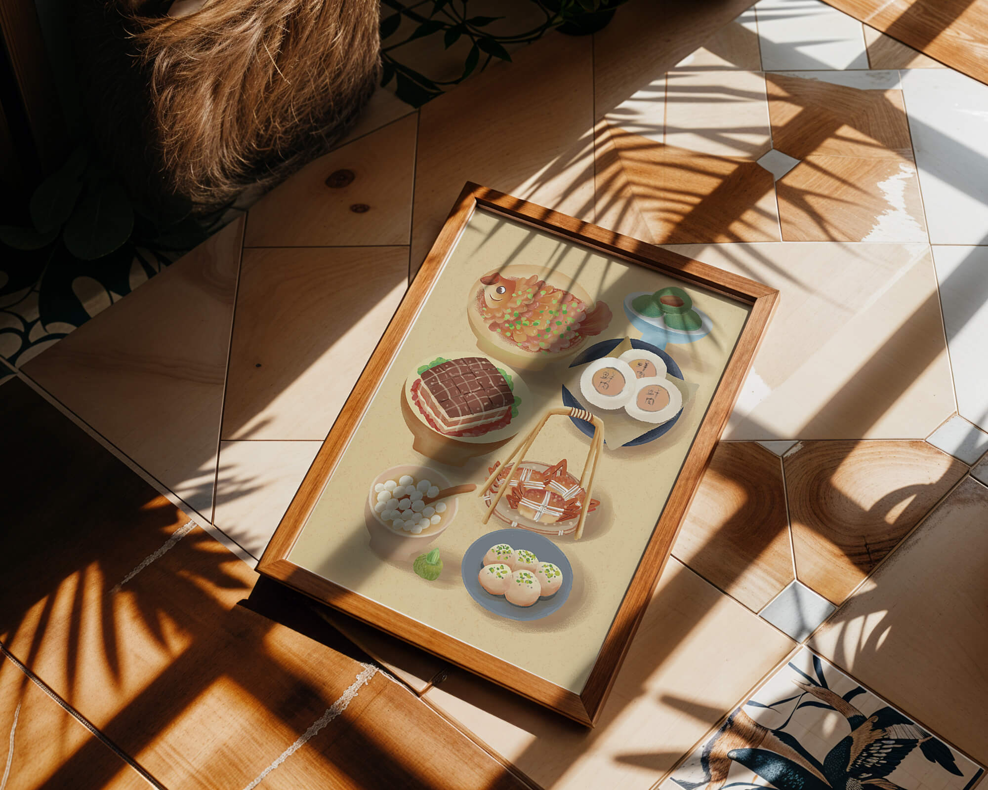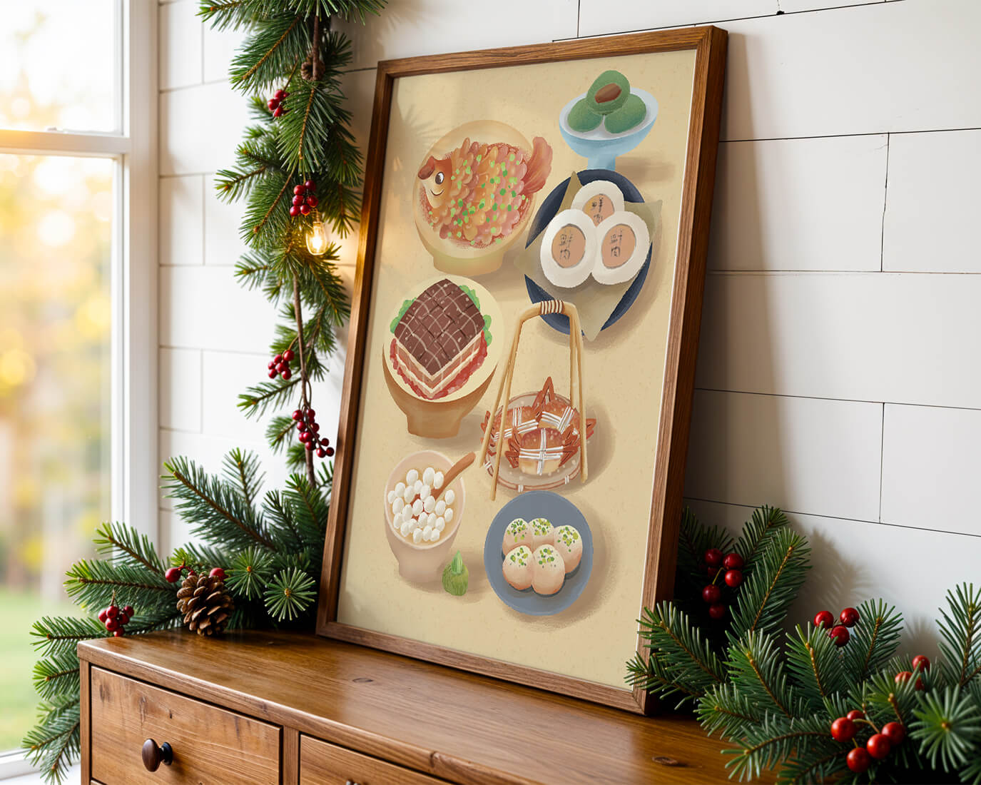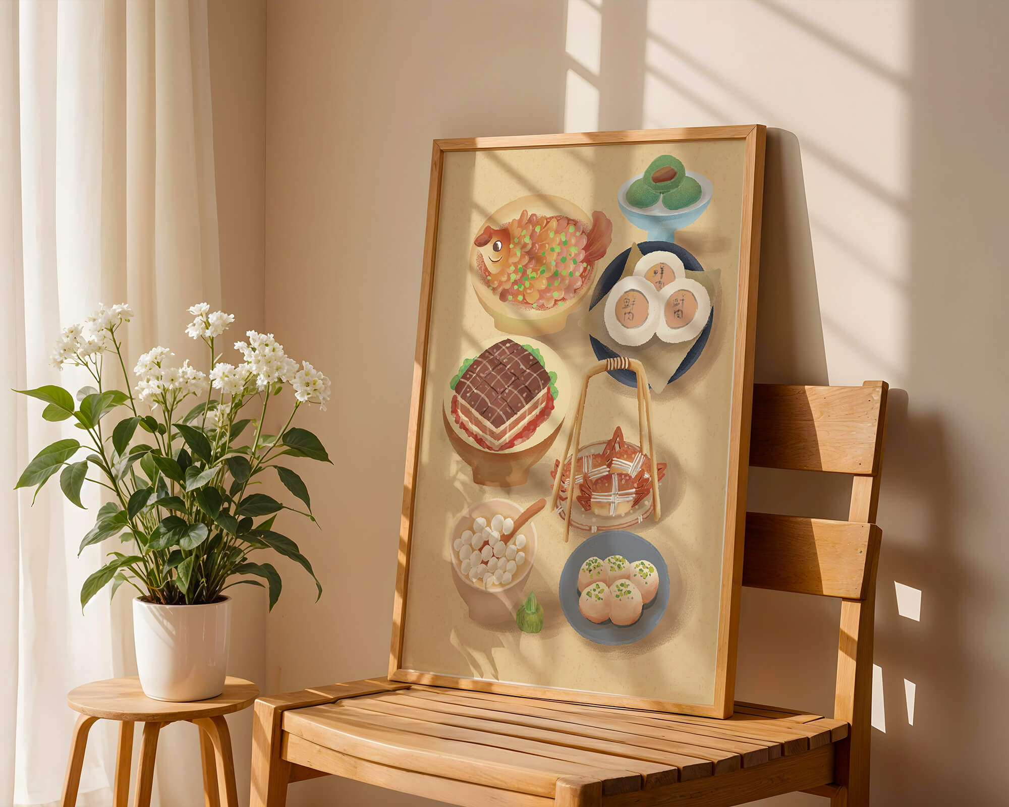 Colorful Chinese Cuisine Illustration with Various Dishes
