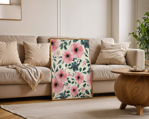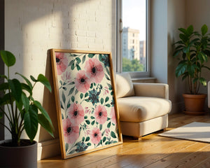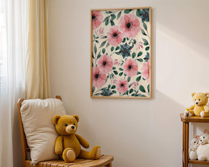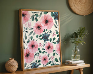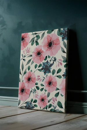 The floral design incorporates soft pink petals and rich green foliage, reflecting a harmonious blend of natural elements. This pattern captures the essence of natures beauty, making it a perfect choice for home decor, textiles, or any creative project seeking a touch of elegance and charm.Whether youre looking to refresh your interior space or add a gentle accent to your creative work, this floral watercolor pattern provides a timeless aesthetic. Its artful combination of colors and shapes offers versatility and sophistication, catering to a range of styles and preferences.