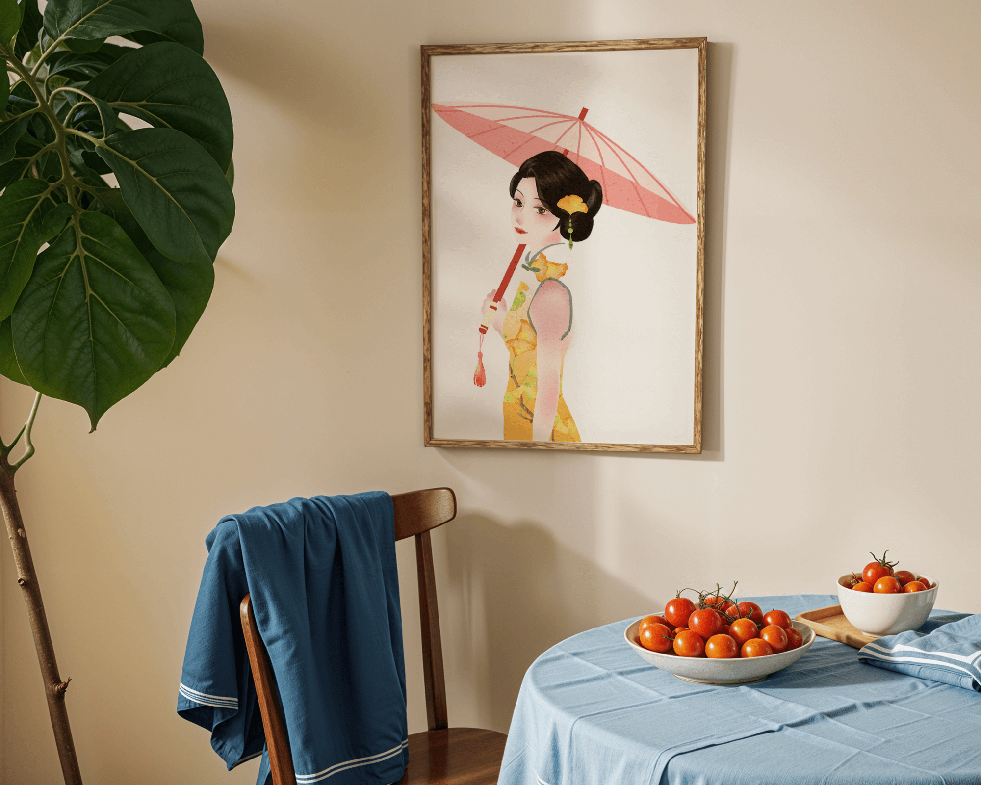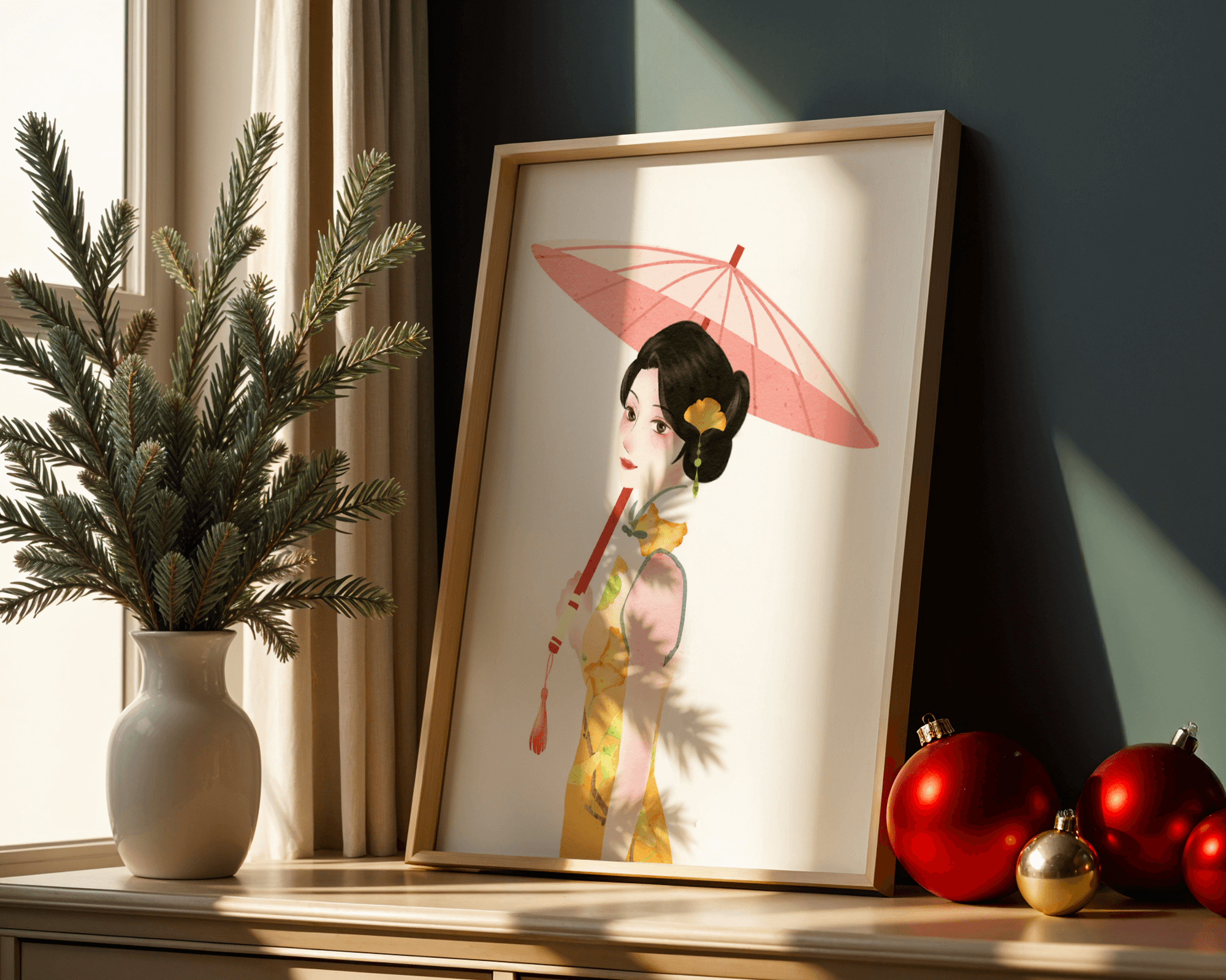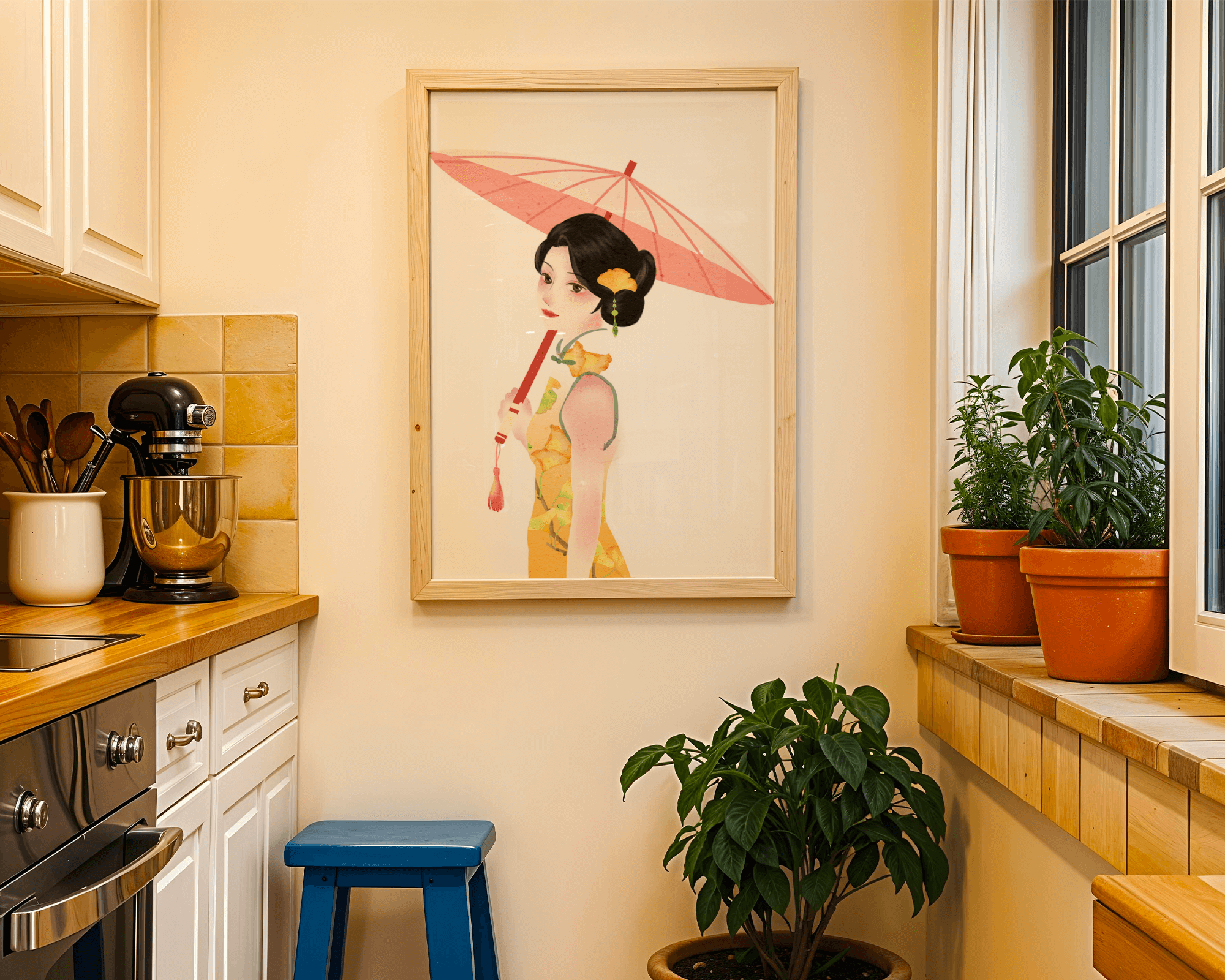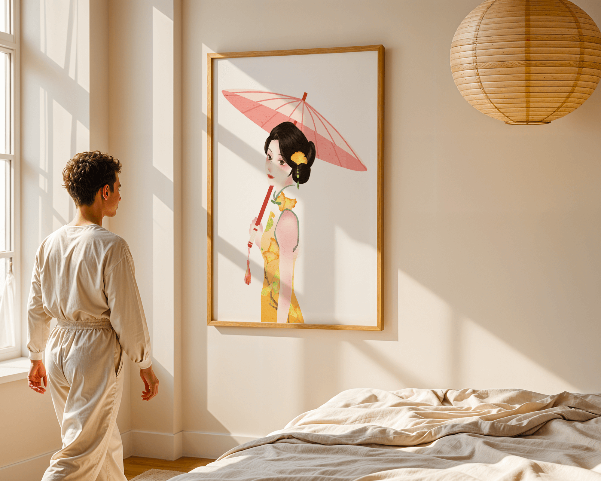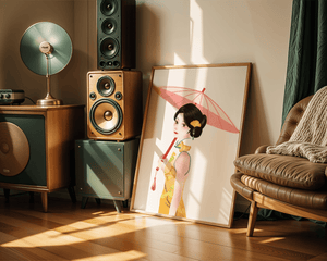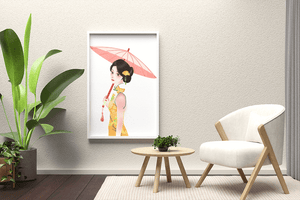 Japanese Geisha Wall Art | Oriental Minimalist Poster | Traditional Asian Decor Print