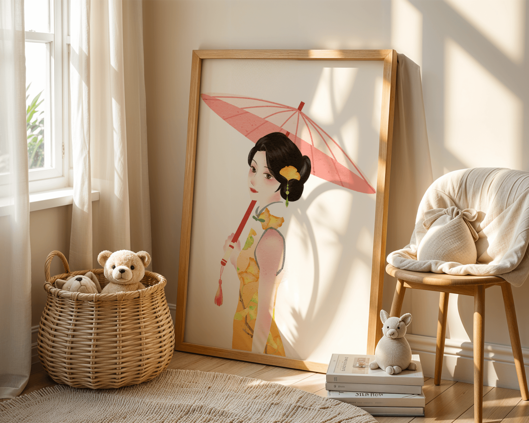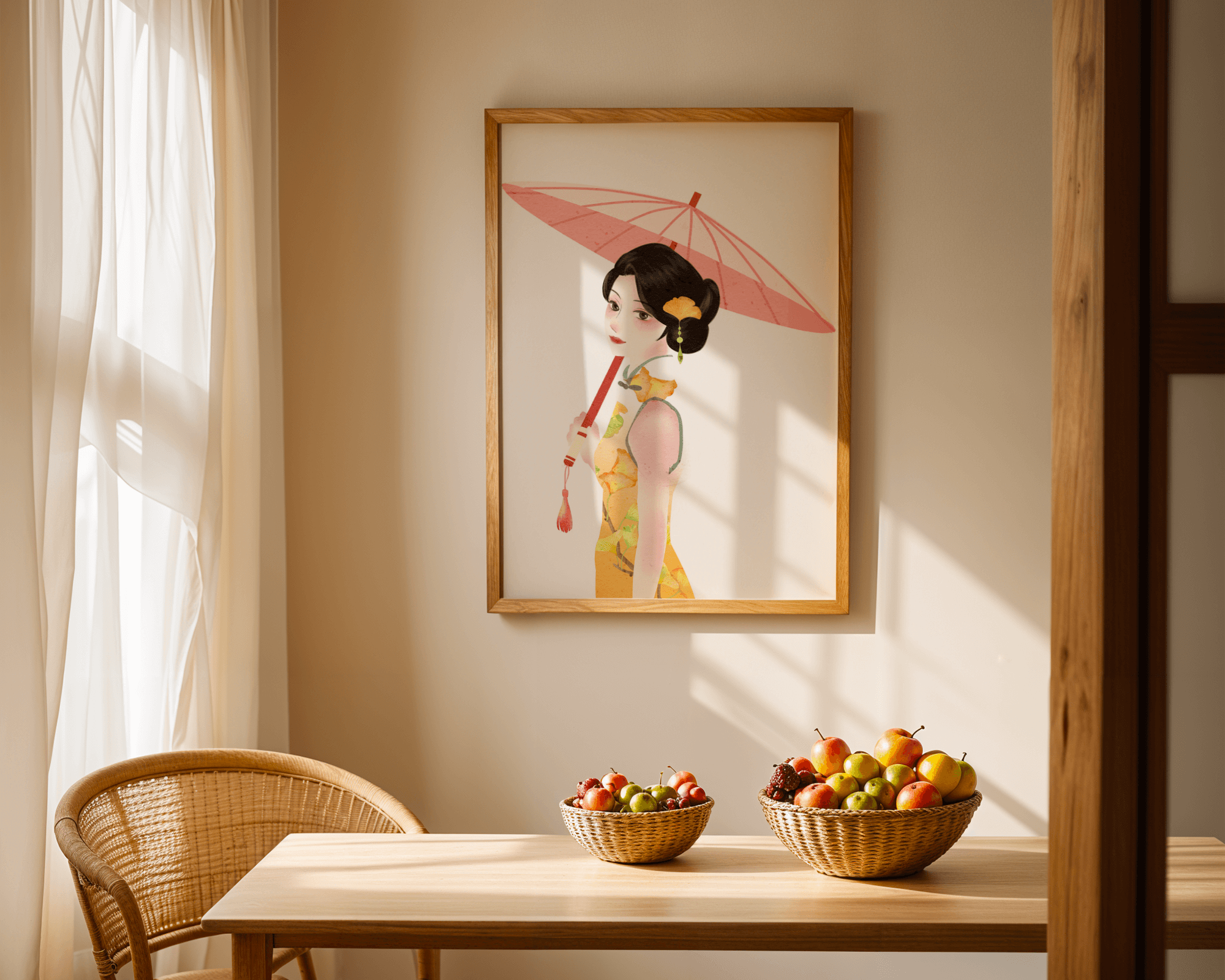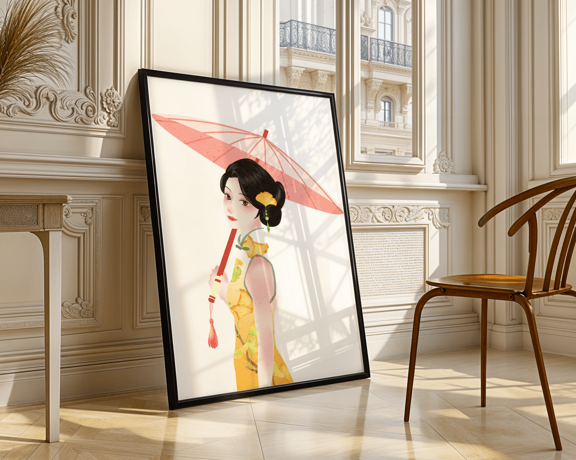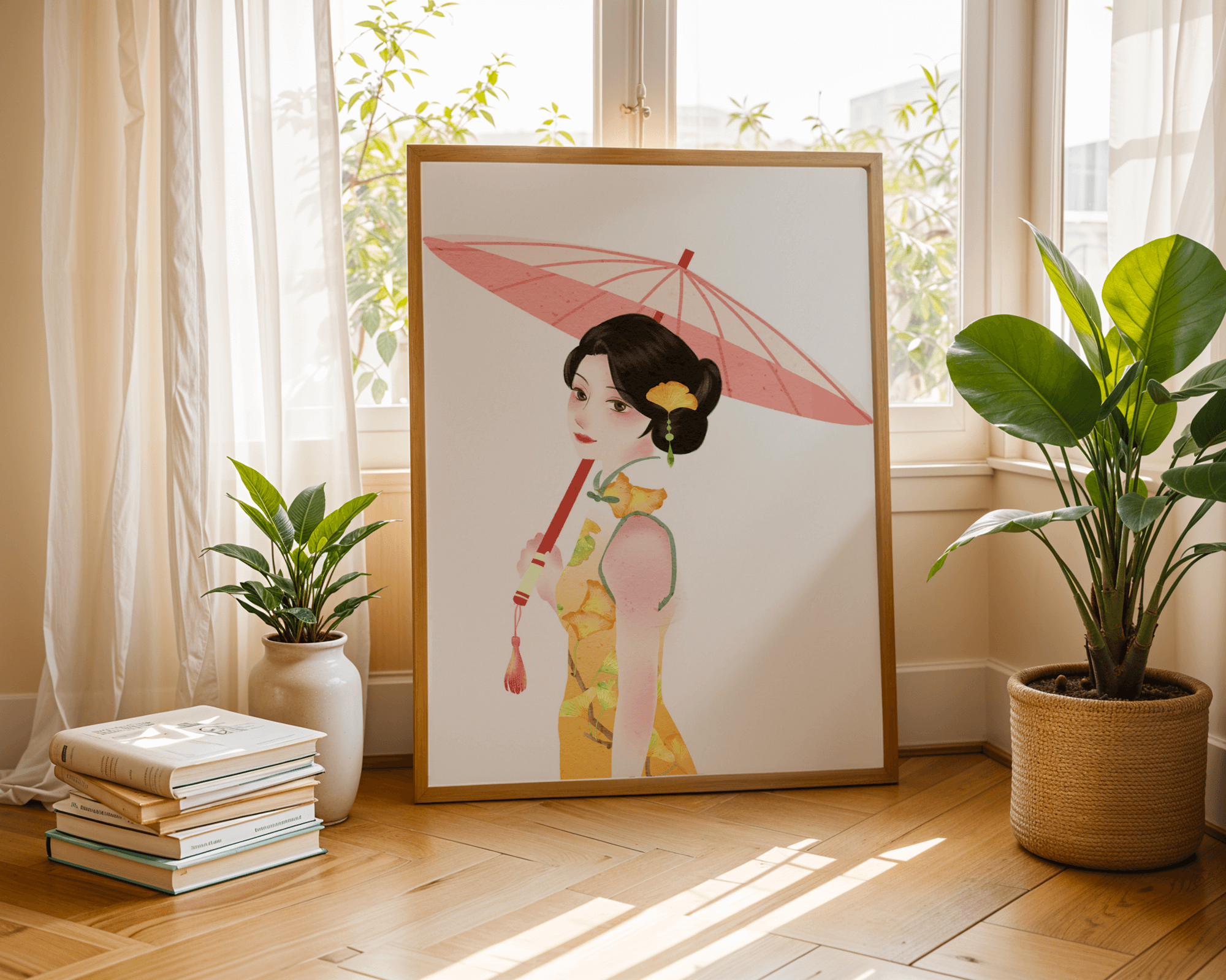 Japanese Geisha Wall Art | Oriental Minimalist Poster | Traditional Asian Decor Print
