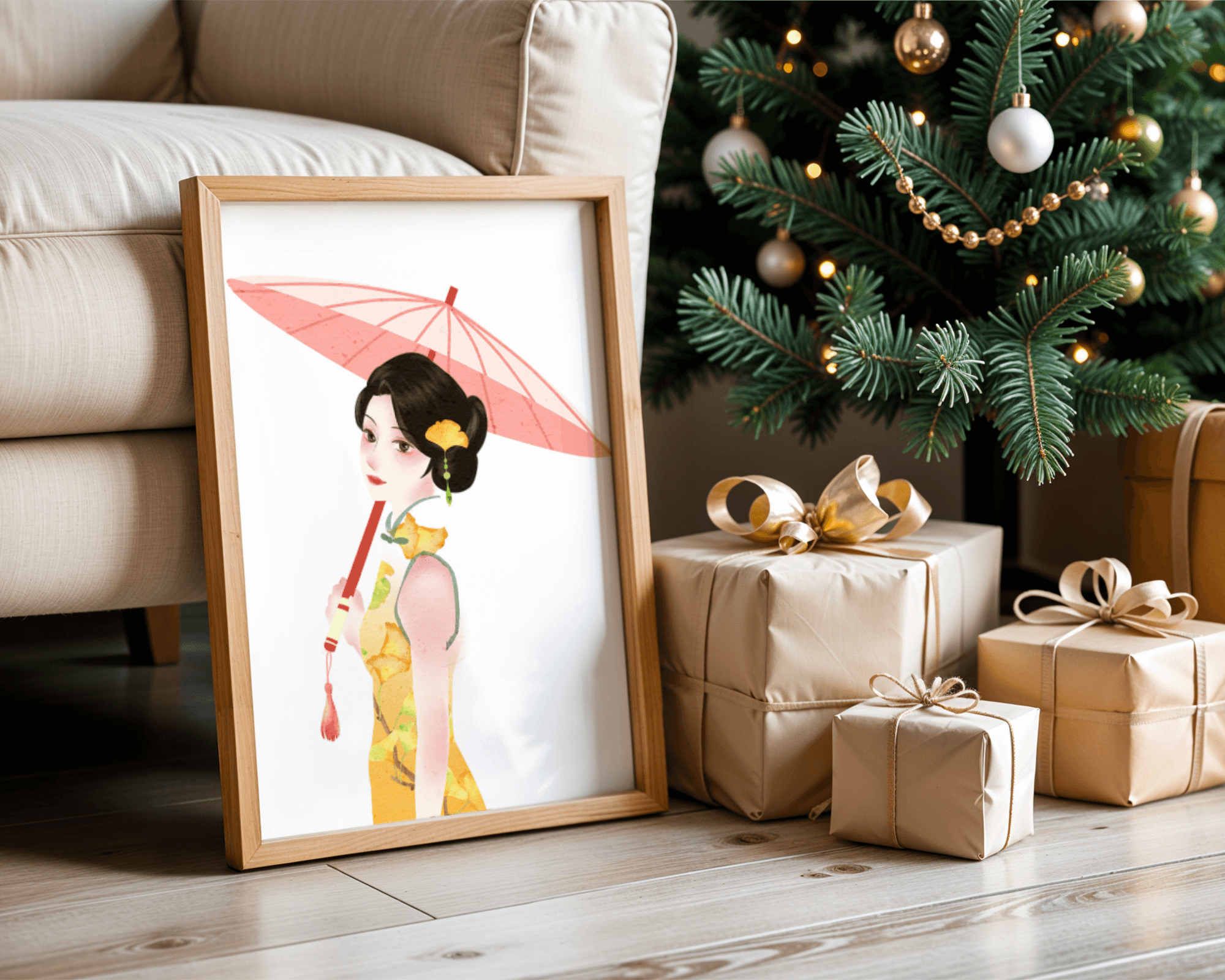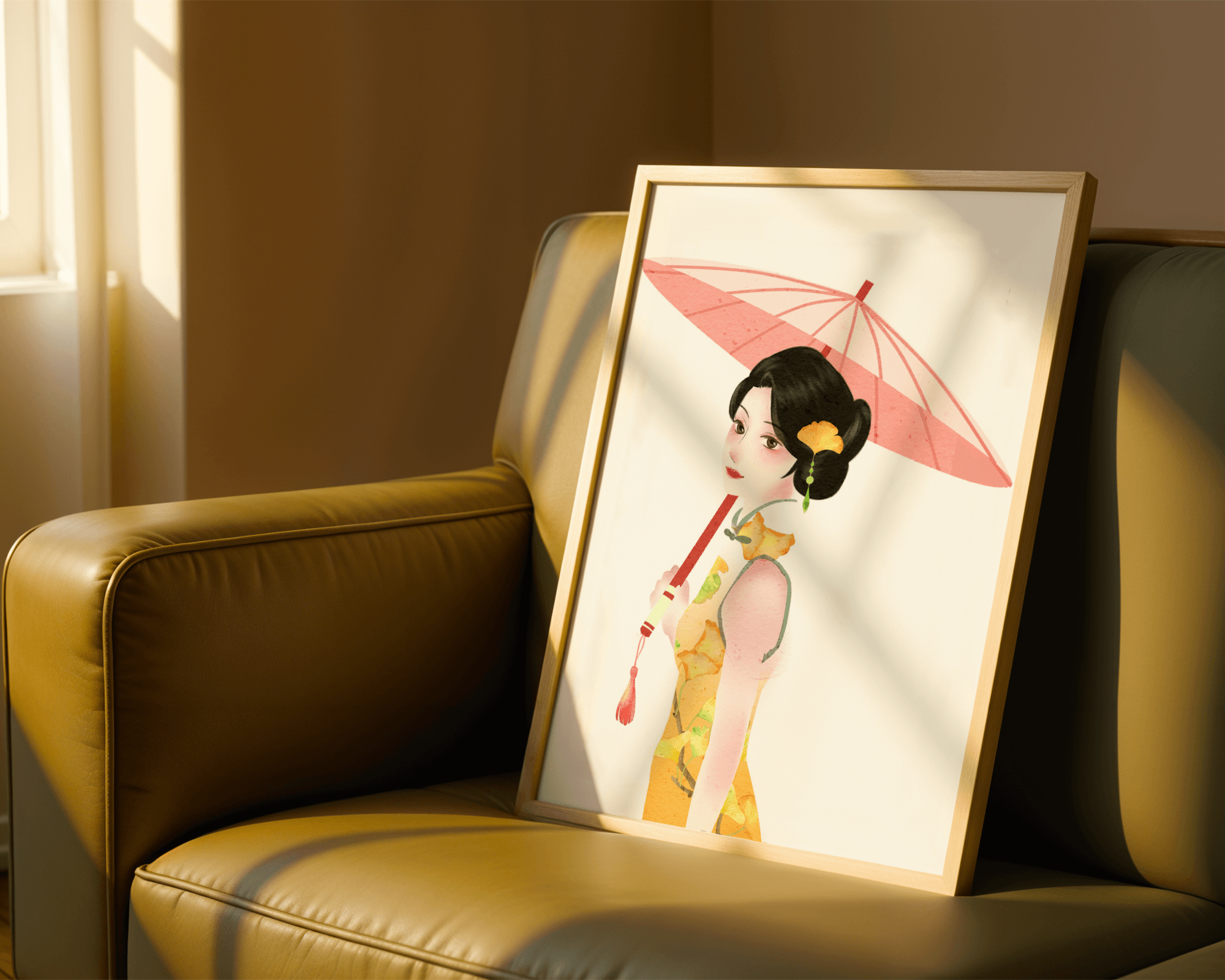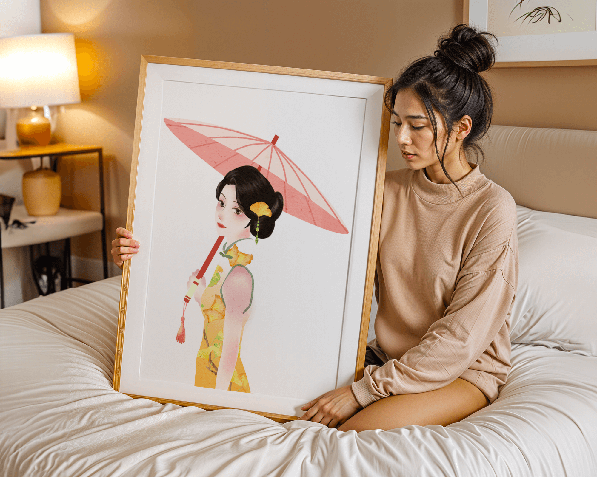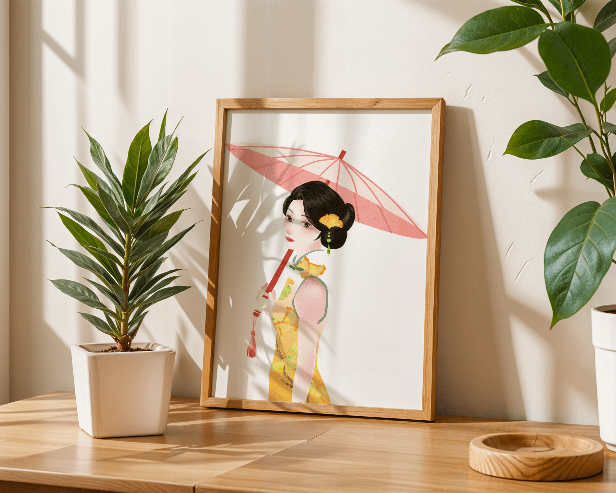 Japanese Geisha Wall Art | Oriental Minimalist Poster | Traditional Asian Decor Print