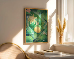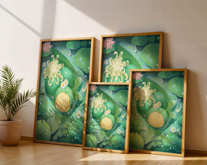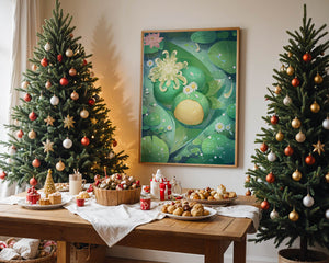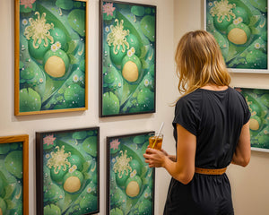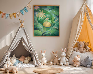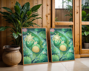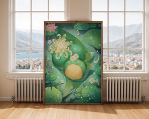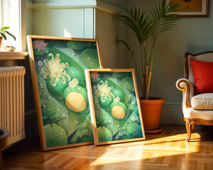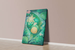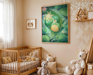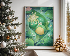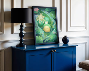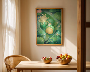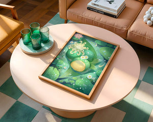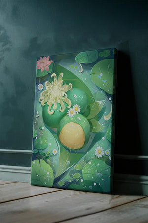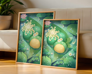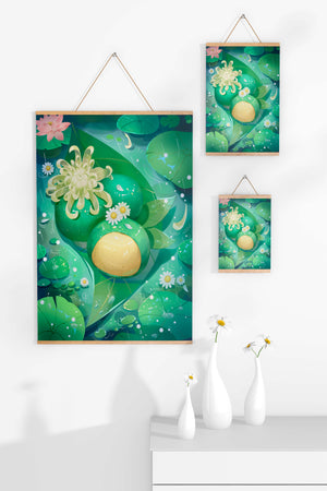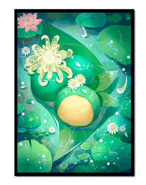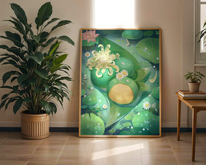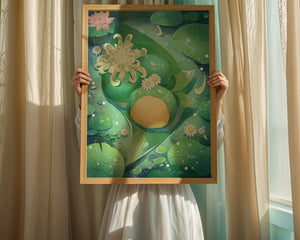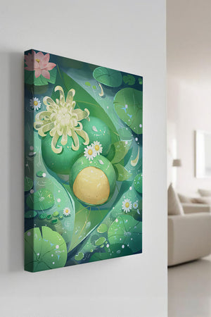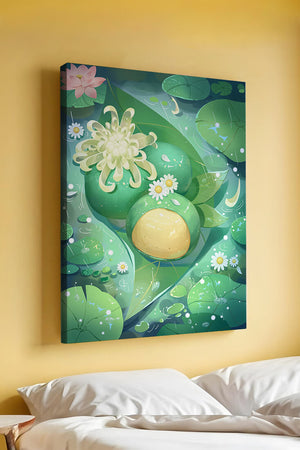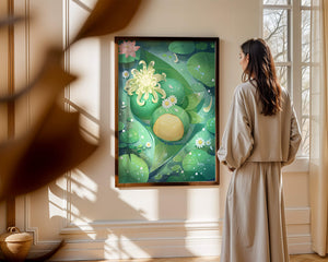 The artwork captures an idyllic aquatic landscape, where vibrant green leaves and blooming lotus flowers float gently on the waters surface. The soft hues and flowing shapes provide a sense of tranquility and depth, inviting viewers to immerse themselves in the serene beauty of nature. The delicate details of the petals and the play of light on the water enhance the scene’s ethereal quality.The arrangement of elements, from blooming flowers to textured leaves, creates a harmonious balance, while the subtle reflections and droplets add to the realism and calmness of the environment. Perfect for adding a touch of nature-inspired elegance to any interior space.| Type |