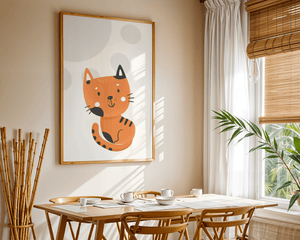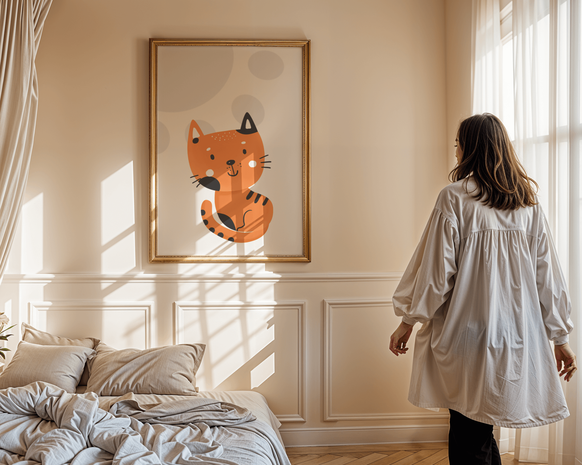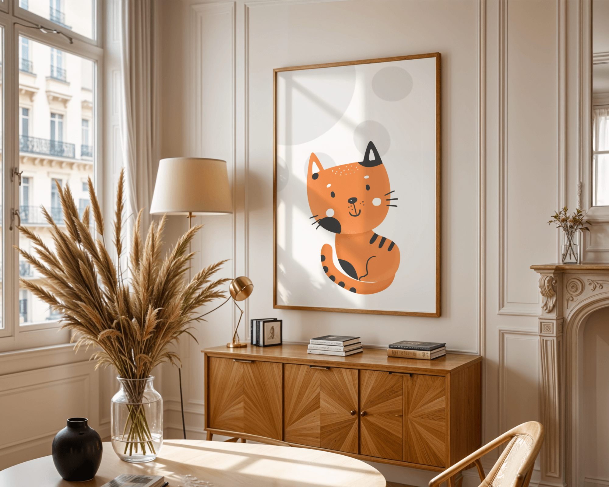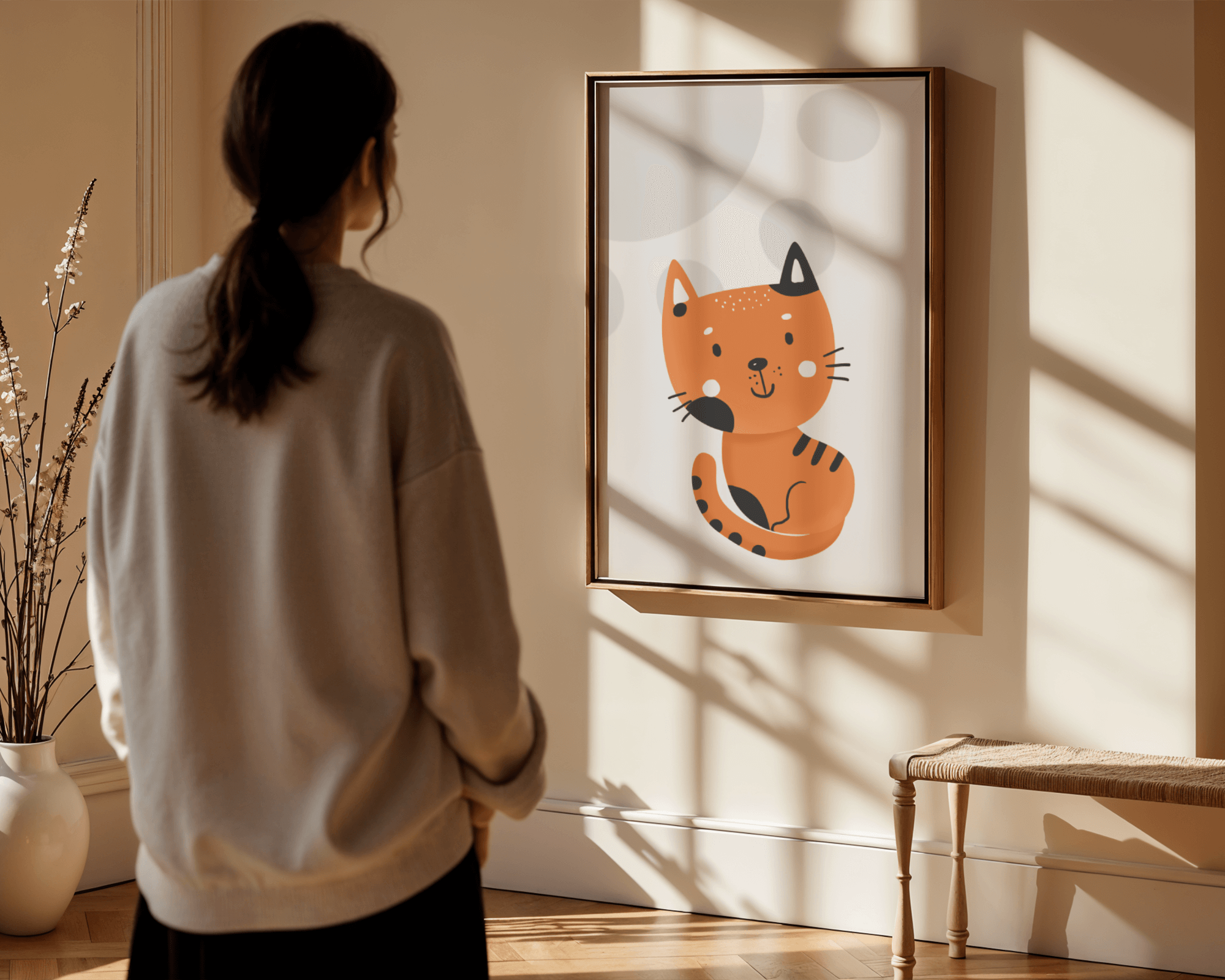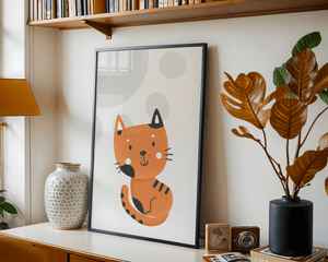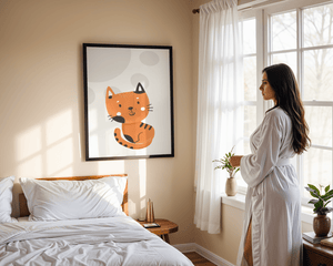 Printed with high-quality pigment inks, this artwork ensures vibrant colors and lasting durability. Whether you're decorating a child's bedroom or looking for a unique gift for cat lovers, this minimalist cat poster is a delightful choice that brings joy and style to any interior.