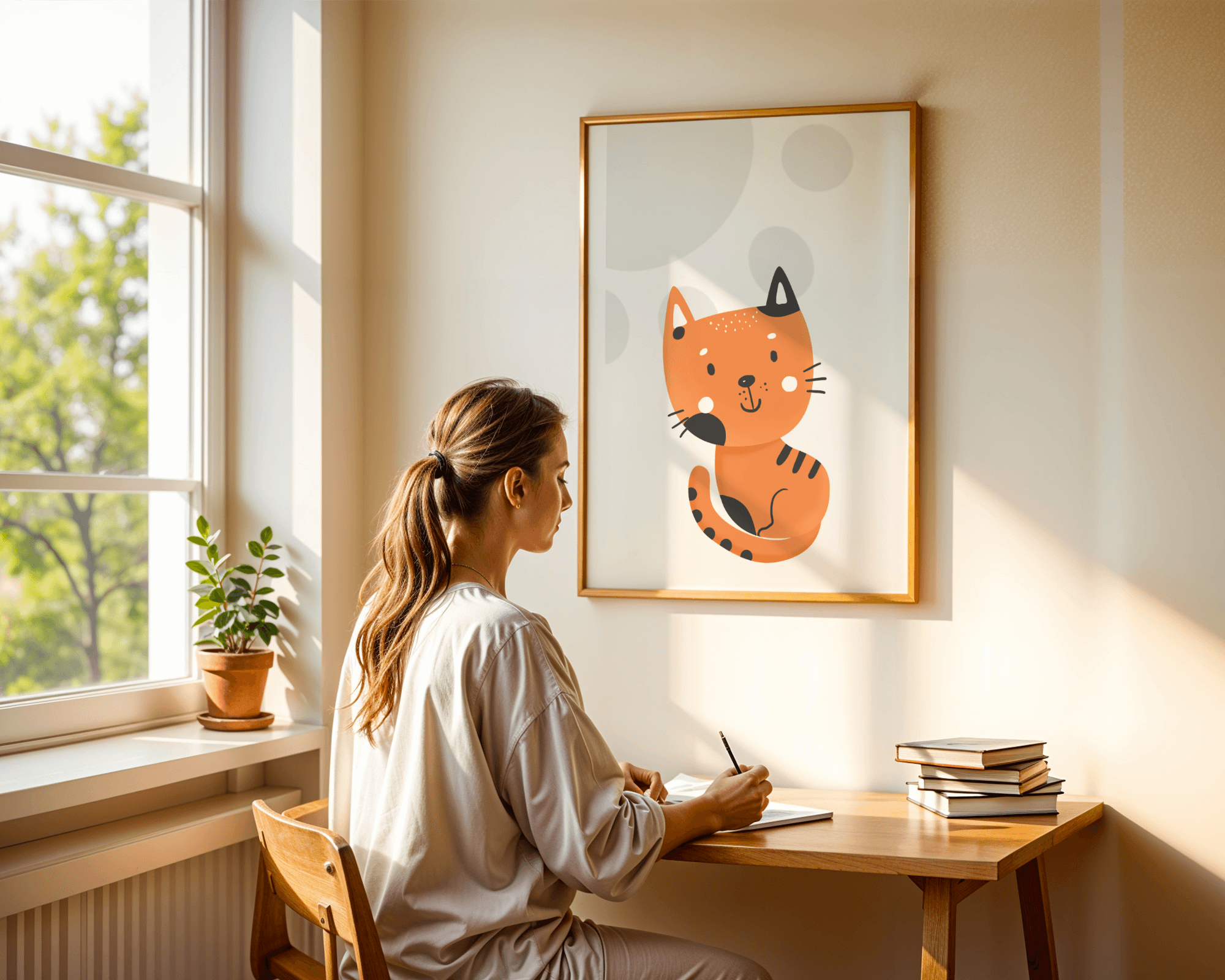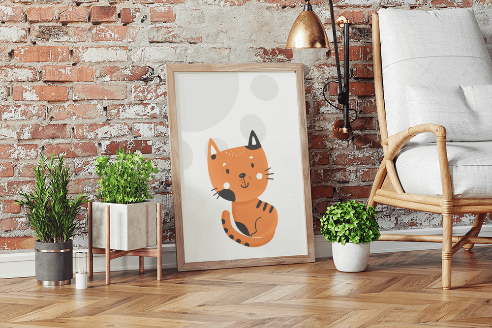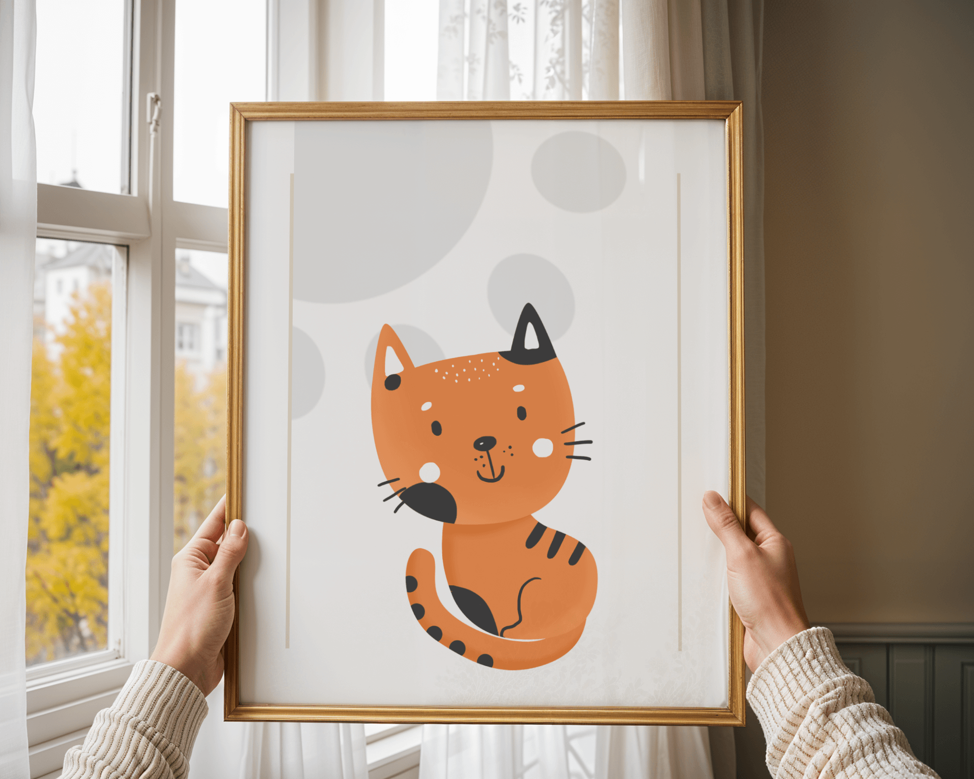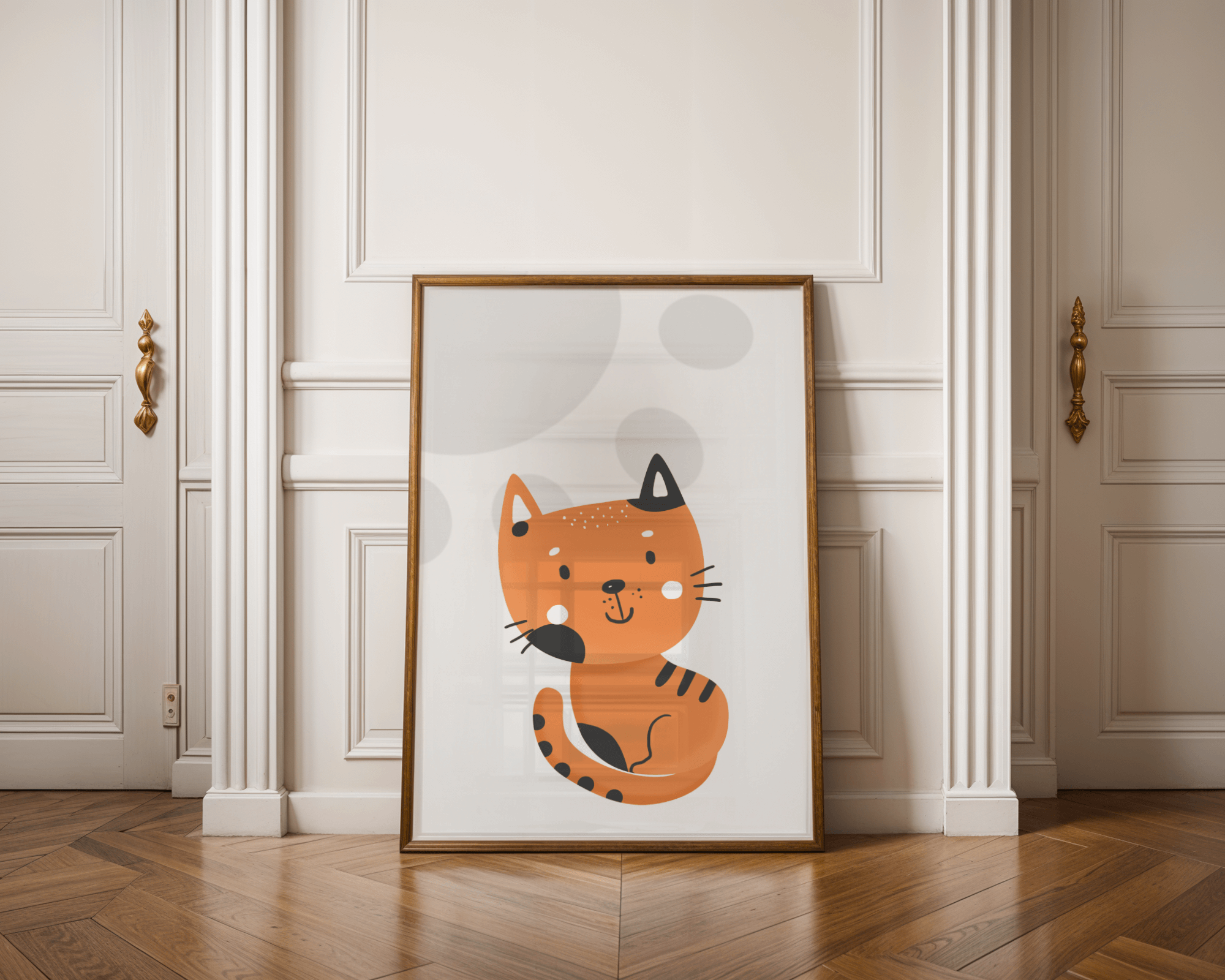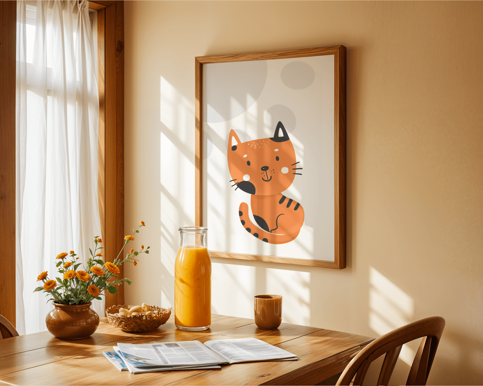Minimalist cat poster – Cute orange kitten illustration for kids’ room and nursery