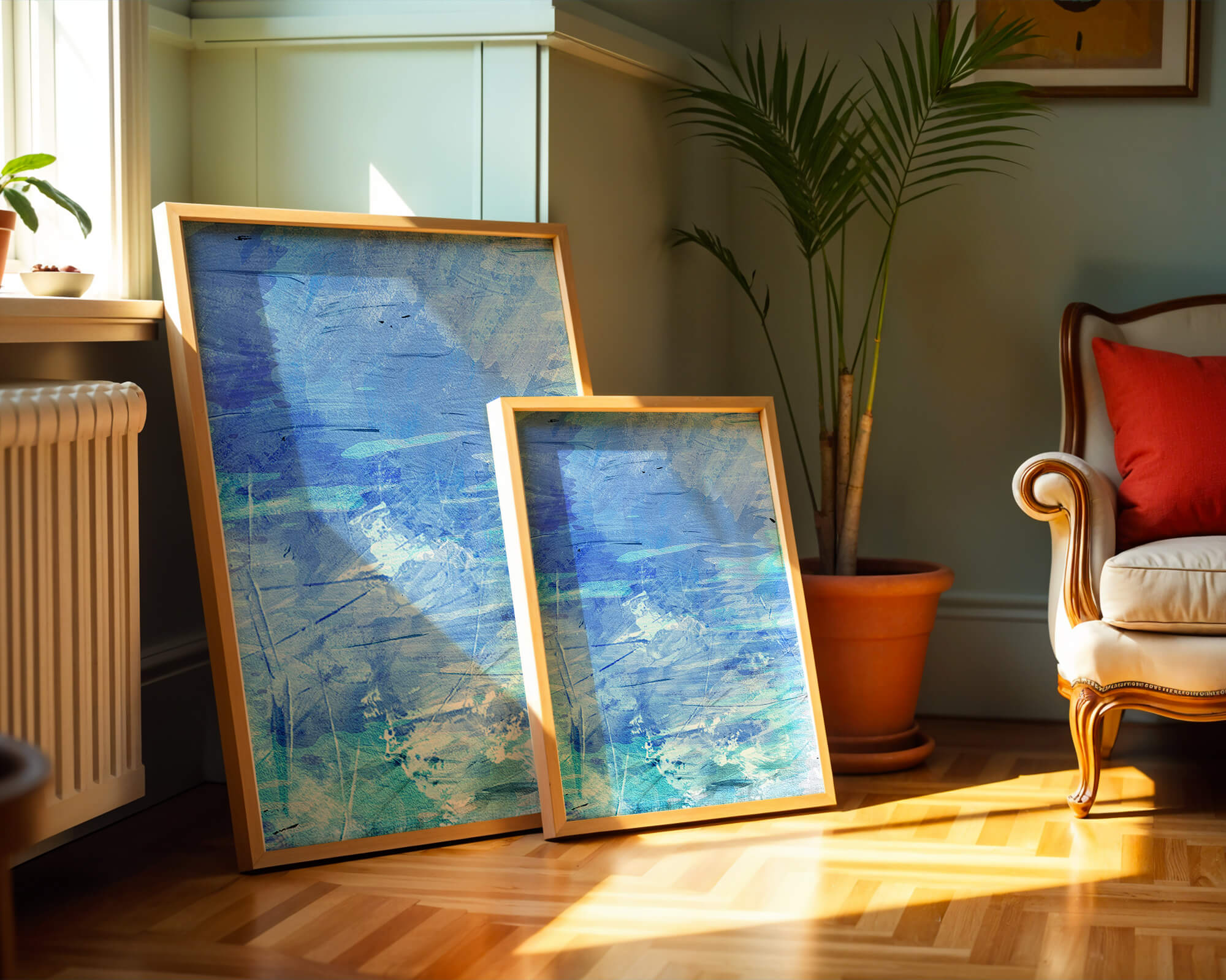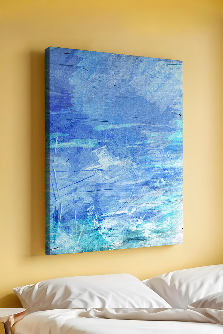 The abstract design offers a versatile piece that can complement various interior styles. From minimalist spaces to bold artistic themes, this artwork provides a captivating point of interest.The varying shades of blue evoke feelings of tranquility and peace, making it an ideal choice for relaxation areas such as living rooms or bedrooms. The texture adds depth, giving the impression of a dynamic, flowing ocean or sky, inviting viewers to immerse themselves in a world of creativity and imagination.| Type |