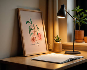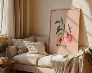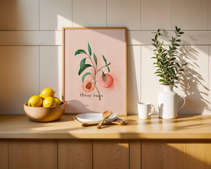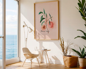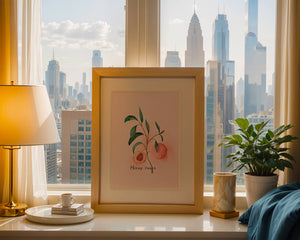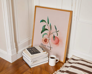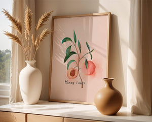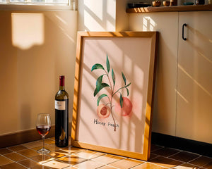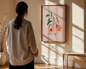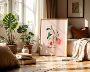 The artwork beautifully illustrates the harmonious blend of nature and art. The soft tones of the peach juxtaposed with vibrant green leaves create a relaxing visual experience, making it an ideal addition to both modern and traditional decor styles. Add this piece to your collection for a sophisticated touch that reflects the serene beauty of nature. Perfect for lovers of botanical art, it brings a refreshing and organic element into your home.| Type |