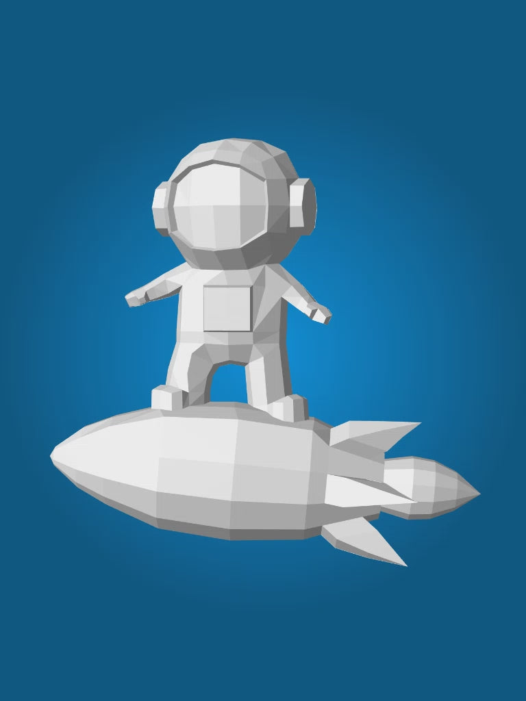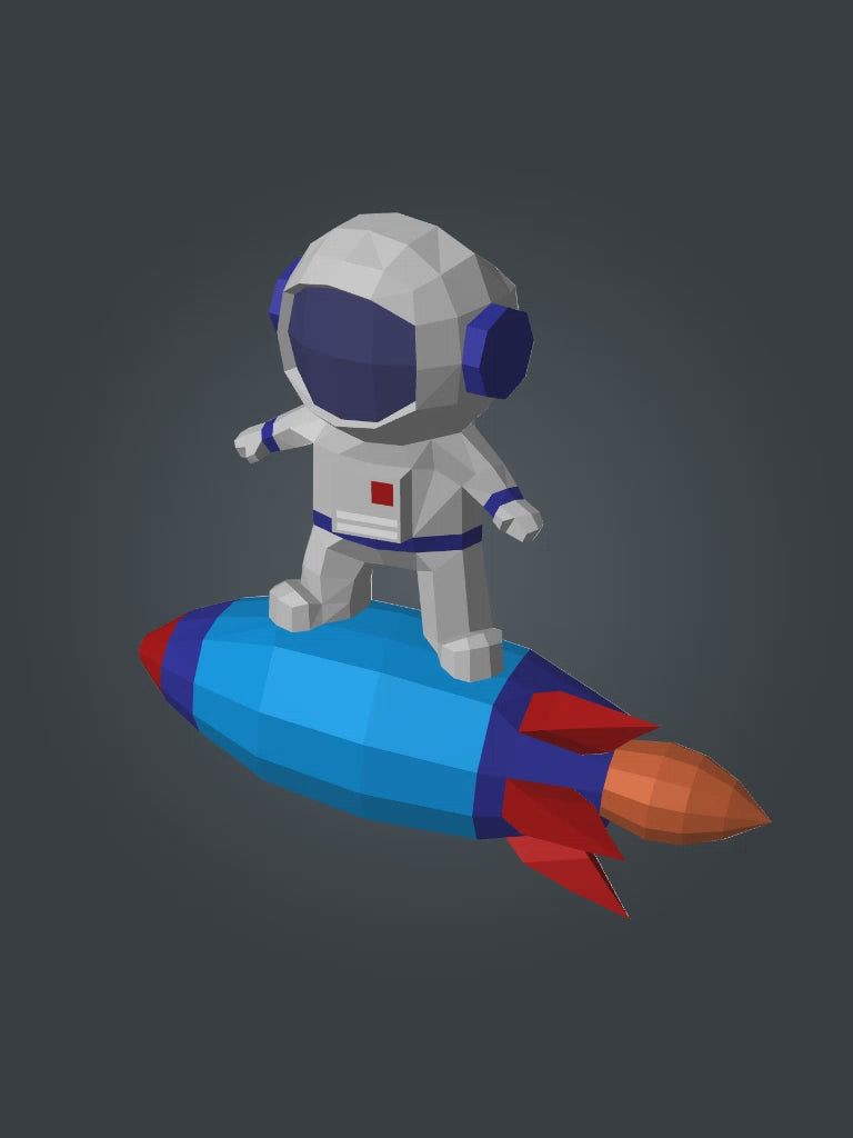 3D small astronaut on rocket papercraft polygonal paper figure 42x32x11 – DIY craft, modern geometric sculpture for wall décor