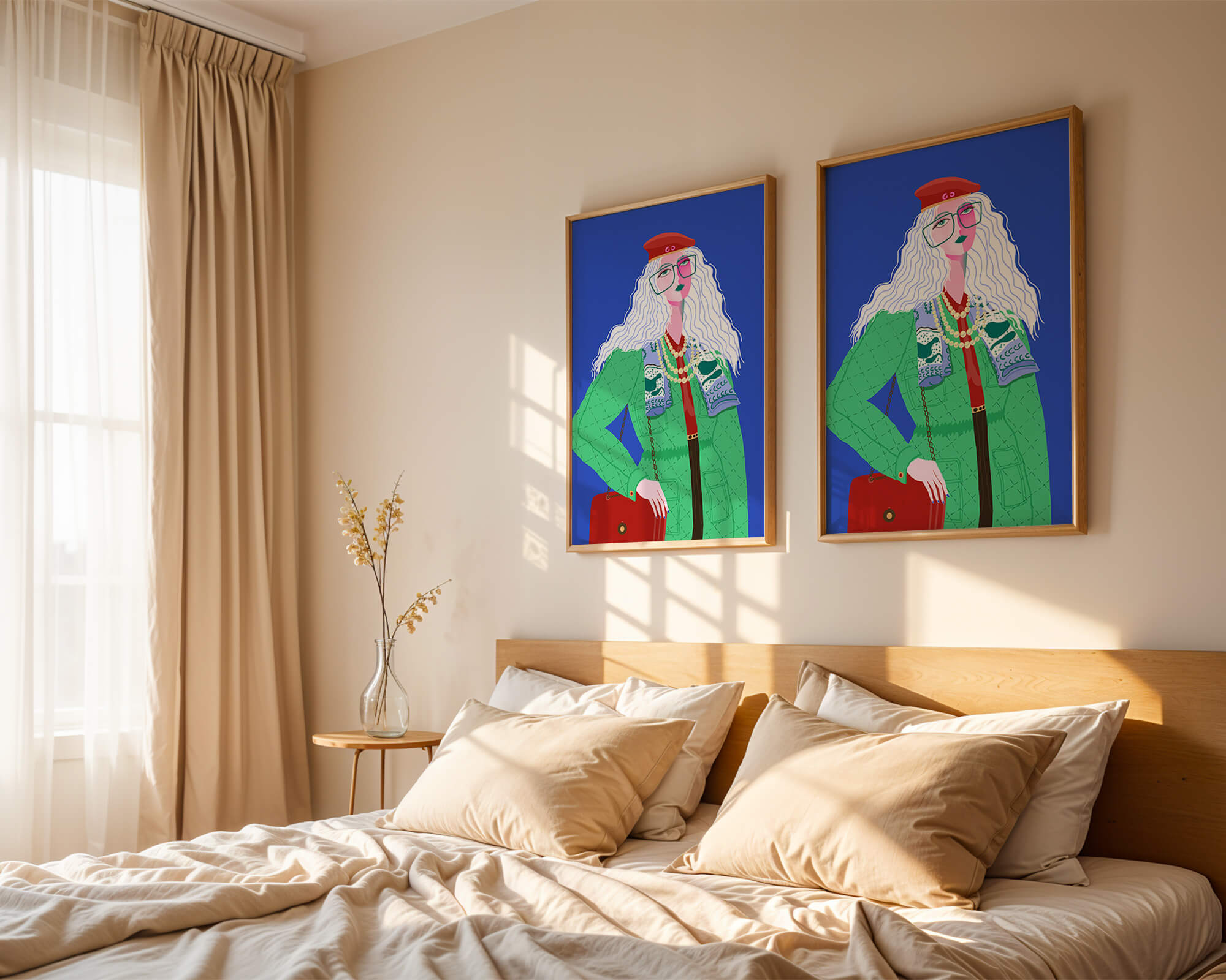 Colorful fashion illustration with striking accessories and vibrant style