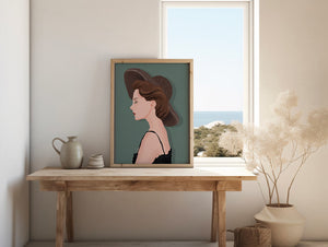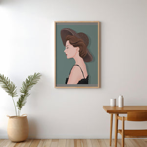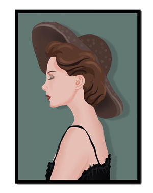 In this artwork, the viewer is invited to appreciate the subtle yet profound elegance embodied by the feminine figure. The woman is portrayed in profile, highlighting her delicate features and poised demeanor. Her hat adds a touch of sophistication, echoing styles reminiscent of classic fashion eras.The color palette is earthy and serene, emphasizing the soft brown hues of the hat and hair. This harmony of colors enhances the overall aesthetic, creating a sense of timeless beauty and grace. Whether for personal inspiration or decorative purposes, this piece is a testament to the enduring charm of classy fashion and elegant presentation.