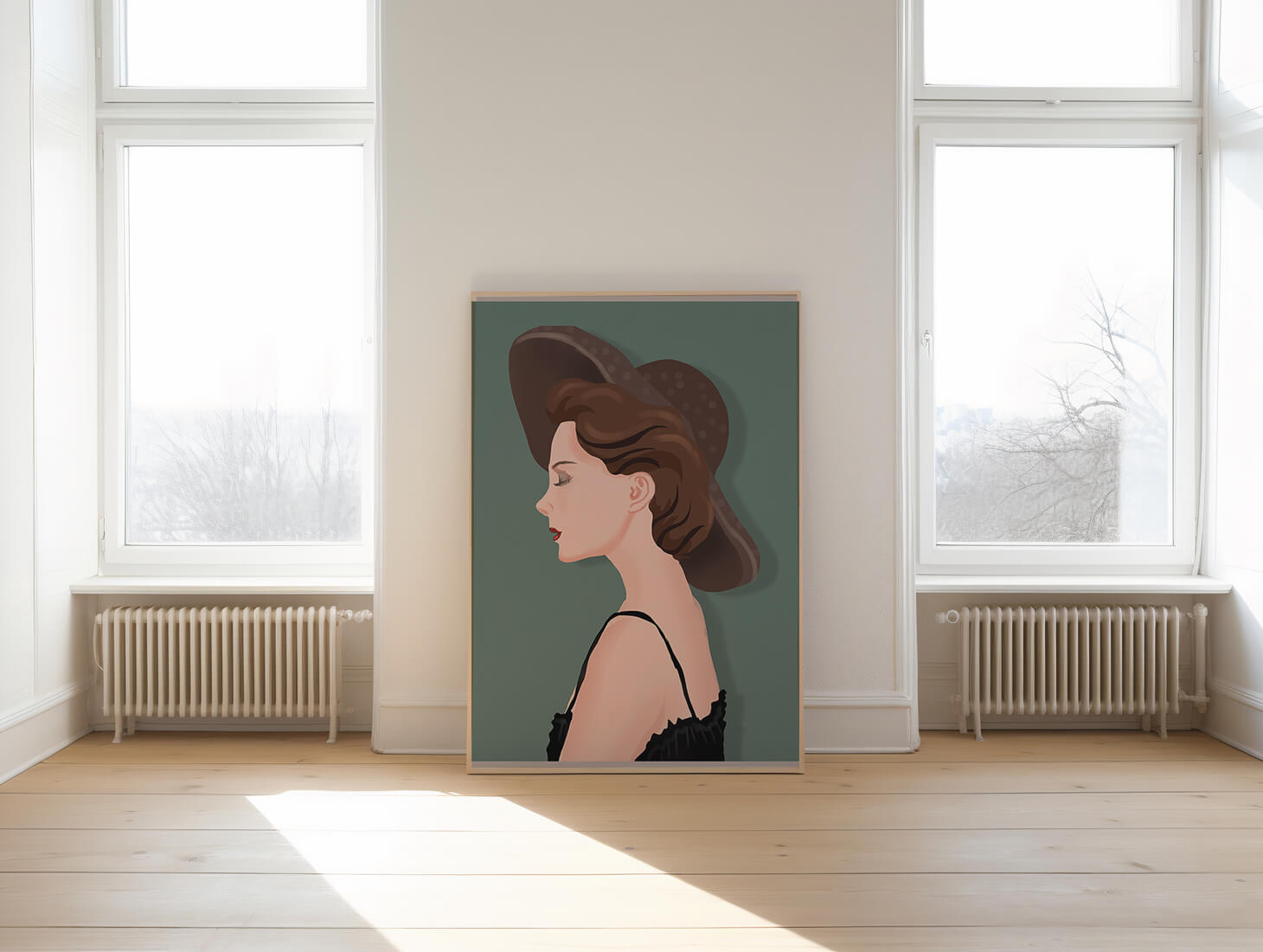 Home Elegant Woman in Profile with Stylish Hat