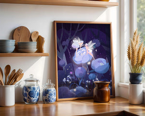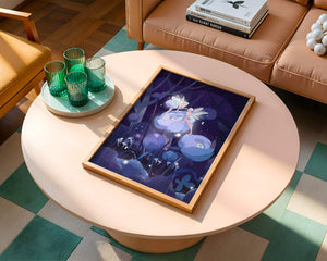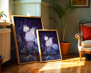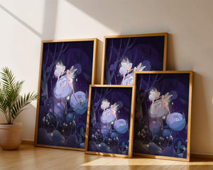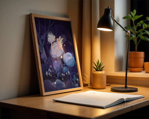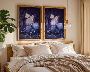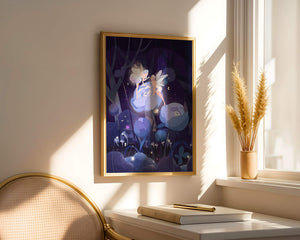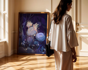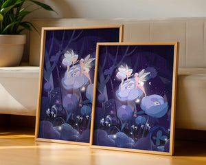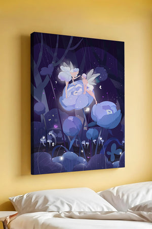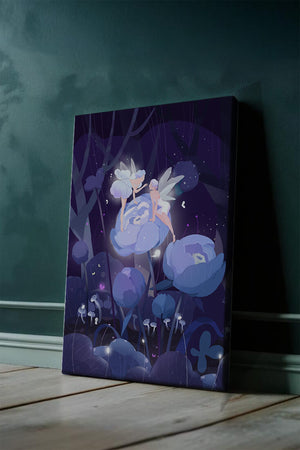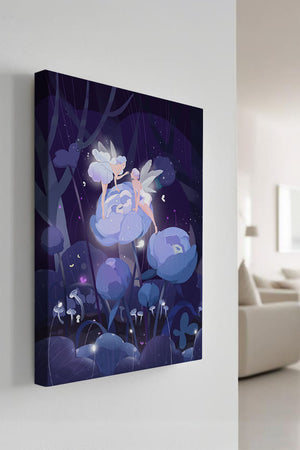 The fairies, with their delicate wings and serene expressions, embody a sense of grace and wonder, bringing life to the nighttime setting. The flowers beneath them, glowing with subtle light, add a layer of magic to the environment, suggesting a world where nature and fantasy intertwine seamlessly.Around them, the forest is alive with luminescent mushrooms and fluttering butterflies, enhancing the dreamlike quality of this art piece. The calm and tranquil atmosphere invites observers to lose themselves in a realm where the ordinary gives way to the extraordinary, illustrating the power of natures beauty and the allure of the fantastical.| Type |