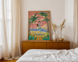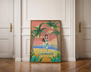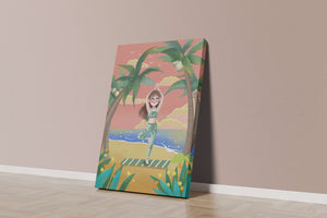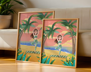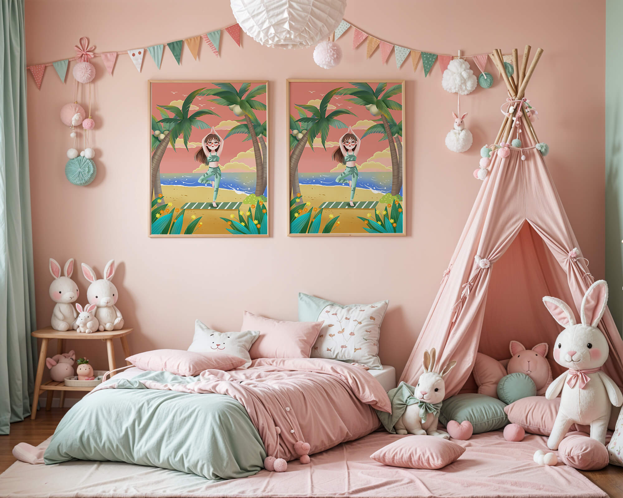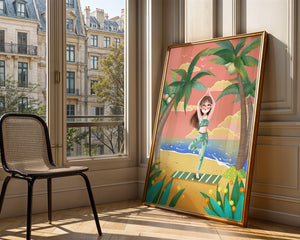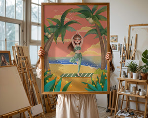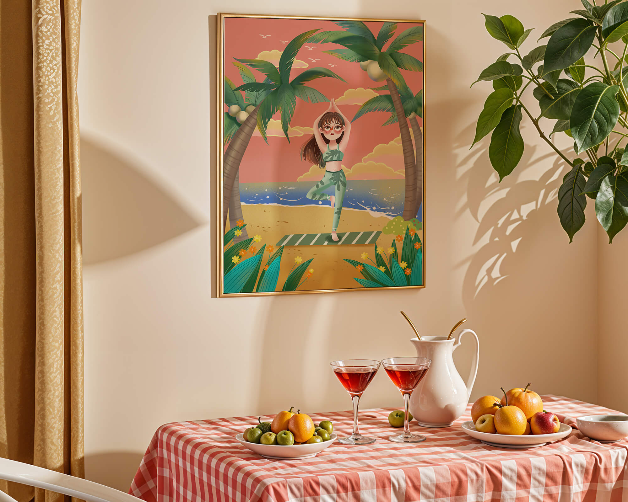 Imagine finding a moment of calm as you stand on the soft golden sand, surrounded by the soothing sounds of the ocean waves lapping gently at the shore. Tall, lush palm trees frame the view, offering a perfect blend of shade and sunlight. This peaceful setting, with its calming pastel sky and gentle breeze, feels like a true paradise.Enhance Your Wellness Journey