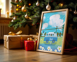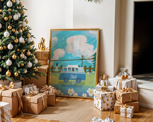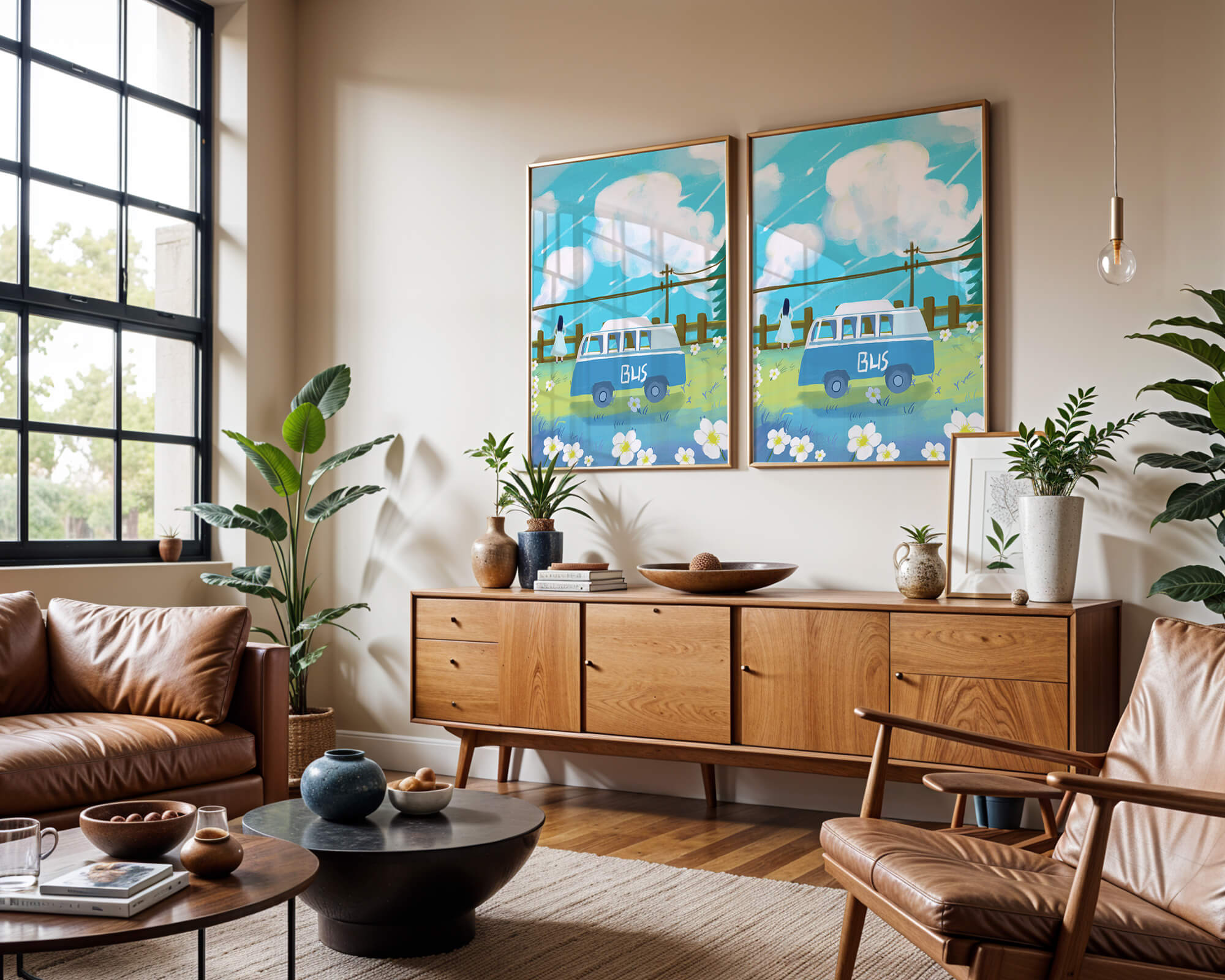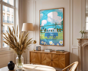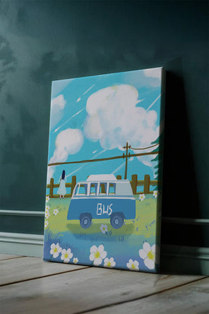 Perfect for those who love to incorporate themes of nature, travel, and tranquility into their spaces, this artwork brings a sense of peace and exploration. Whether for a home or office, it evokes the simplicity and beauty of life on the road and the allure of the countryside.