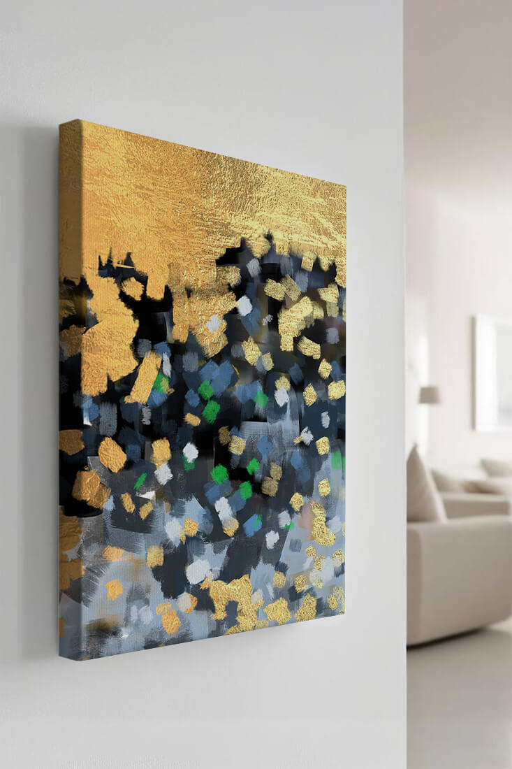 Полосы золота выделяют этот шедевр, создавая богатую текстуру, которая одновременно роскошна и захватывающа. Дерзкие мазки зеленого, синего и белого оттенков, которые разбросаны по холсту, дополняют золотые оттенки. Это взаимодействие цвета и формы вводит динамическое чувство движения, приглашая зрителей погрузиться в его яркий хаос. Искусство является отличным выбором для современных интерьеров, как в домашней, так и в профессиональной обстановке. Его яркий вид может превратить гостиную в оживленное и стильное пространство или добавить элегантности в офис, способствуя атмосфере творчества и вдохновения. Будь то в качестве центральной точки или изысканного фона, это произведение искусства обязательно улучшит любой декор своей элегантностью и современностью.| Тип |