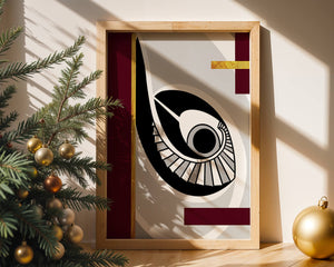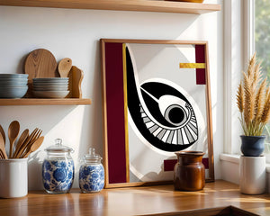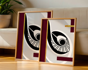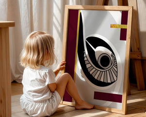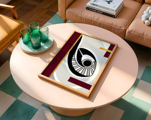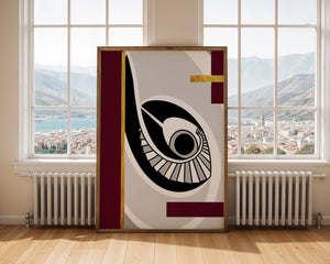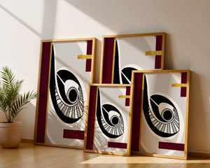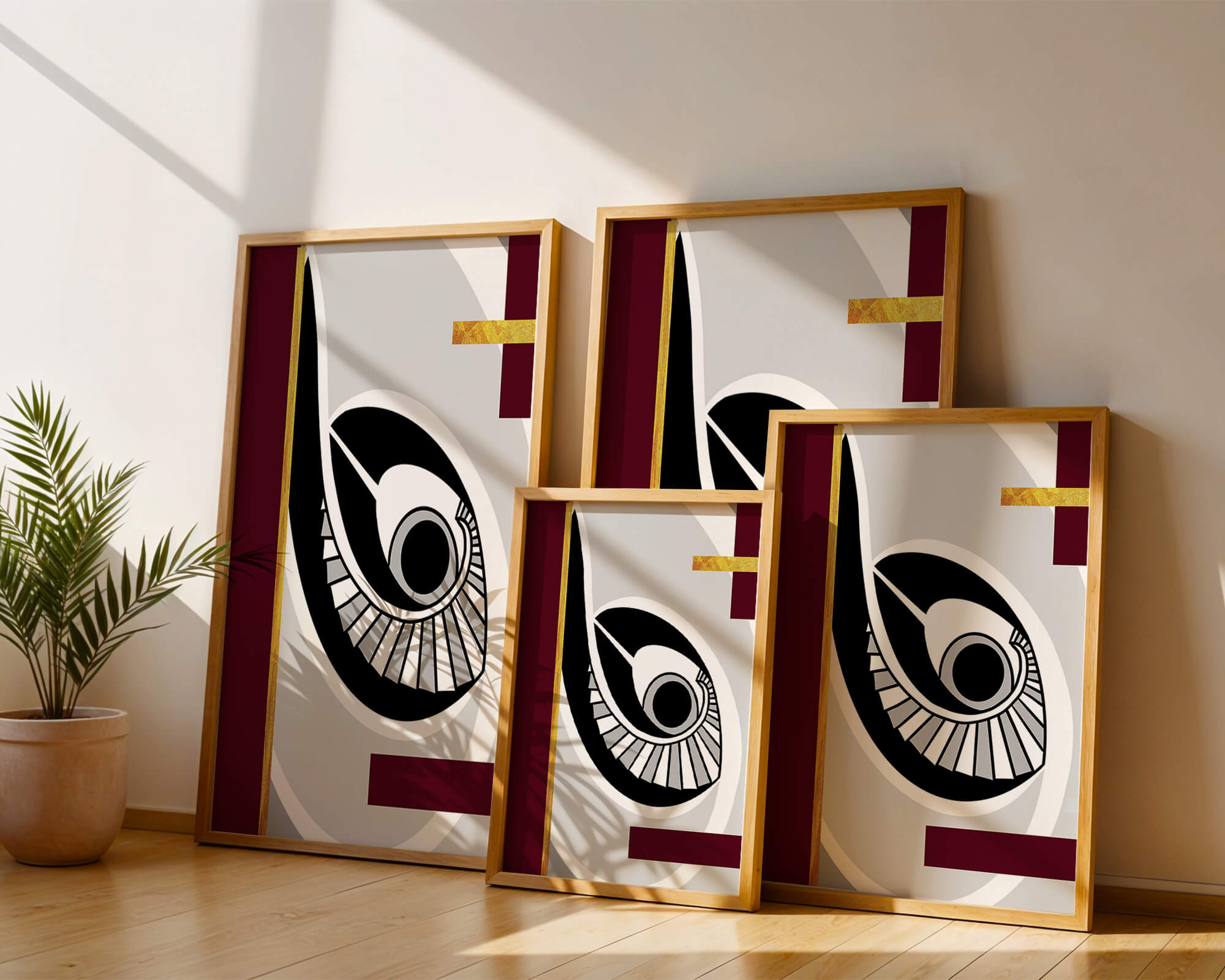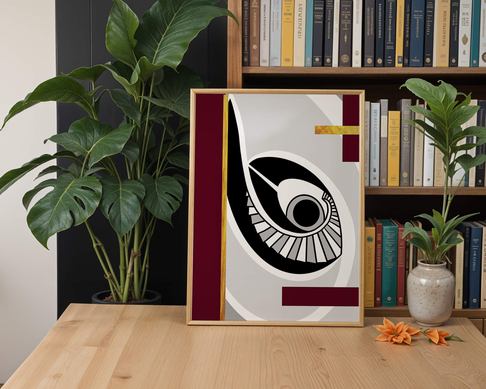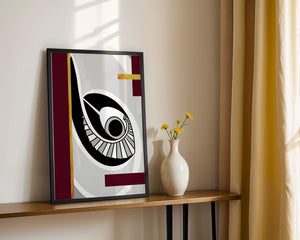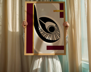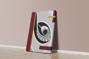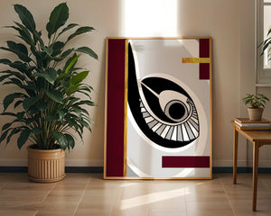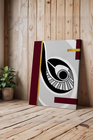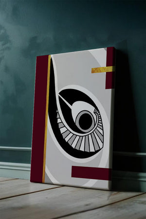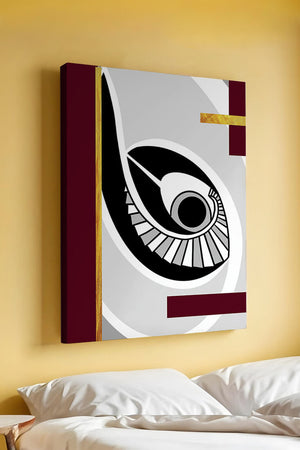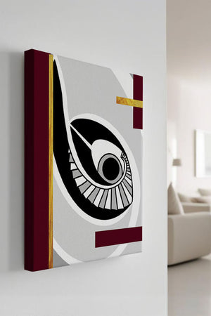 Это интригующее произведение сочетает элементы геометрической точности и абстрактного творчества, формируя визуально впечатляющую композицию. Центральный мотив глаза, выполненный в черно-белых тонах, окружен лестничными узорами, которые намекают на движение и глубину. Сильные линии и изгибы создают динамичный визуальный опыт, напоминающий архитектурные дизайны. Использование глубокого красного и золотого оттенков добавляет роскоши и утонченности, делая произведение подходящим для различных интерьеров, таких как гостиные, спальни или даже офисные помещения. Богатая цветовая палитра гарантирует, что это произведение станет центральным элементом, добавляя элегантность и современный стиль в любую комнату. Умелое сочетание симметрии и контраста привлекает тех, кто ценит современное искусство и уникальные элементы декора.| Тип |