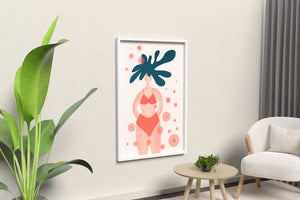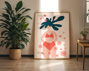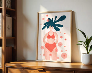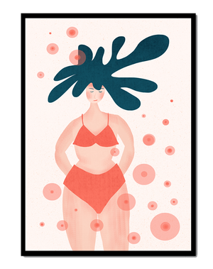 Abstrakte Illustration einer Frau in Badebekleidung mit kreativem Haardesign
