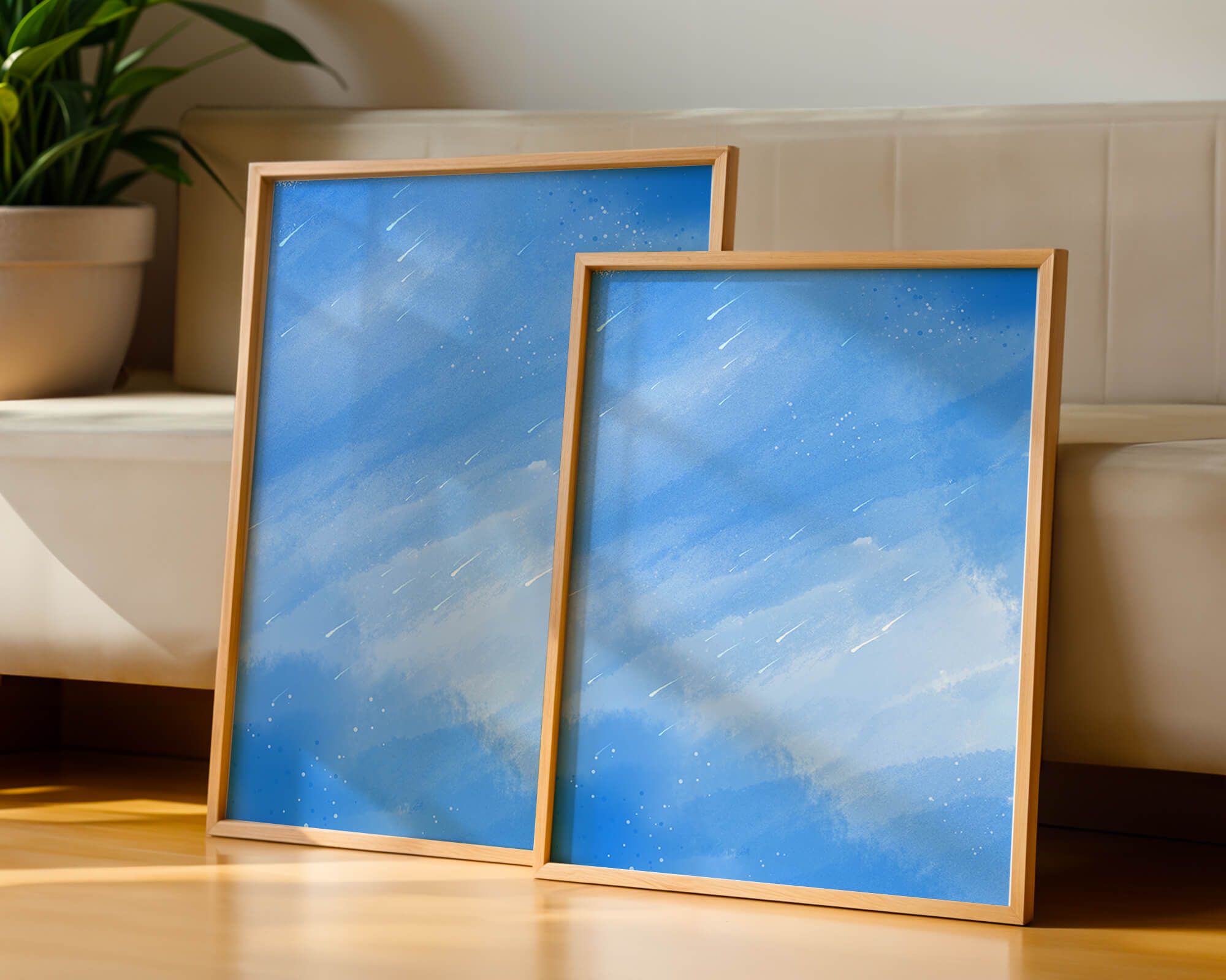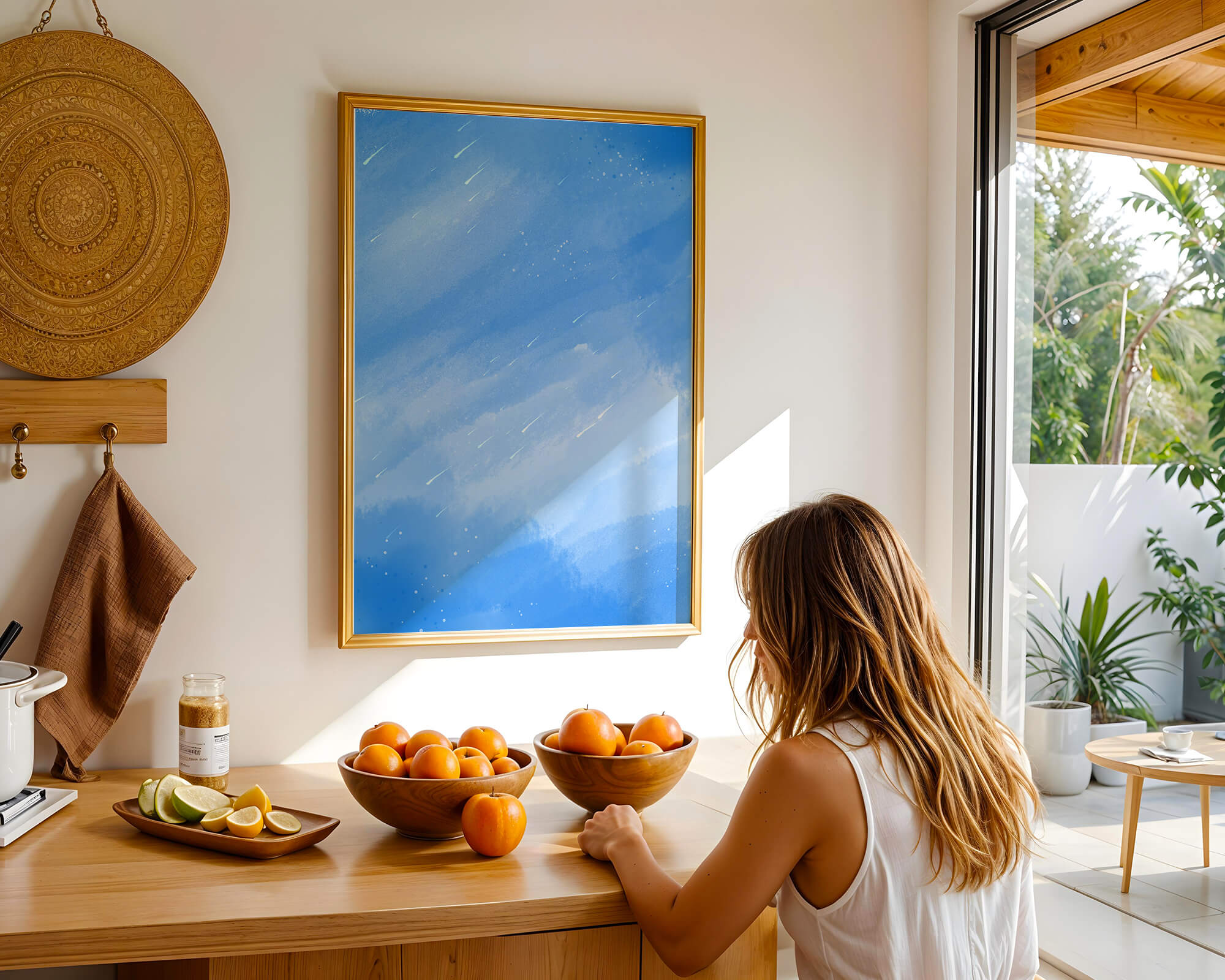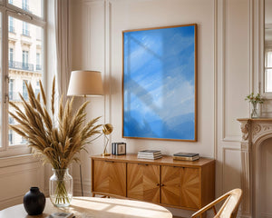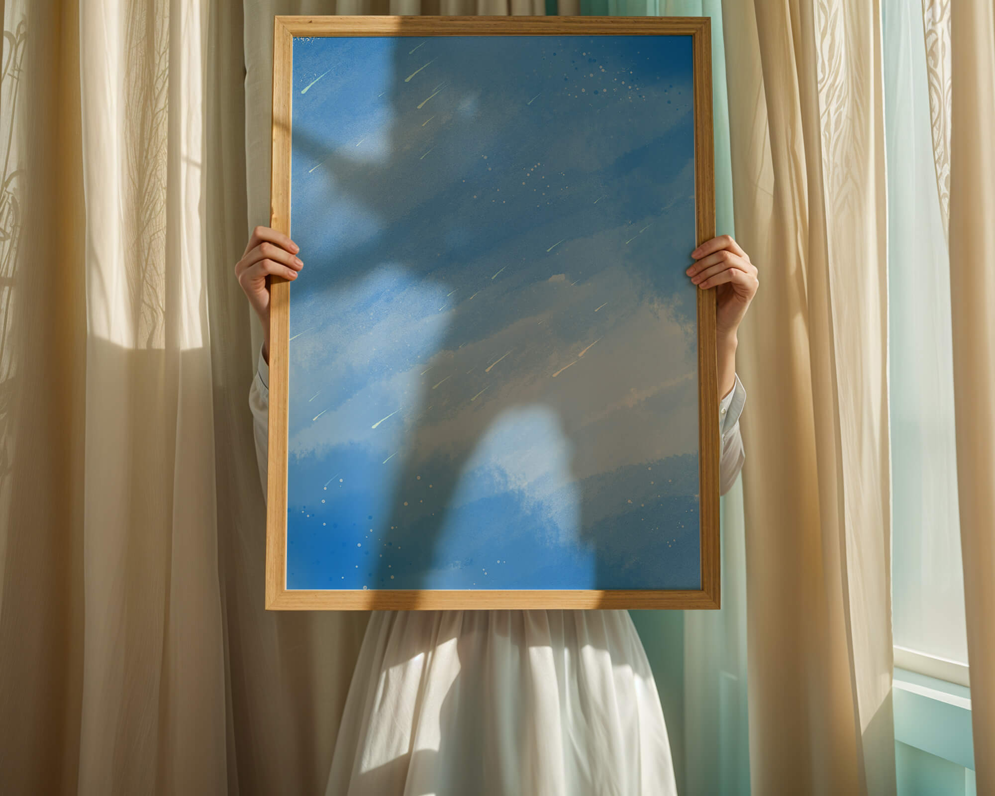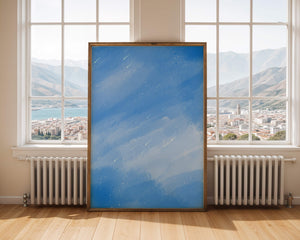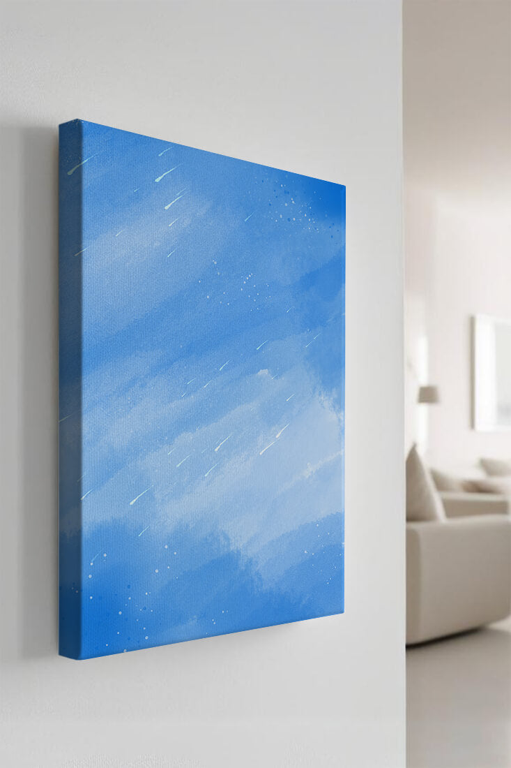 The composition primarily features varying shades of blue, achieved through smooth watercolor techniques. The addition of light streaks and small dots subtly enhances the visual texture, making it both eye-catching and soothing. This style is ideal for creating peaceful settings in both personal and professional spaces.Watercolor art naturally brings a fluid and organic feel to any design. This piece, with its soft colors and delicate patterns, adds a touch of elegance and grace. Perfect for those looking to incorporate a sense of calm and minimalism into their environment, it seamlessly fits with modern art décor and enhances the overall ambiance.| Тип |