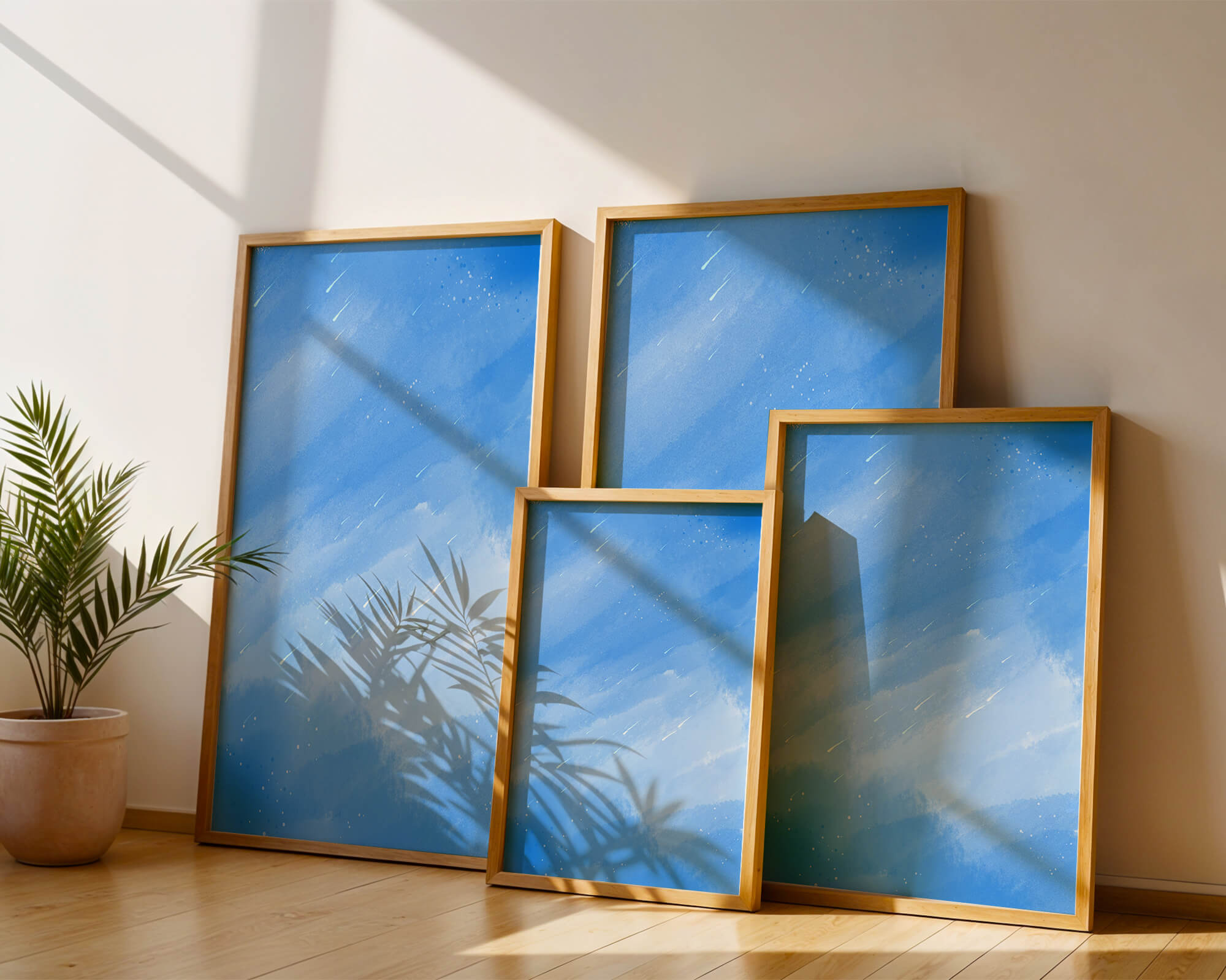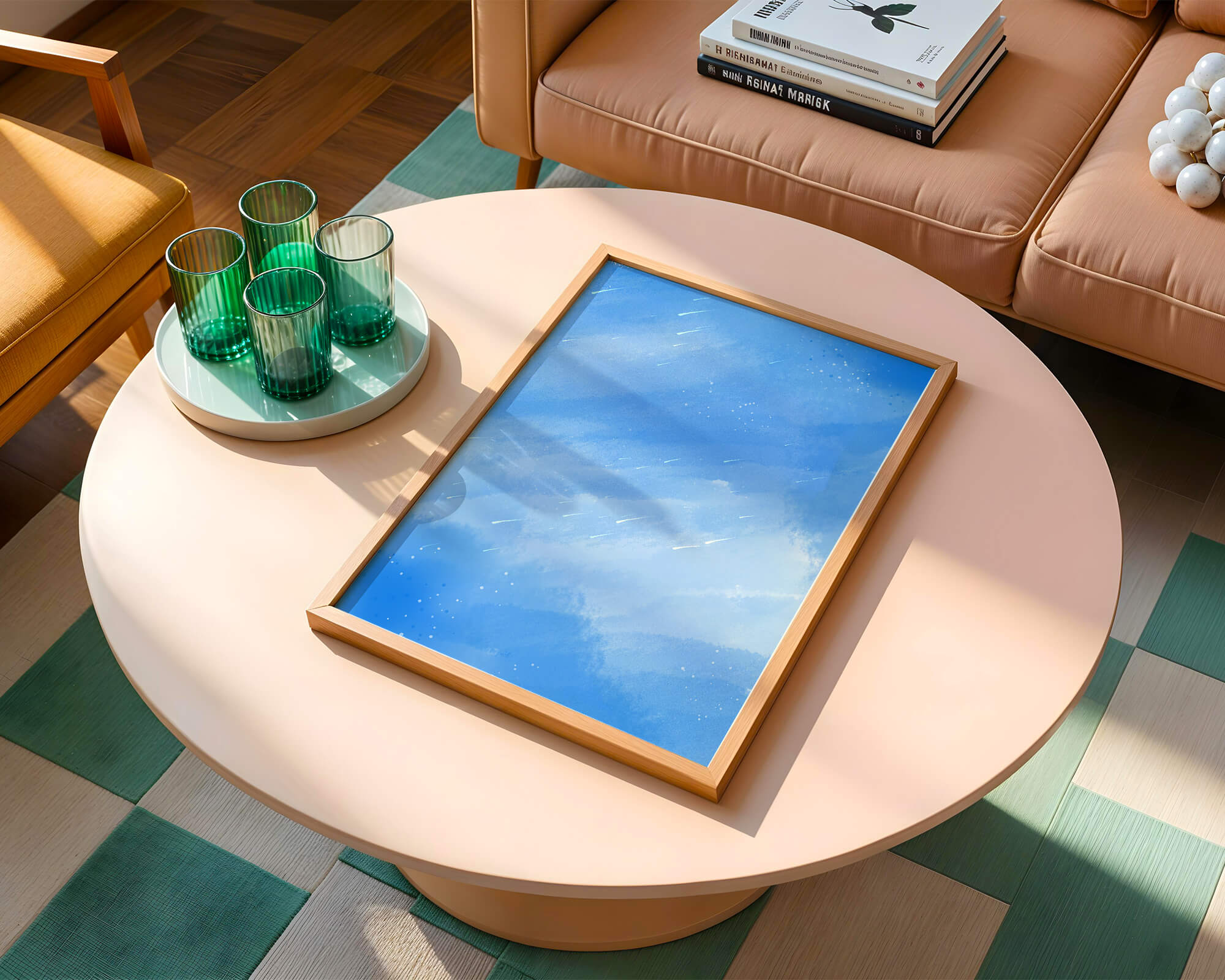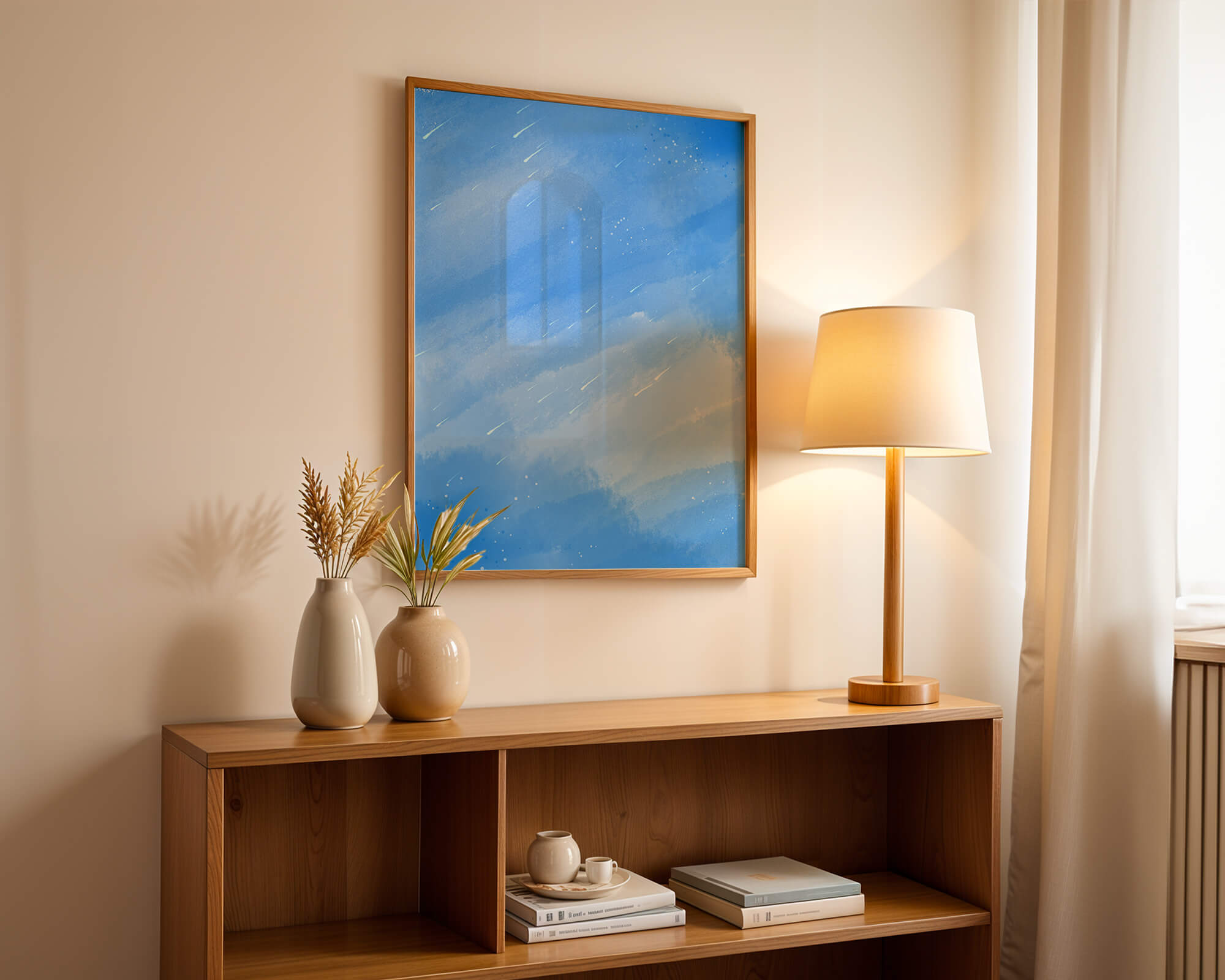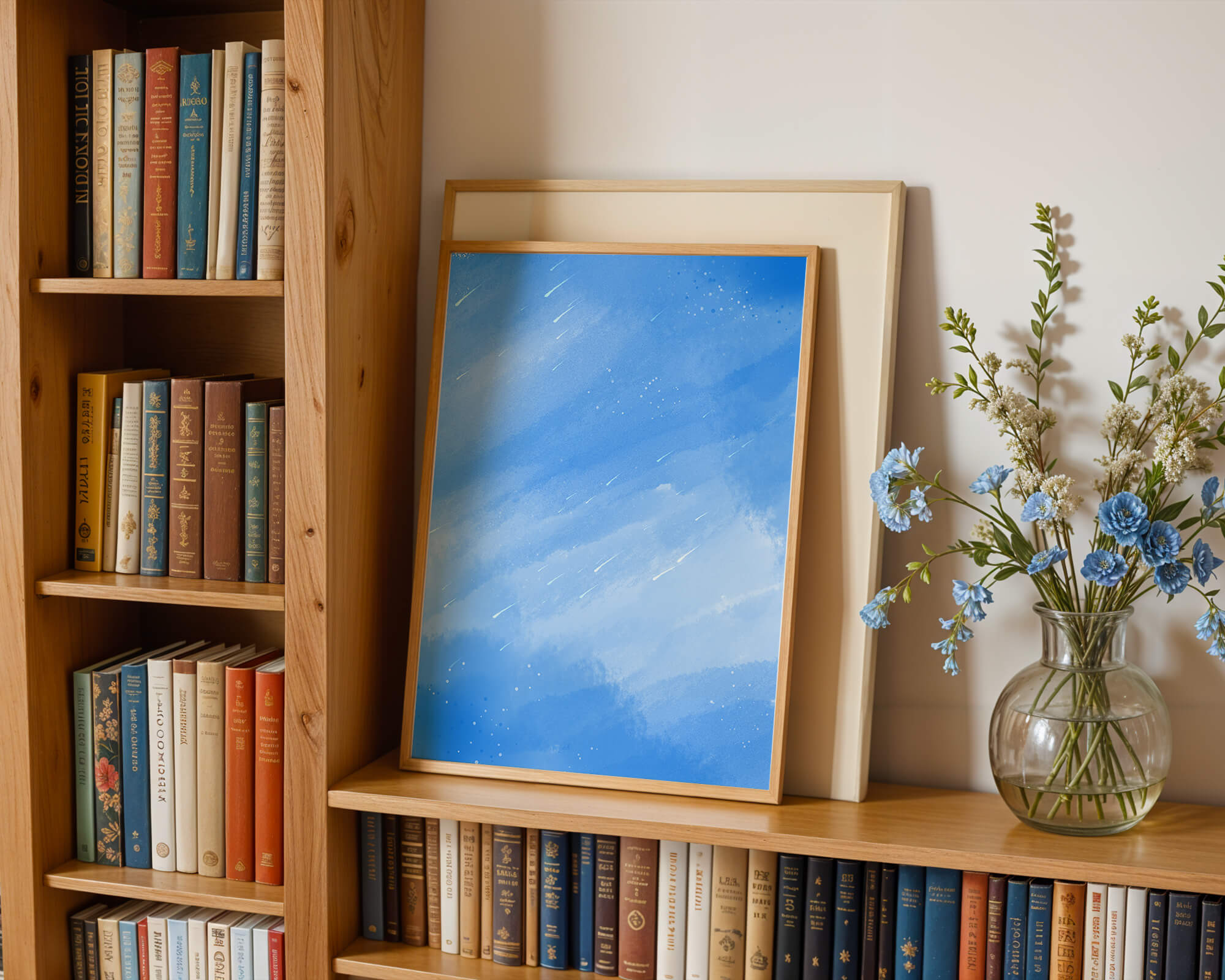 The composition primarily features varying shades of blue, achieved through smooth watercolor techniques. The addition of light streaks and small dots subtly enhances the visual texture, making it both eye-catching and soothing. This style is ideal for creating peaceful settings in both personal and professional spaces.Watercolor art naturally brings a fluid and organic feel to any design. This piece, with its soft colors and delicate patterns, adds a touch of elegance and grace. Perfect for those looking to incorporate a sense of calm and minimalism into their environment, it seamlessly fits with modern art décor and enhances the overall ambiance.| Тип |