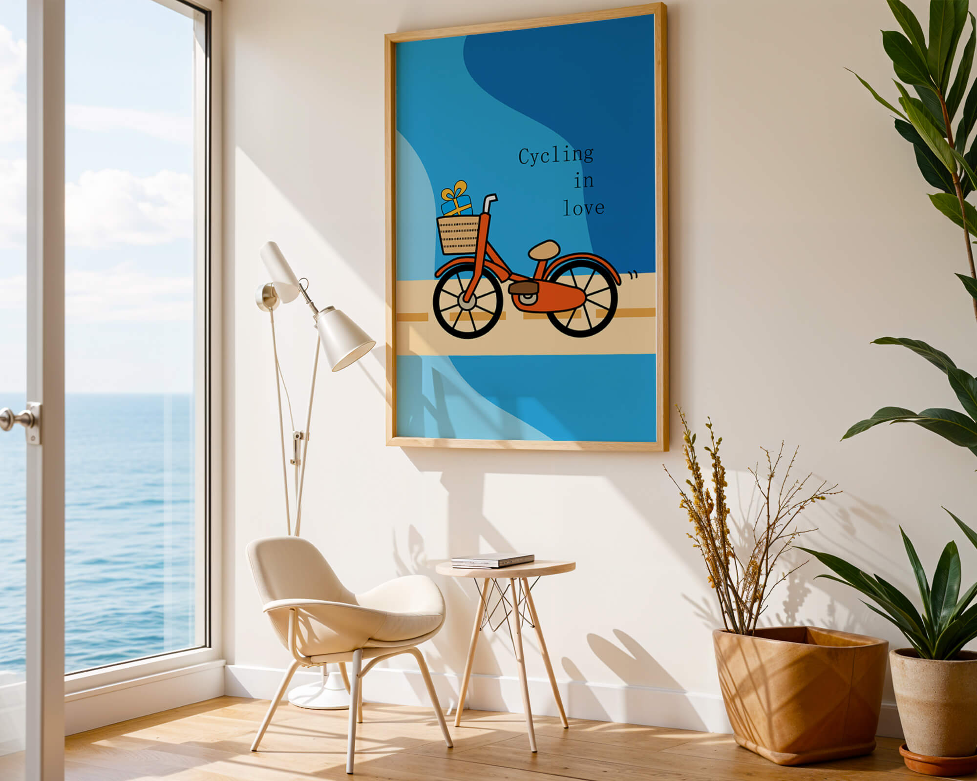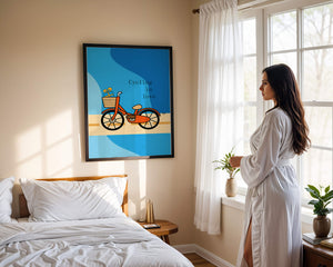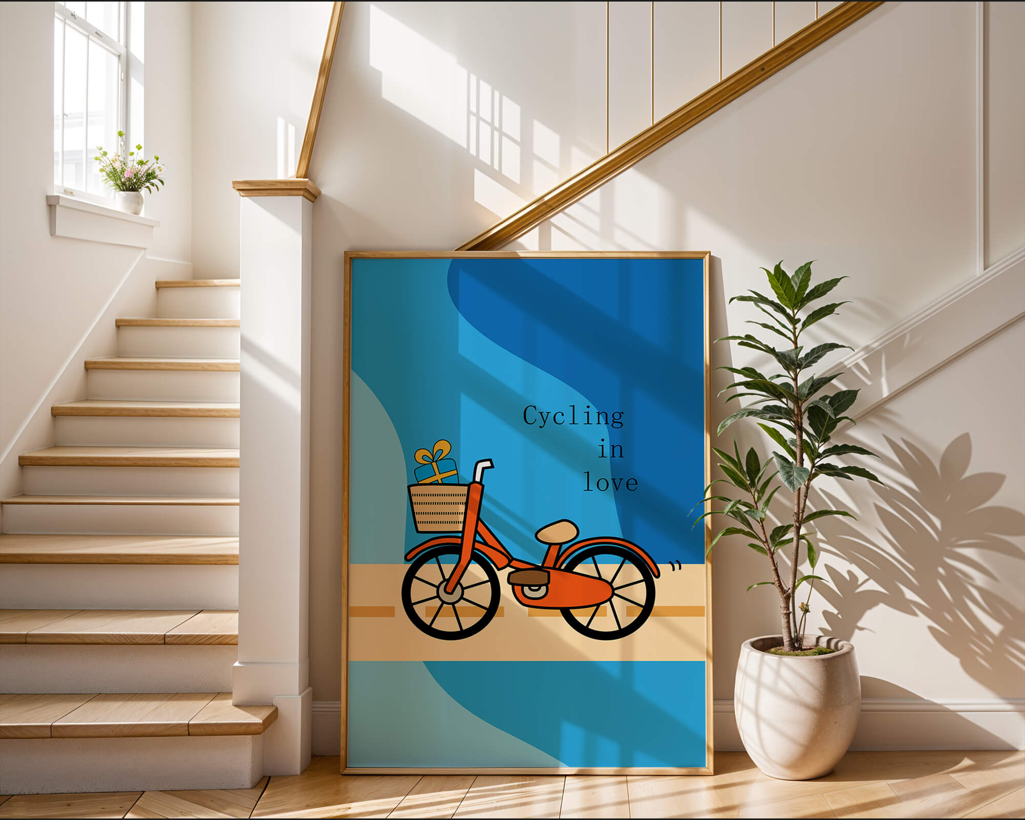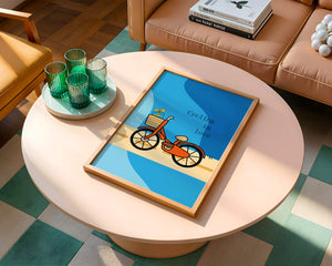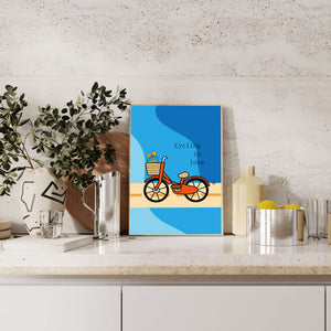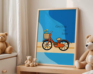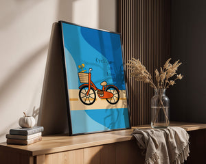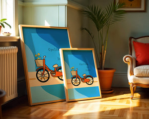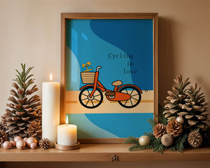 Эта восхитительная иллюстрация передает сущность радости и приключения с оттенком романтики. Оранжевый велосипед, находящийся в центре внимания, несет в своей корзине очаровательно упакованный подарок, символизируя путешествие, полное сюрпризов и счастья. Синий фон обеспечивает спокойный и привлекательный контраст, подчёркивая яркость велосипеда. Игривый и современный дизайн делает это изображение идеальным для различных интерьеров, от детских комнат до современных жилых помещений. Его яркие цвета и причудливый характер вызывают чувство ностальгии и веселья, что делает его отличным выбором для тех, кто хочет добавить немного радости и креативности в свою окружающую среду.| Тип |