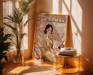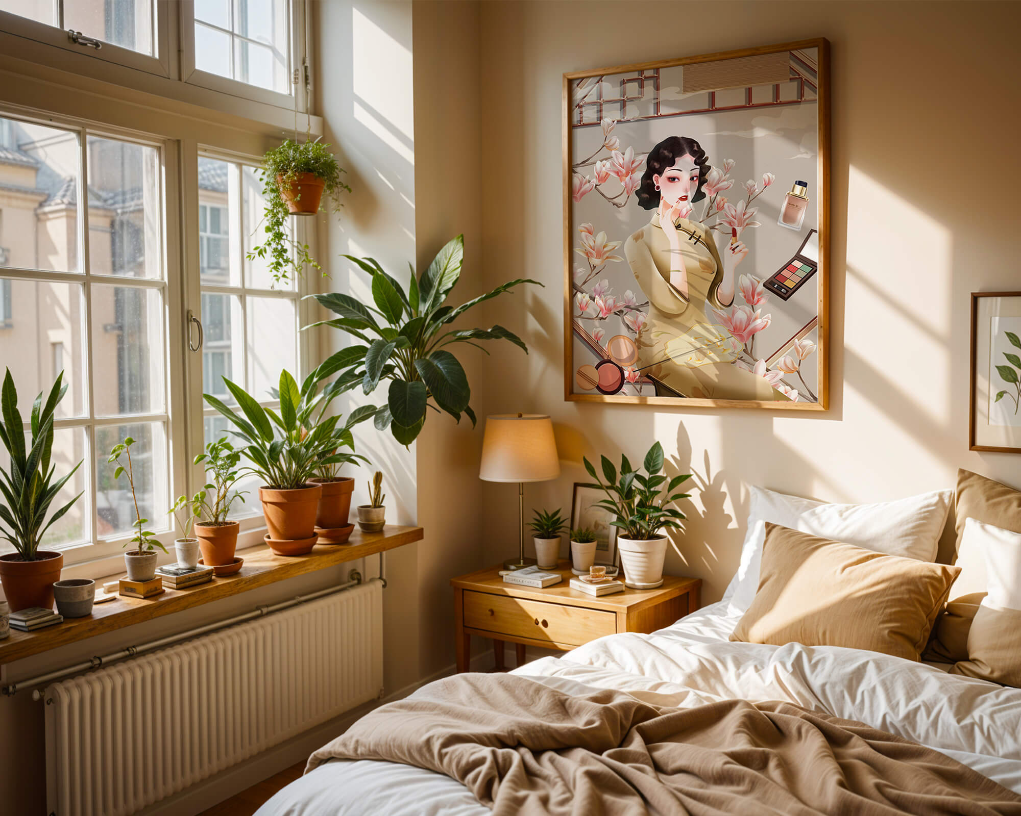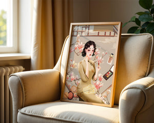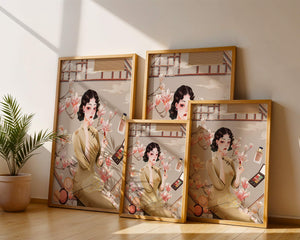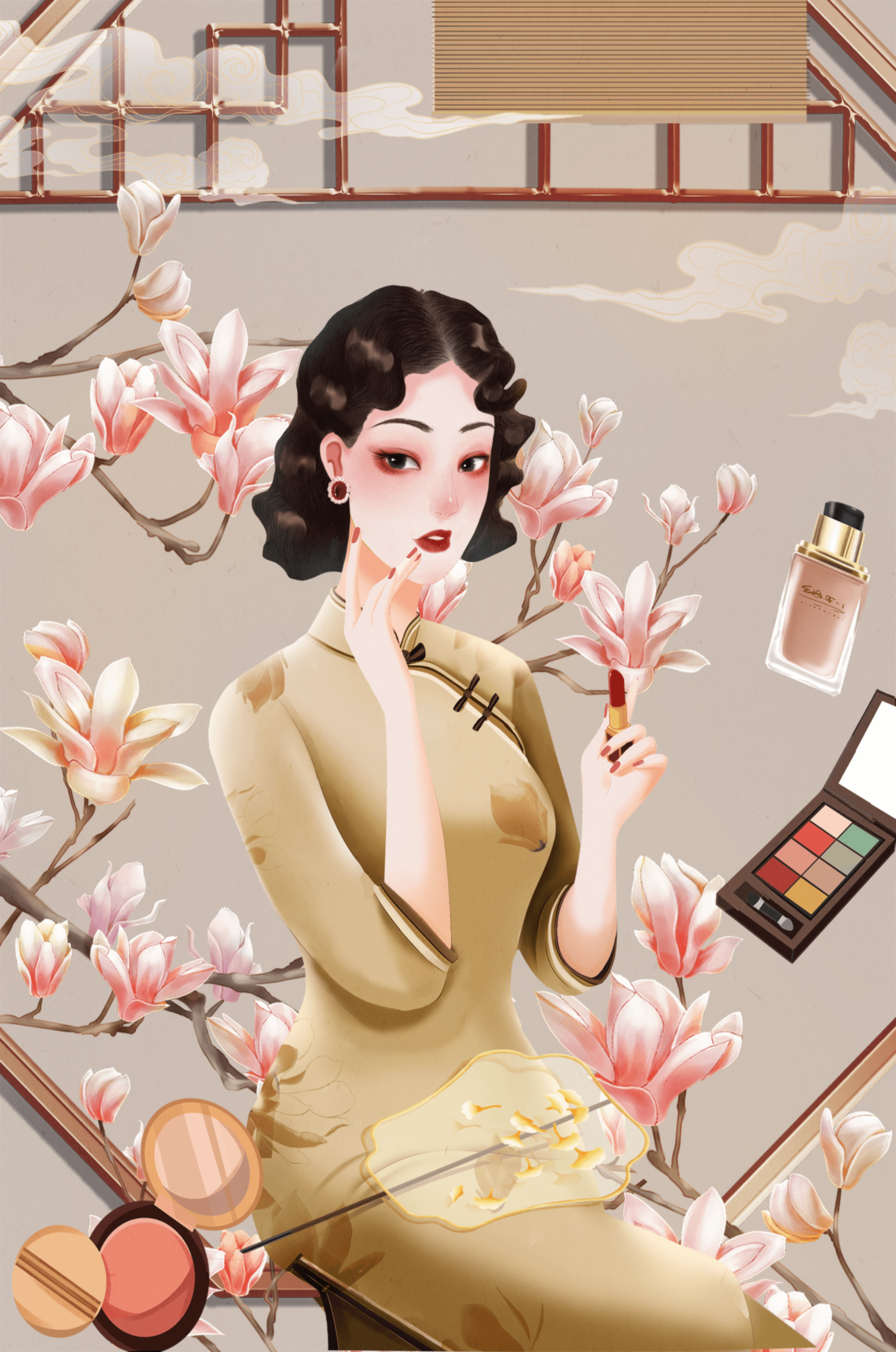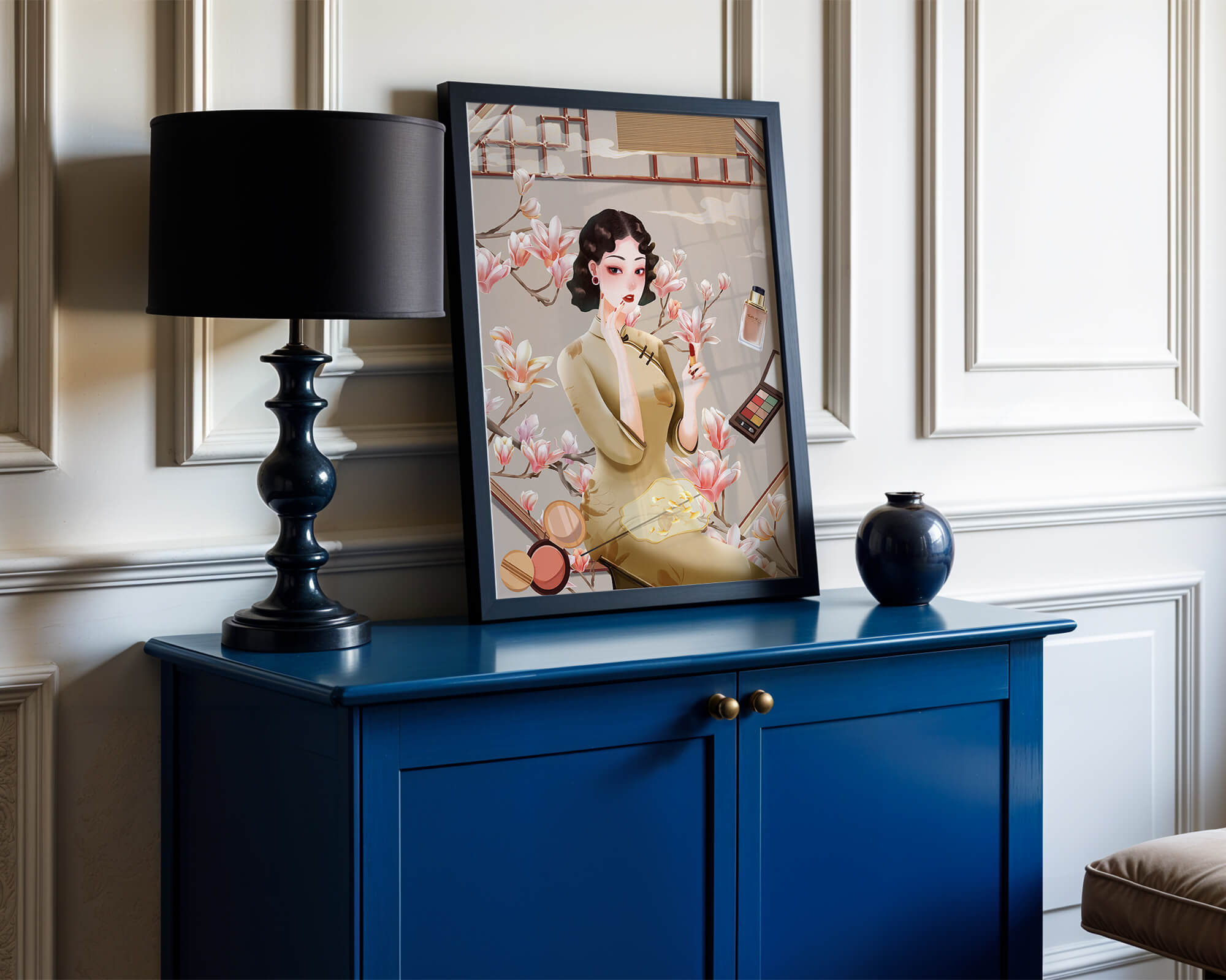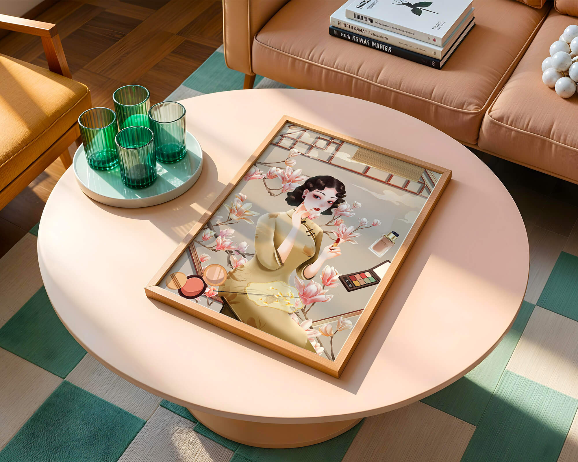Изображение захватывает спокойную грацию женщины, наносящей макияж, окруженной мягкими оттенками цветущей магнолии. Ее наряд и нежный цветочный фон вызывают ощущение вневременной элегантности, отражая как культурную, так и эстетическую красоту. Палитра и губная помада намекают на тонкий гламур, дополняя ее сдержанное обаяние.Иллюстрация безупречно объединяет художественное самовыражение с элементами природы и красоты, создавая визуально захватывающую сцену. Нежное сочетание пастельных тонов и детализированных черт приглашает зрителей оценить как художественность, так и природное обаяние, присутствующие в изображении.| Тип |