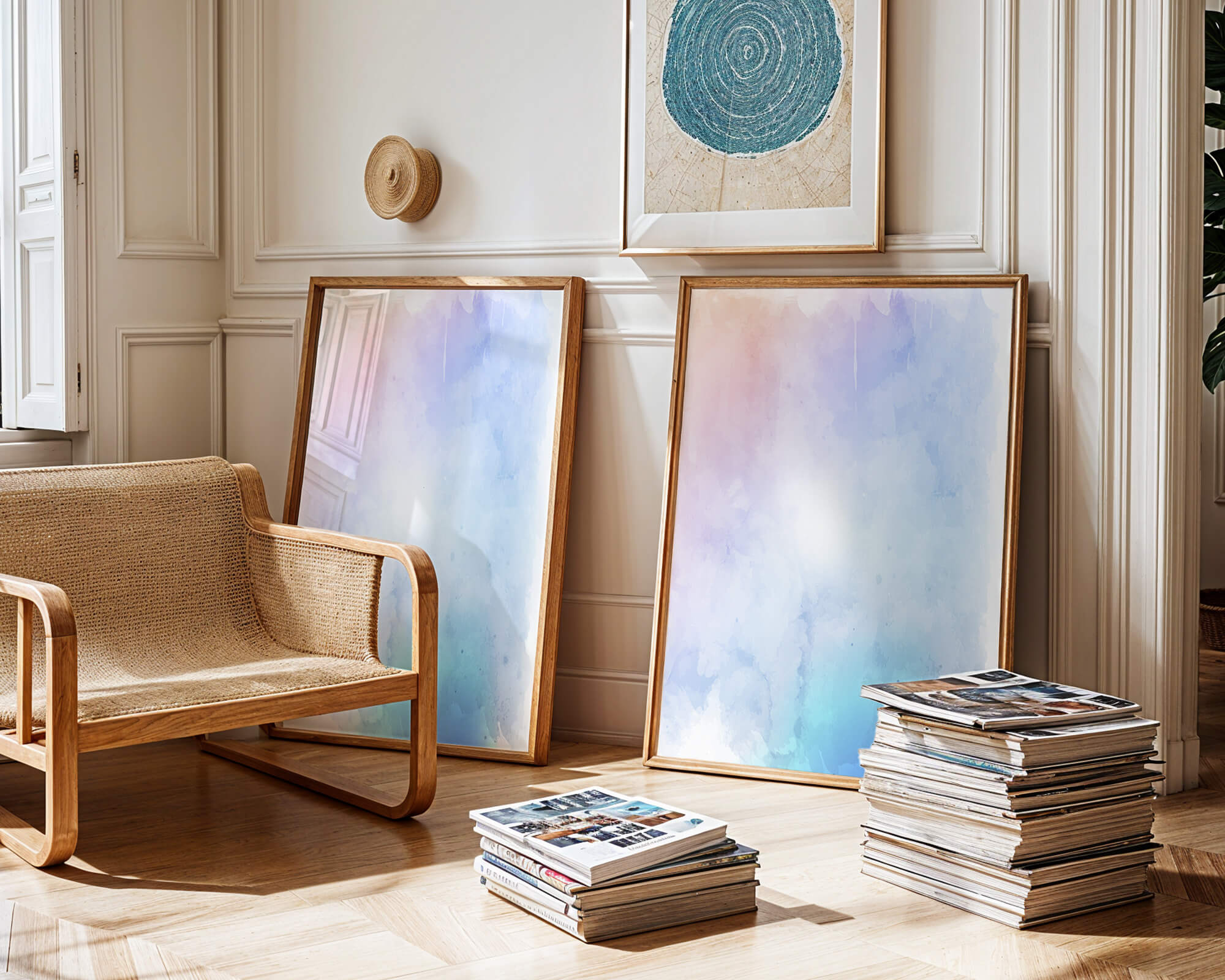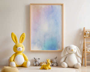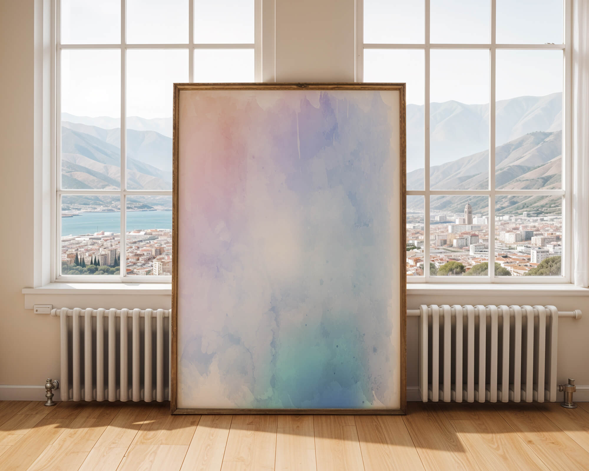 Это изображение изображает успокаивающий акварельный градиент пастельных тонов с мягкими оттенками синего, фиолетового и розового. Мягкое течение и текстура создают атмосферу спокойствия, идеально подходящую для придания любому пространству нотки умиротворения.