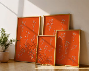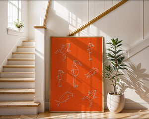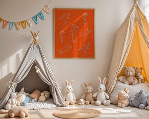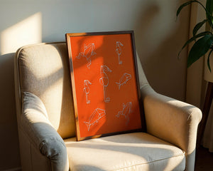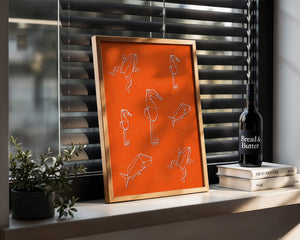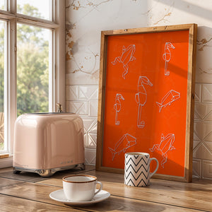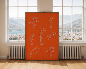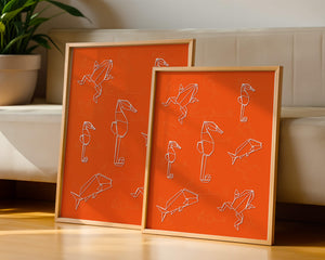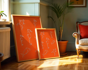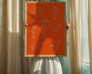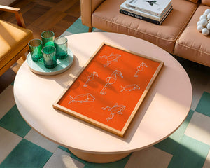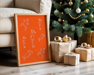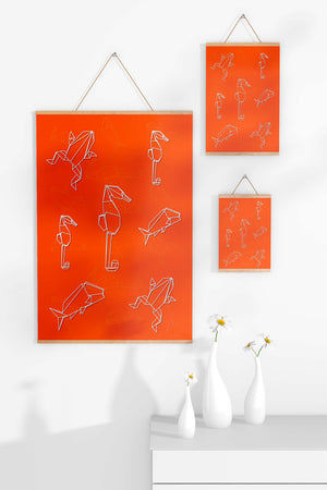 Яркий оранжевый фон подчеркивает четкие белые линии геометрических фигур животных, создавая динамичный и привлекающий внимание дизайн. Изображенные животные, такие как морские коньки и лягушки, предстают как сложные линейные композиции, которые одновременно современные и игривые. Этот стиль напоминает оригами, с острыми углами и четкими формами, оживляющими каждое существо. Эти дизайны идеально подходят для добавления нотки причудливости и креативности в любое пространство. Прекрасно подходят как для детских комнат, так и для жилых зон, их яркая цветовая гамма и абстрактное представление предлагают современный взгляд на традиционные темы животных. Независимо от того, отображаются ли они как настенное искусство или интегрированы в более крупные декор схемы, это изображение вдохновляет на творческое восприятие водной тематики.| Тип |