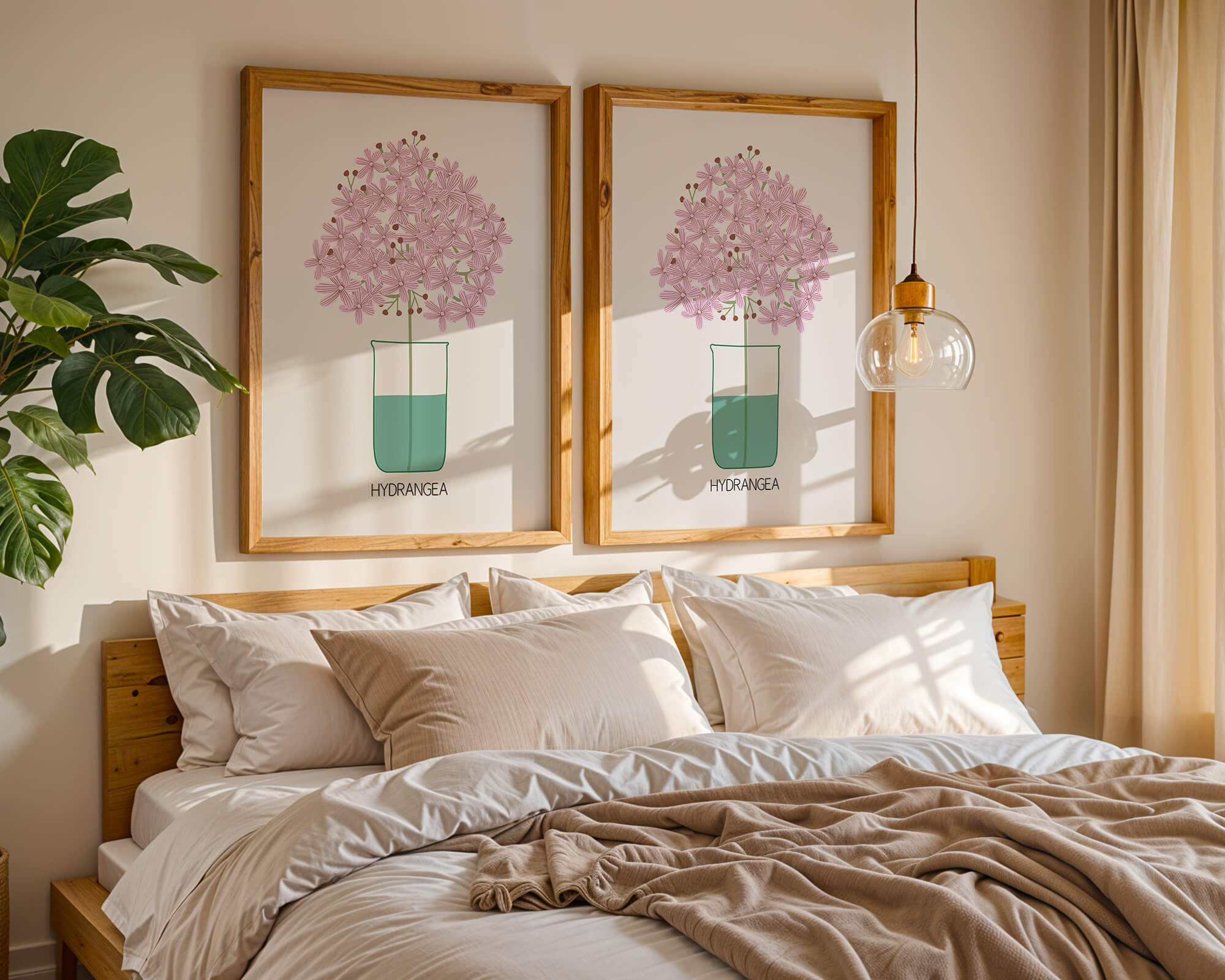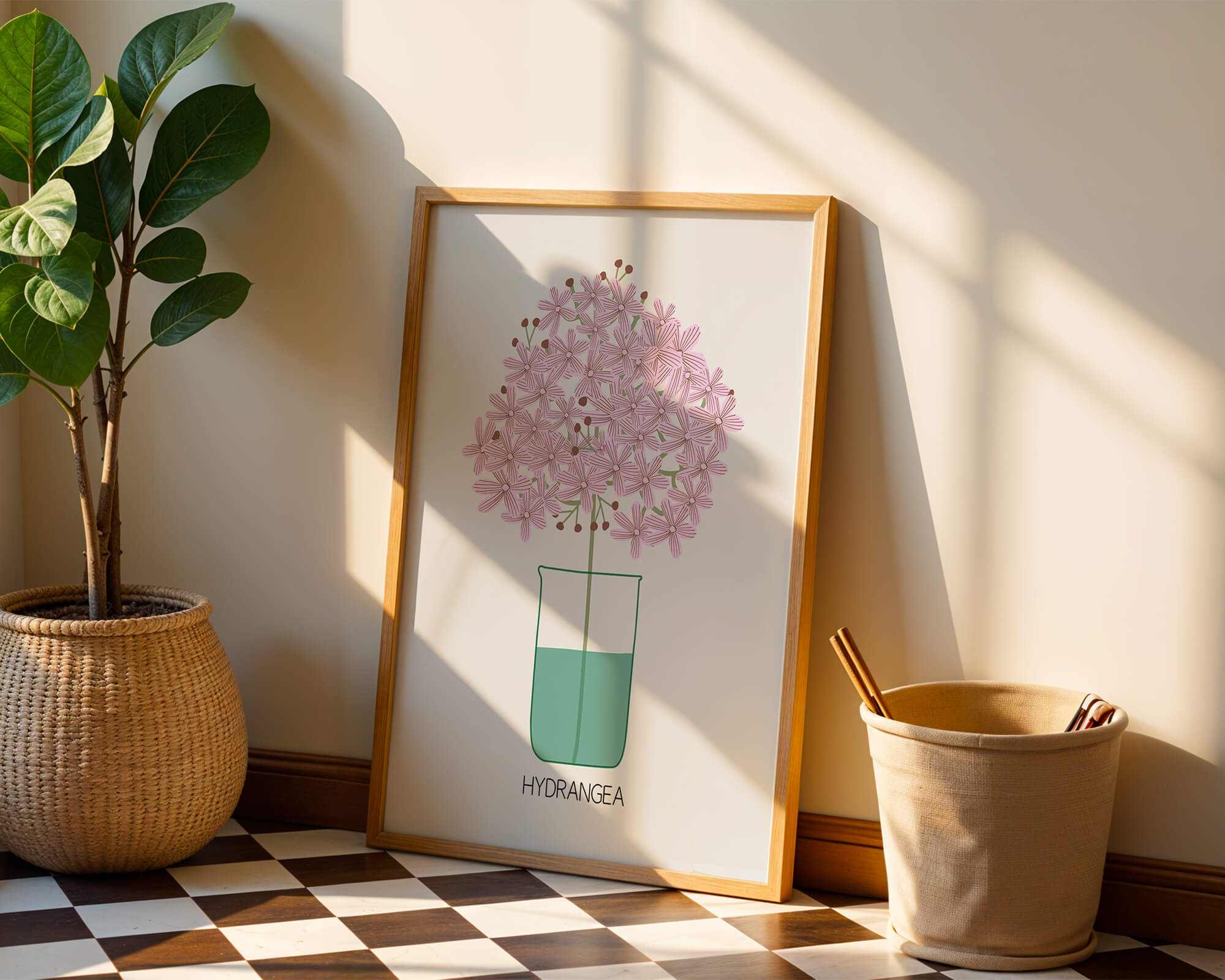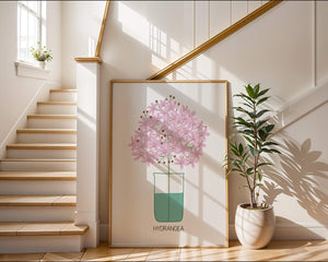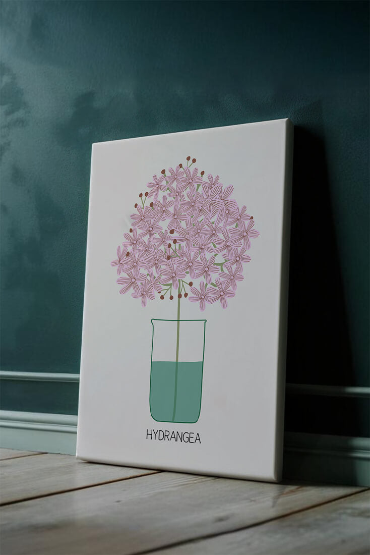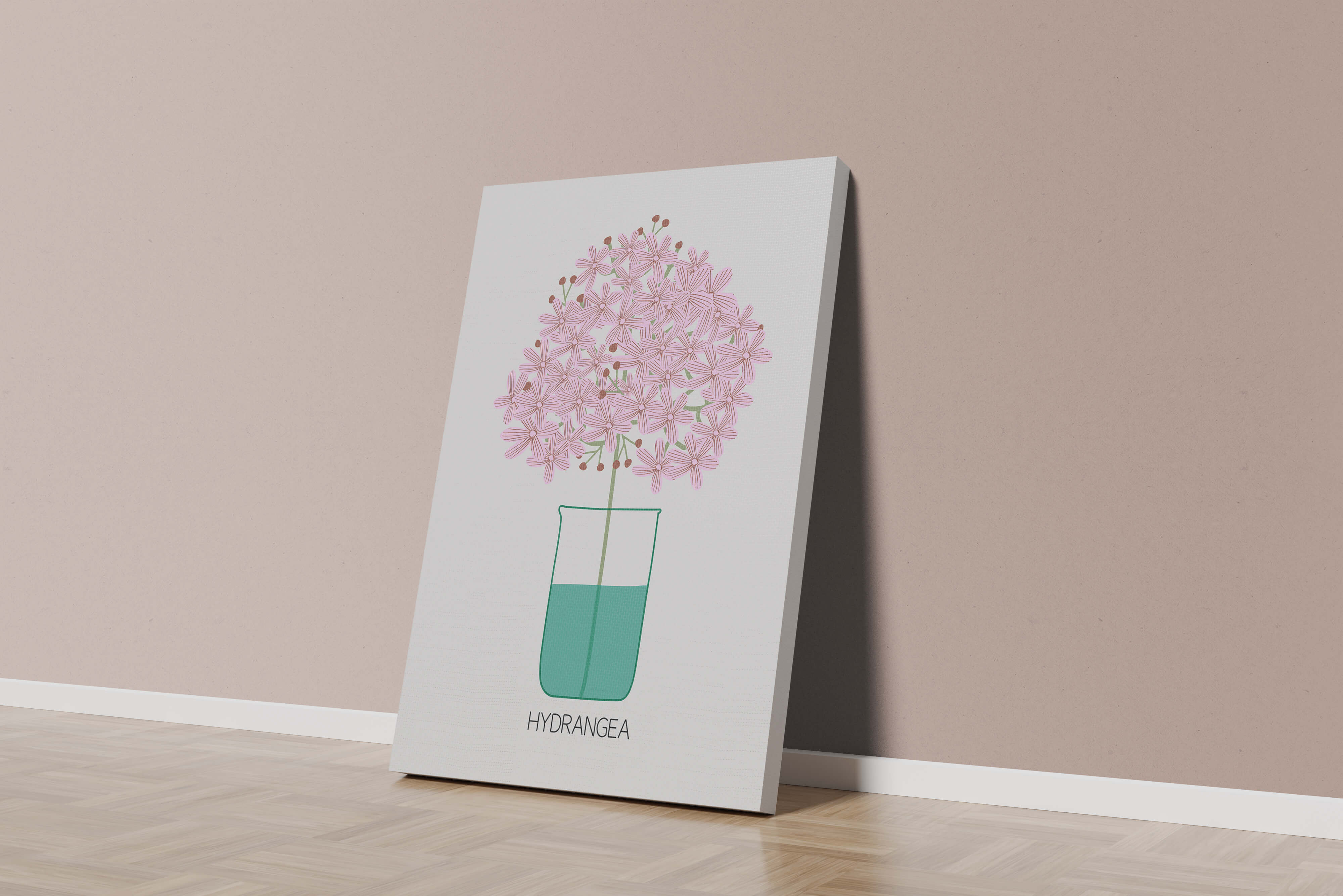 Цветы гортензии изображены с детальной проработкой линий, подчеркивающих их нежные лепестки и сложную структуру. Для соцветий используются оттенки розового, придающие им мягкий и привлекательный вид. Цветы расположены на нейтральном фоне, что позволяет их естественной красоте выделяться. Ваза выполнена в минималистичном стиле, с намёком на зелень, которая дополняет стебли цветов. Это изображение передает вечное очарование гортензий, делая его идеальным элементом для декора дома. Независимо от того, находится ли оно в гостиной или офисе, элегантность этого произведения добавляет штрих природного спокойствия в любое пространство.| Тип |
