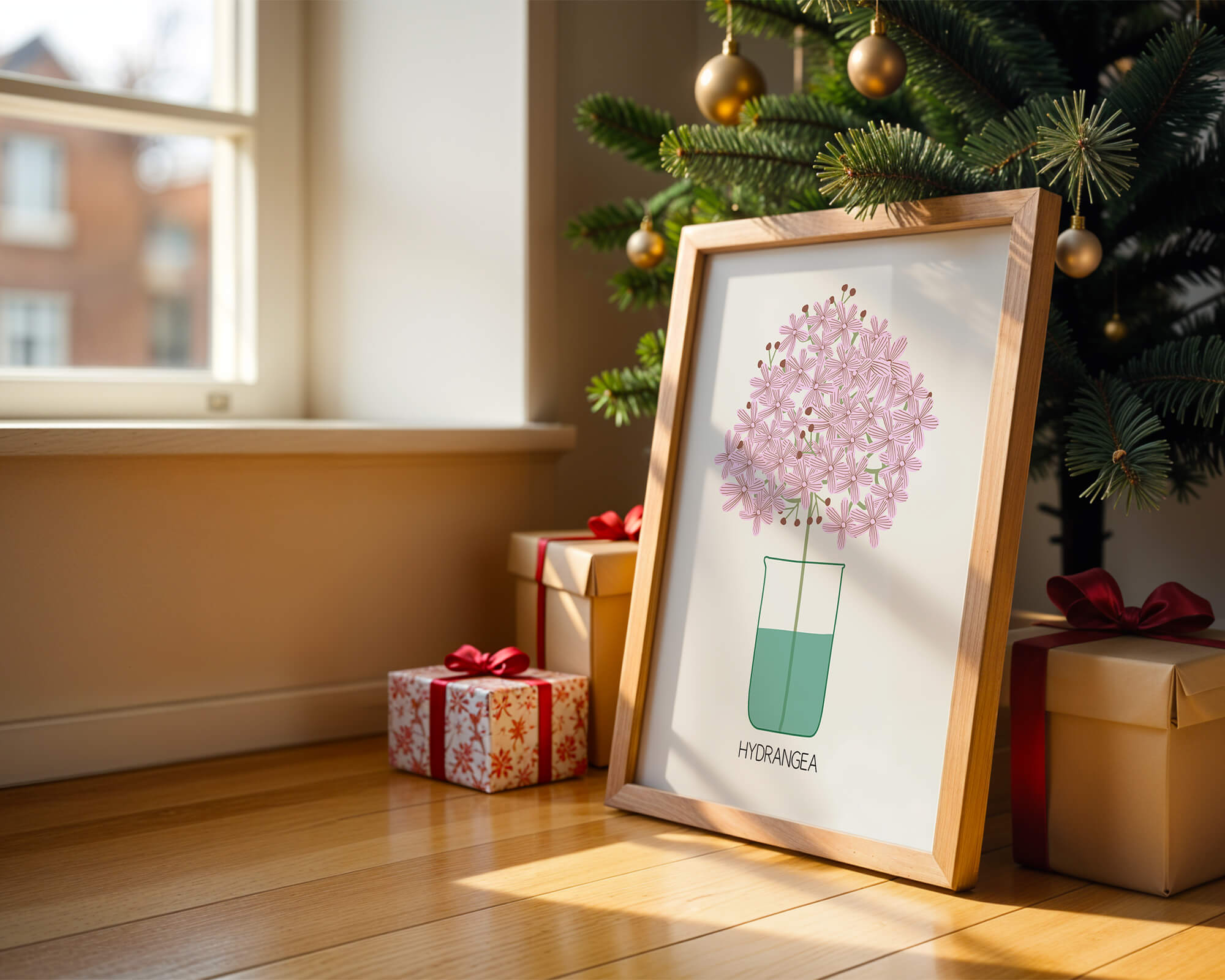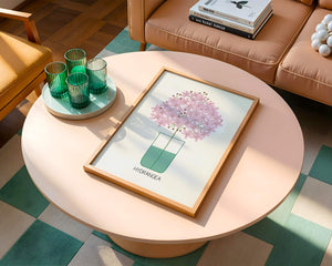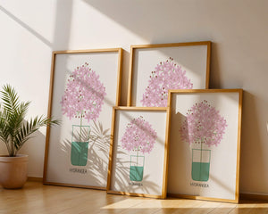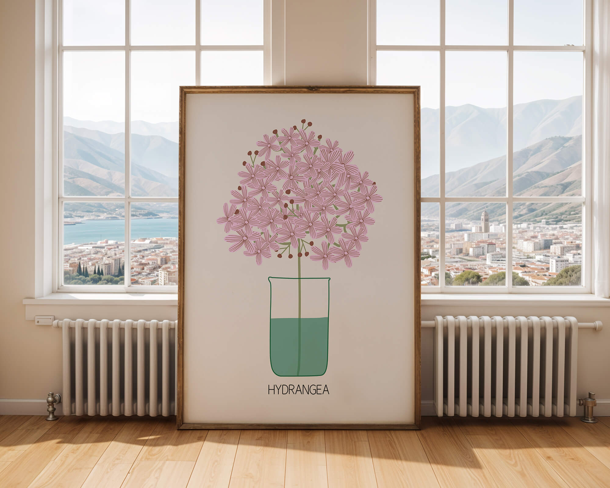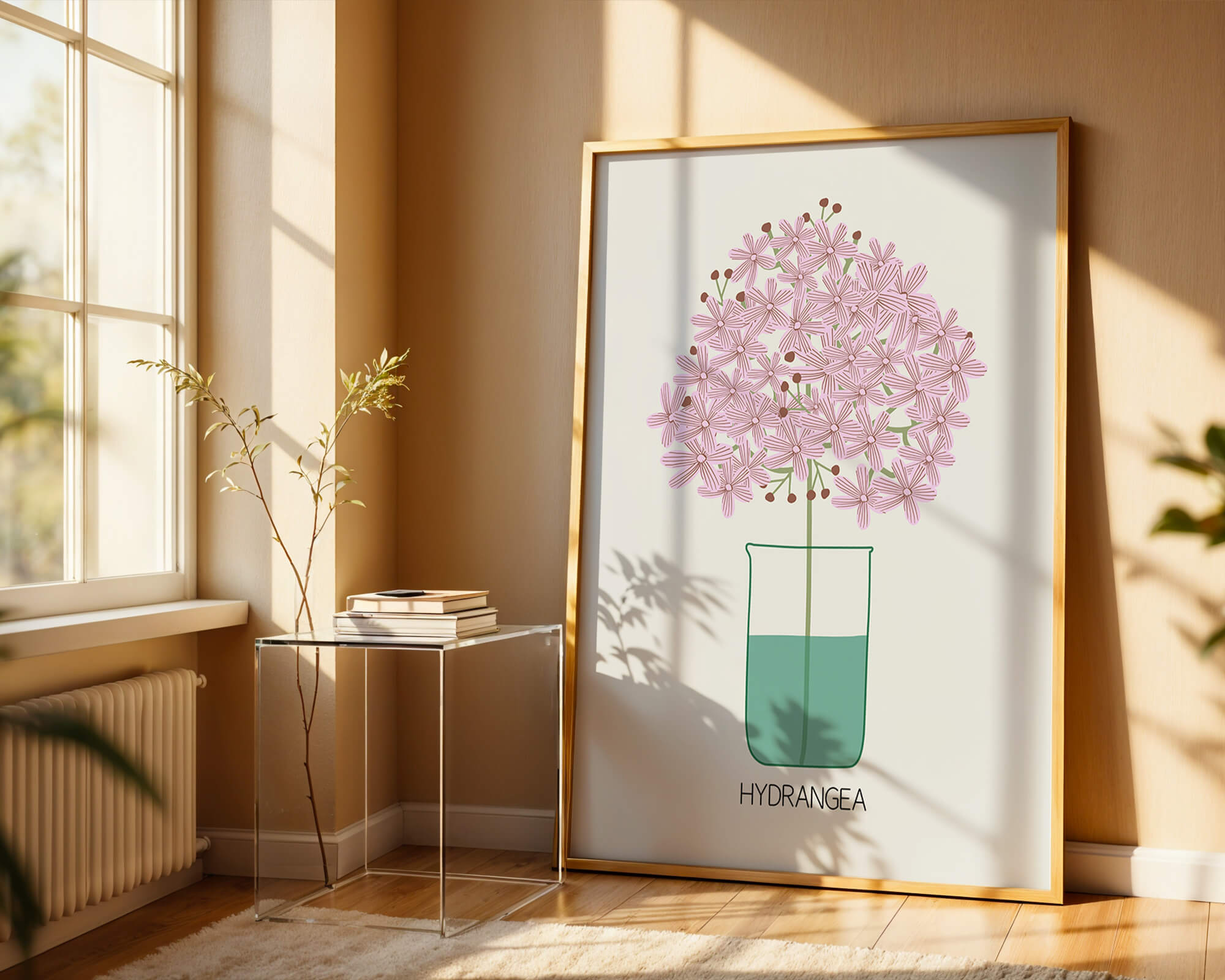 Цветы гортензии изображены с детальной проработкой линий, подчеркивающих их нежные лепестки и сложную структуру. Для соцветий используются оттенки розового, придающие им мягкий и привлекательный вид. Цветы расположены на нейтральном фоне, что позволяет их естественной красоте выделяться. Ваза выполнена в минималистичном стиле, с намёком на зелень, которая дополняет стебли цветов. Это изображение передает вечное очарование гортензий, делая его идеальным элементом для декора дома. Независимо от того, находится ли оно в гостиной или офисе, элегантность этого произведения добавляет штрих природного спокойствия в любое пространство.| Тип |